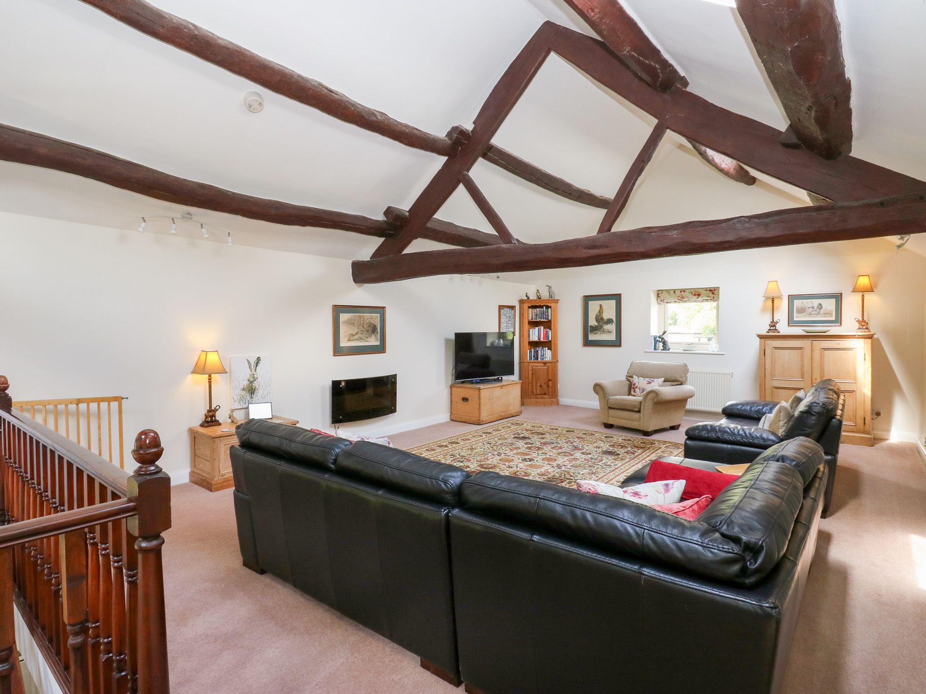 The pool table is a great added bonus, this is at the centre of the Barn and has the floor to ceiling window. With the first floor being open plan you can look down over the pool table from the balcony and also watch the horses who are sometimes directly outside the window. There is also a games cupboard.