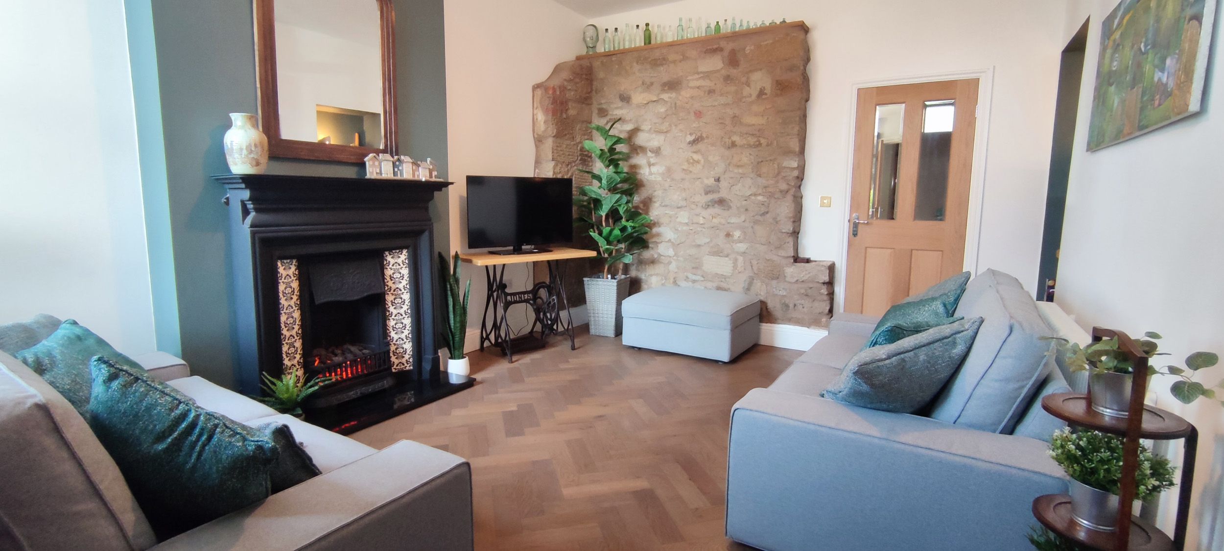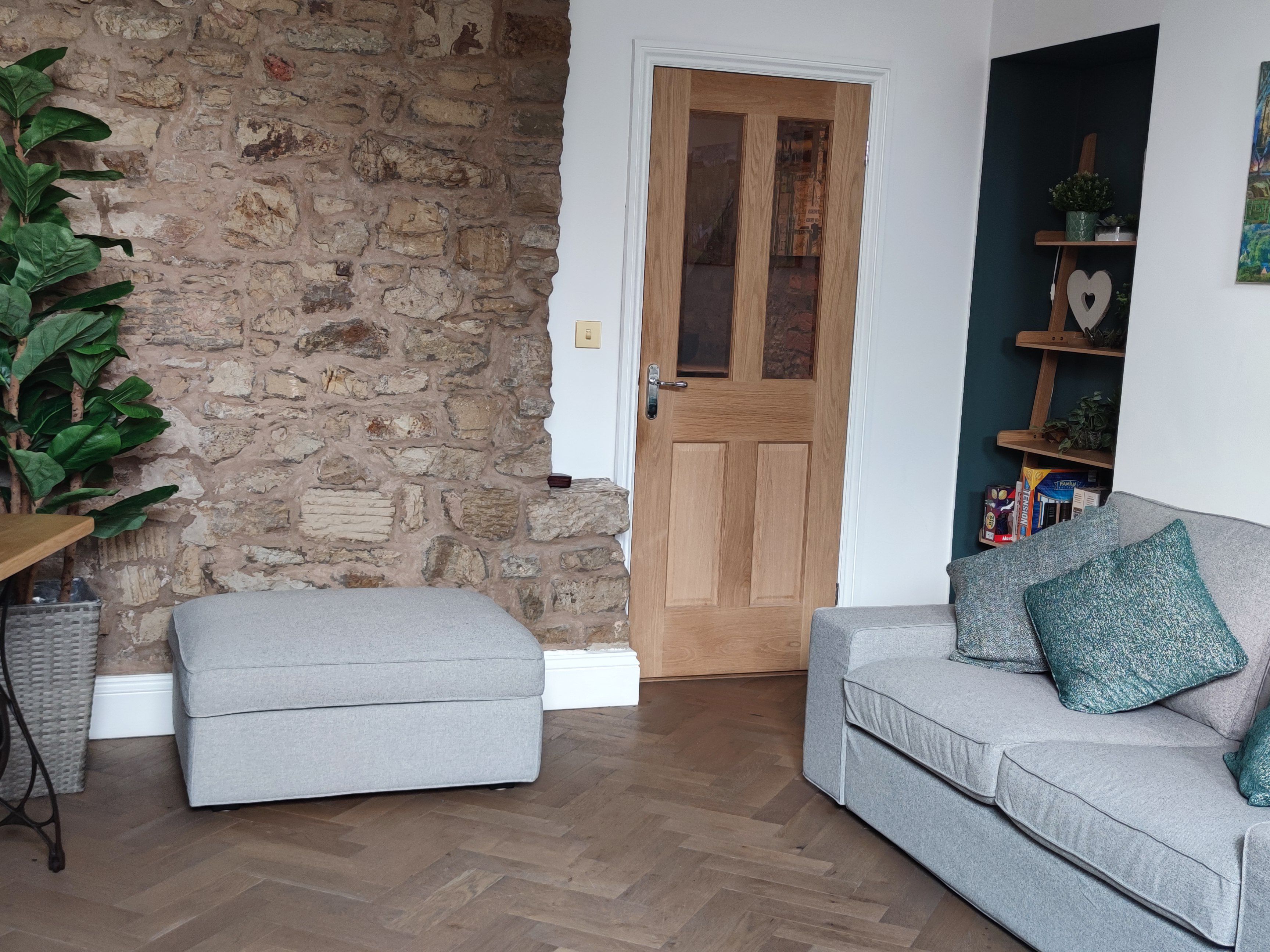 Two bedrooms: 1 x super-king-size (zip/link, can be twin on request) with Smart TV, 1 x king-size with Smart TV. Bathroom with bath, rainfall shower over, basin, heated towel rail, WC. Kitchen/diner. Sitting room with electric fire
