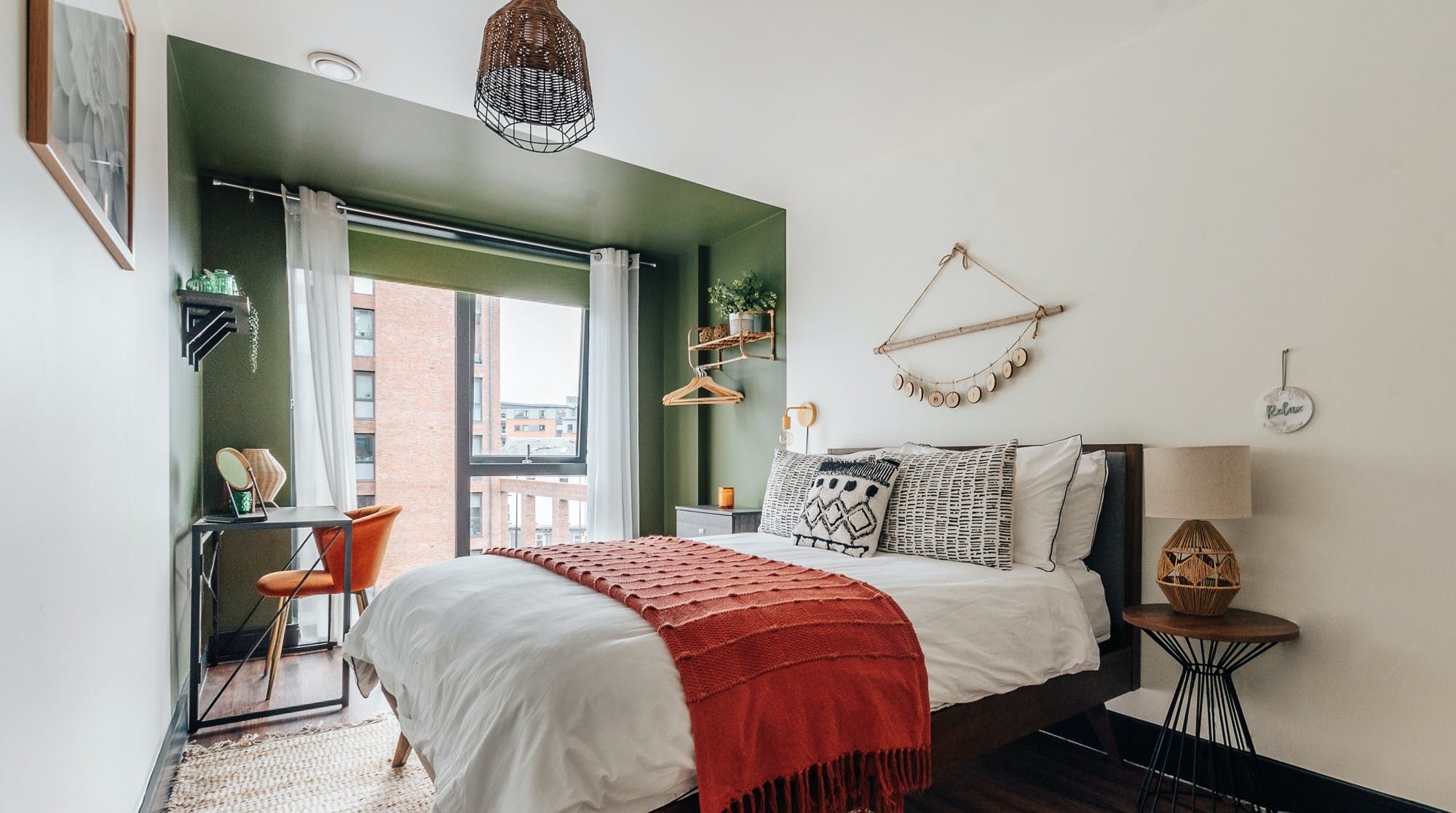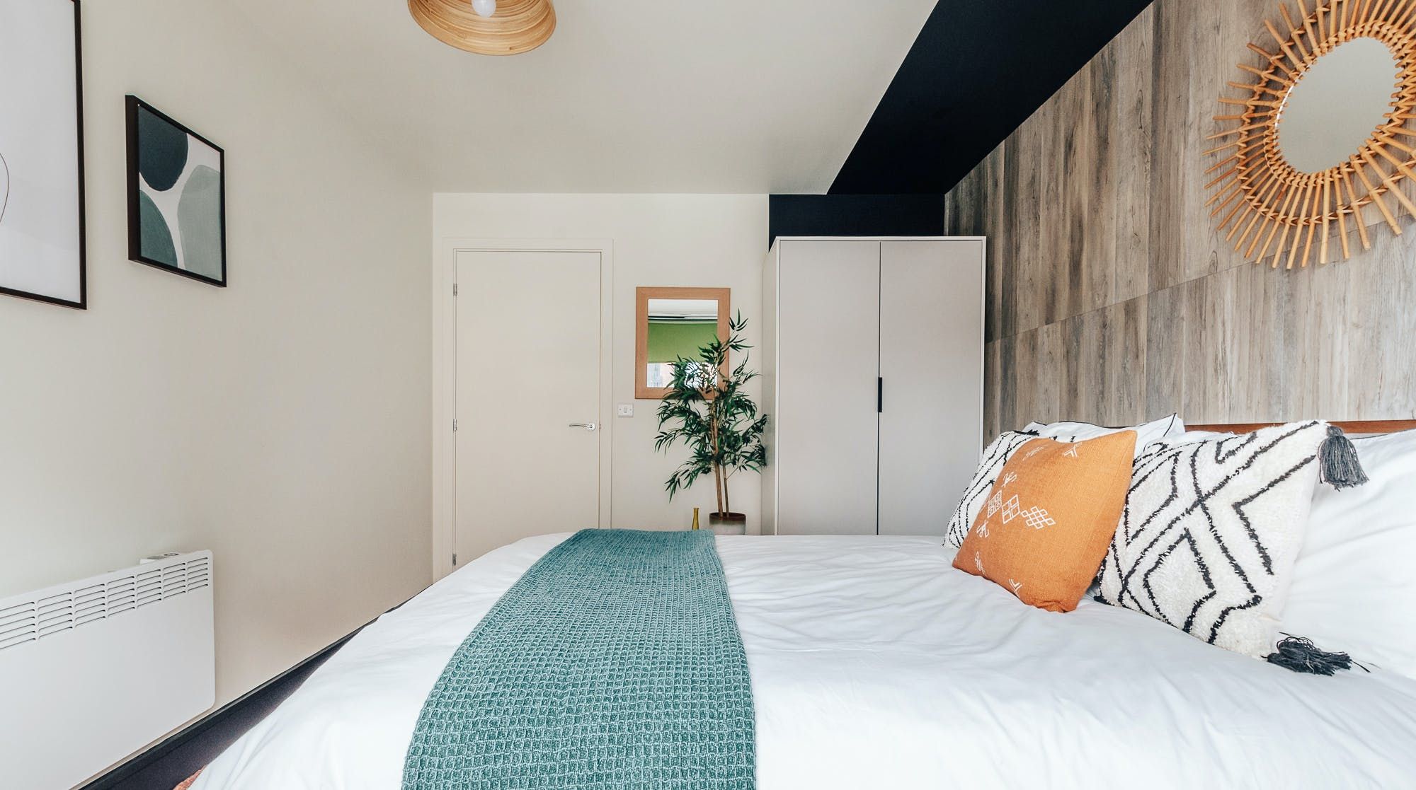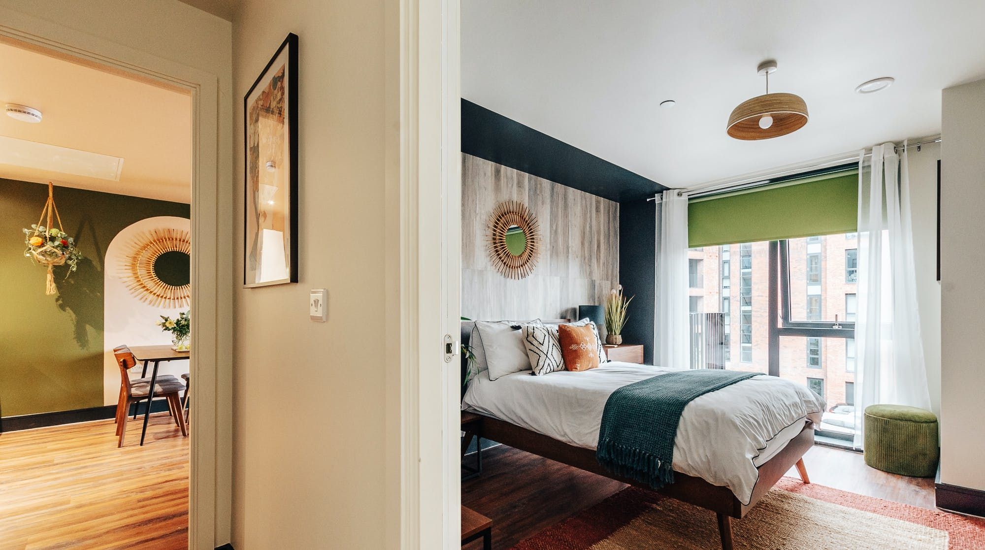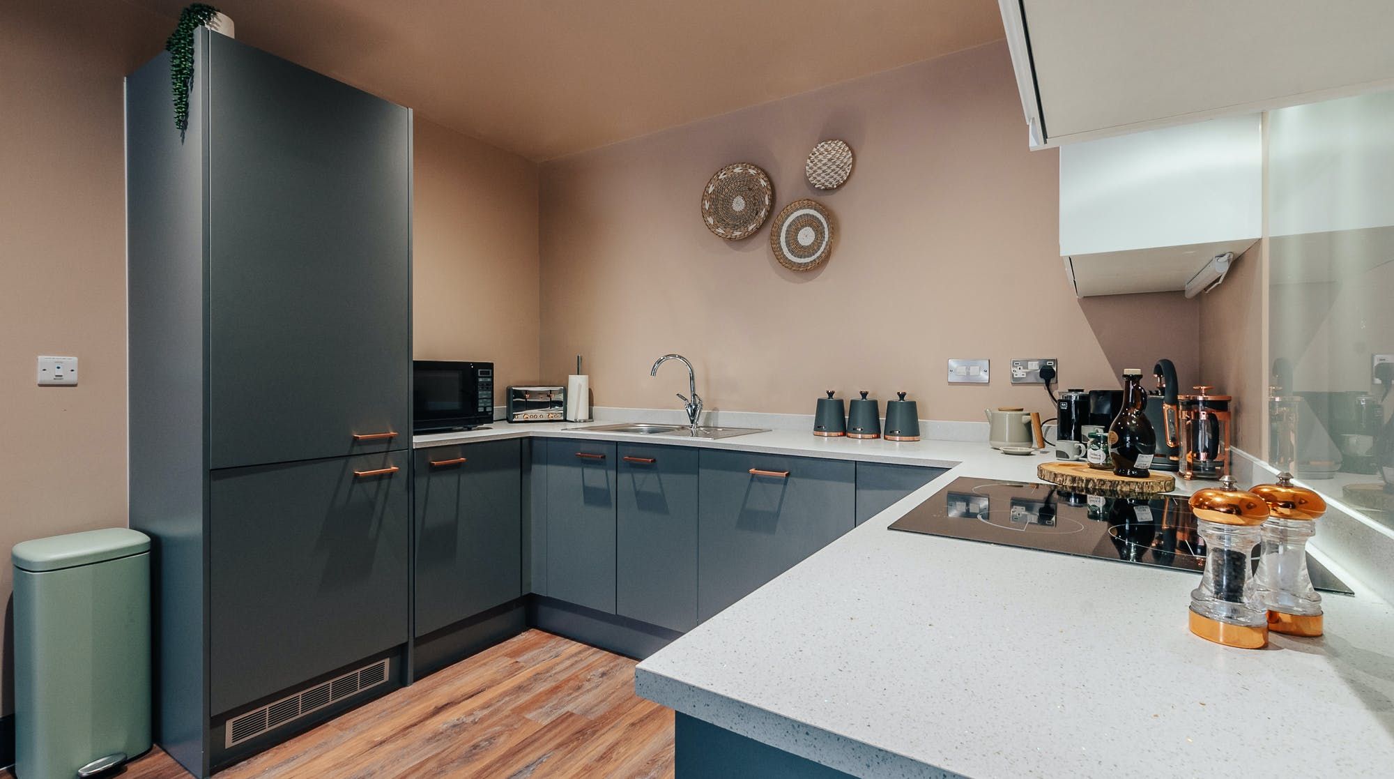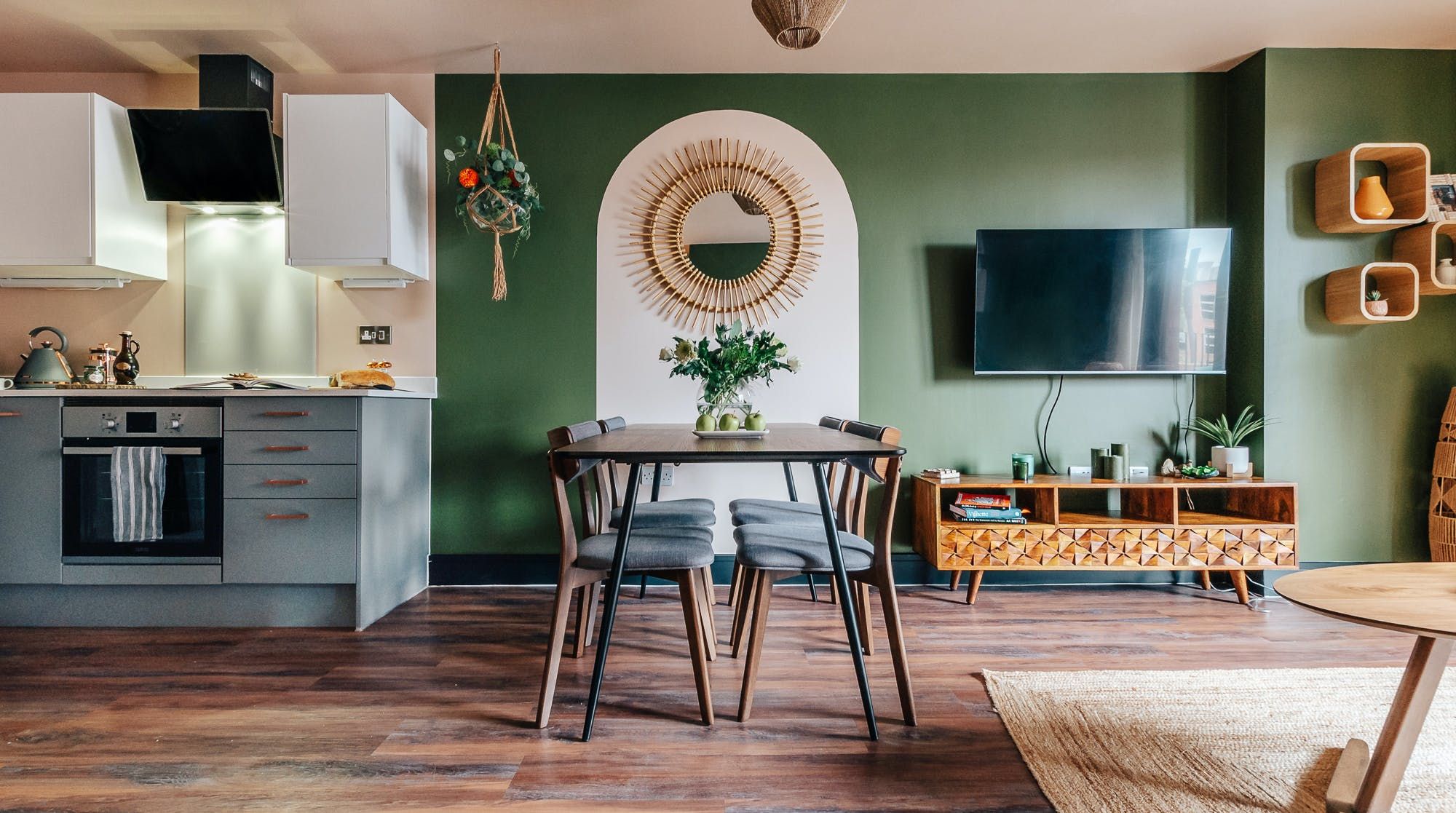 This quirky flat in Sheffield has urban cool written all over it. Lush greens, bold oranges, leafy plants and bamboo accents give the place a natural, bohemian flair. We think it's as cosy as it is stylish, making it an excellent base to come home to after a busy day. The private balcony is the icing on the cake – it's the perfect spot to sip morning coffees and evening cocktails as the sun goes down. Everything you need for a relaxed stay is taken care of – there are two stylish bathrooms so nobody needs to wait in line, Netflix on the smart TV if you want to chill at home and a desk if you need to do a bit of work. Cooking is anything but a chore in the sleek kitchen, which has plenty of dinnerware for when you're in the mood to rustle up a meal. Java junkies will also be pleased to see both a Nespresso machine and a cafetiere. Best of all, the location is pretty much perfect. Set in vibrant Kelham Island, there's a wealth of independent eateries, bars, music venues and pubs within walking distance. Plus, the city centre is just a twenty-minute stroll away – trust us, you'll never be short on things to do here.