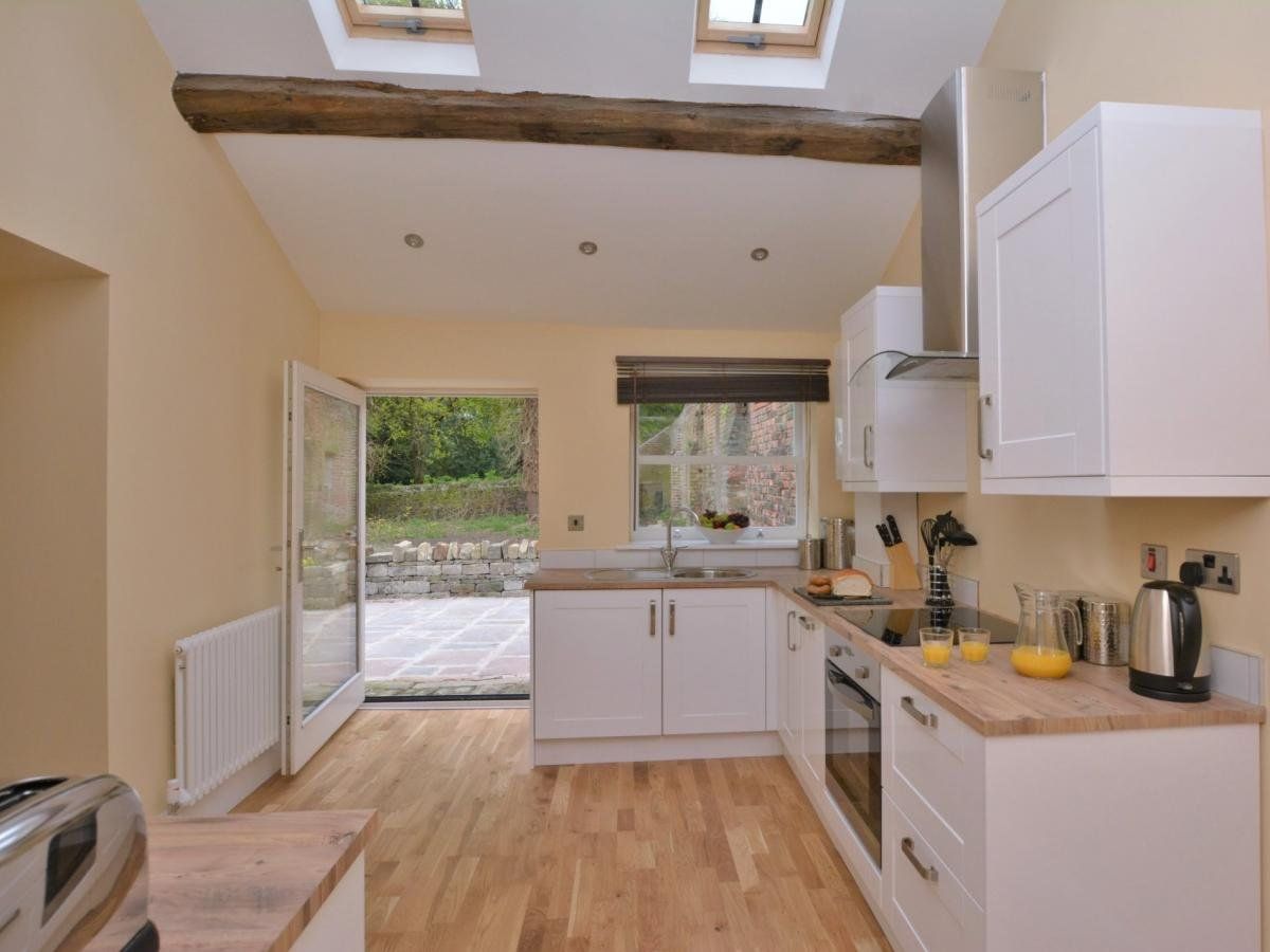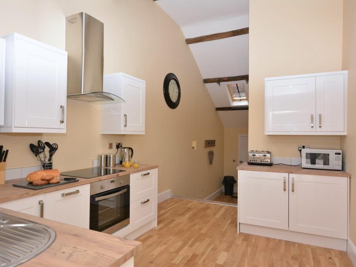 Boasting a soothing neutral colour palette, the open-plan lounge/diner provides a haven of serenity to retire to, with beautiful, homely touches setting the scene for pure relaxation. A few steps up you’ll find the light and bright kitchen; the high, beamed ceiling creates a sense of space whilst the contemporary country cottage-style decor perfectly echoes the rich heritage of your breathtaking surroundings.