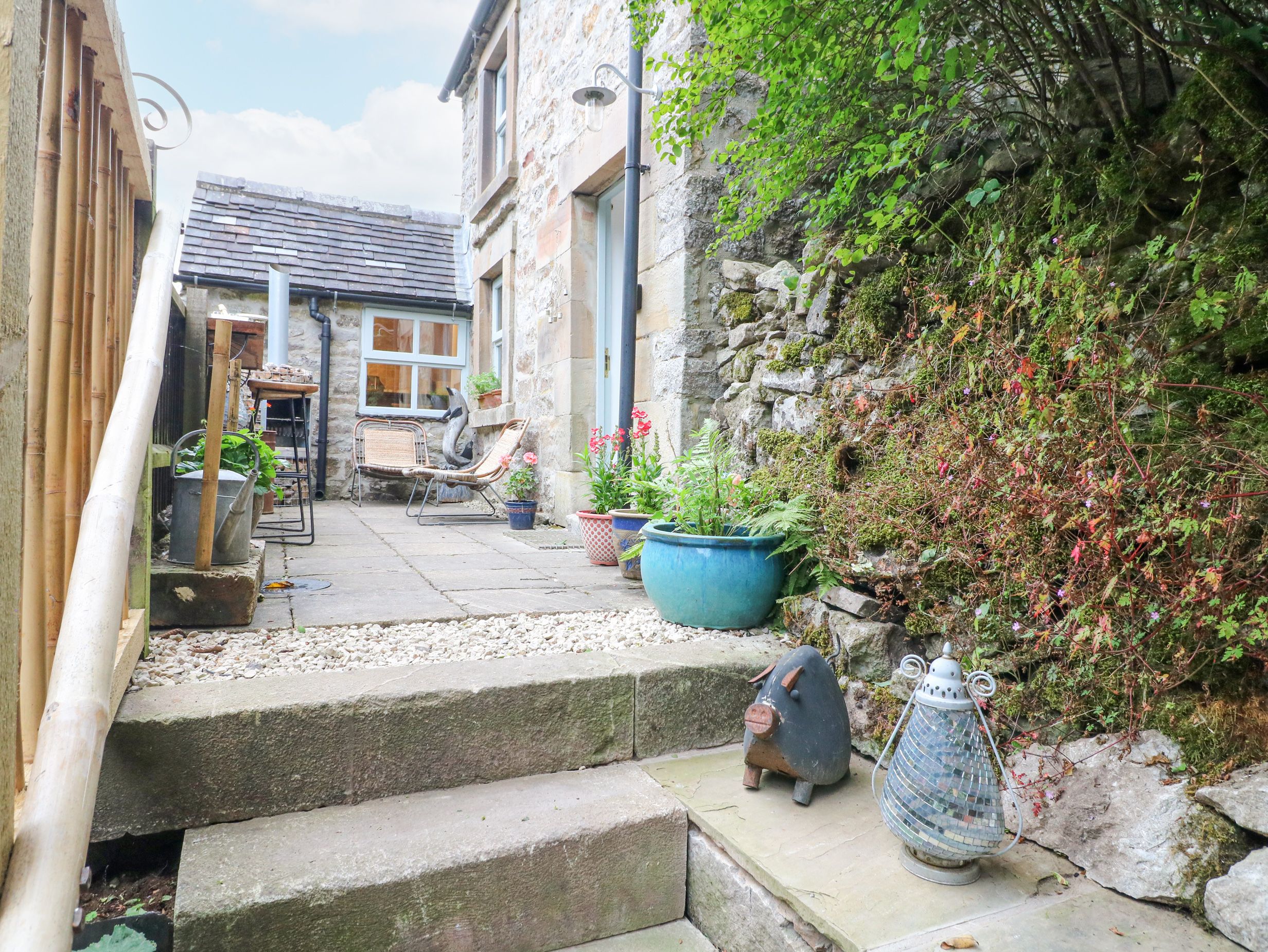 Holiday home Rock Cottage is a cottage consisting of a kitchen with electric oven and hob, microwave, fridge/freezer, dishwasher, kettle, and toaster, and a living/dining room with Smart TV in lounge and living room, and a woodburning stove. The bedroom is a double with en-suite shower room. Outside, there is a front enclosed patio with furniture and fire pit, rear enclosed raised decking with furniture, and parking for two cars on the driveway across the road and a garage for secure bike storage space a short walk from the property. There is also a fully functional, charming, antique cast iron outdoor bath. One well-behaved pet welcome. Sorry, no smoking. Shop 5.2 miles, pub 0.2 miles. WiFi, fuel, power, bed linen, and towels included in the rent. A stay at Rock Cottage promises to be one to remember. Note: Steps to the property, steep steps to the rear garden.