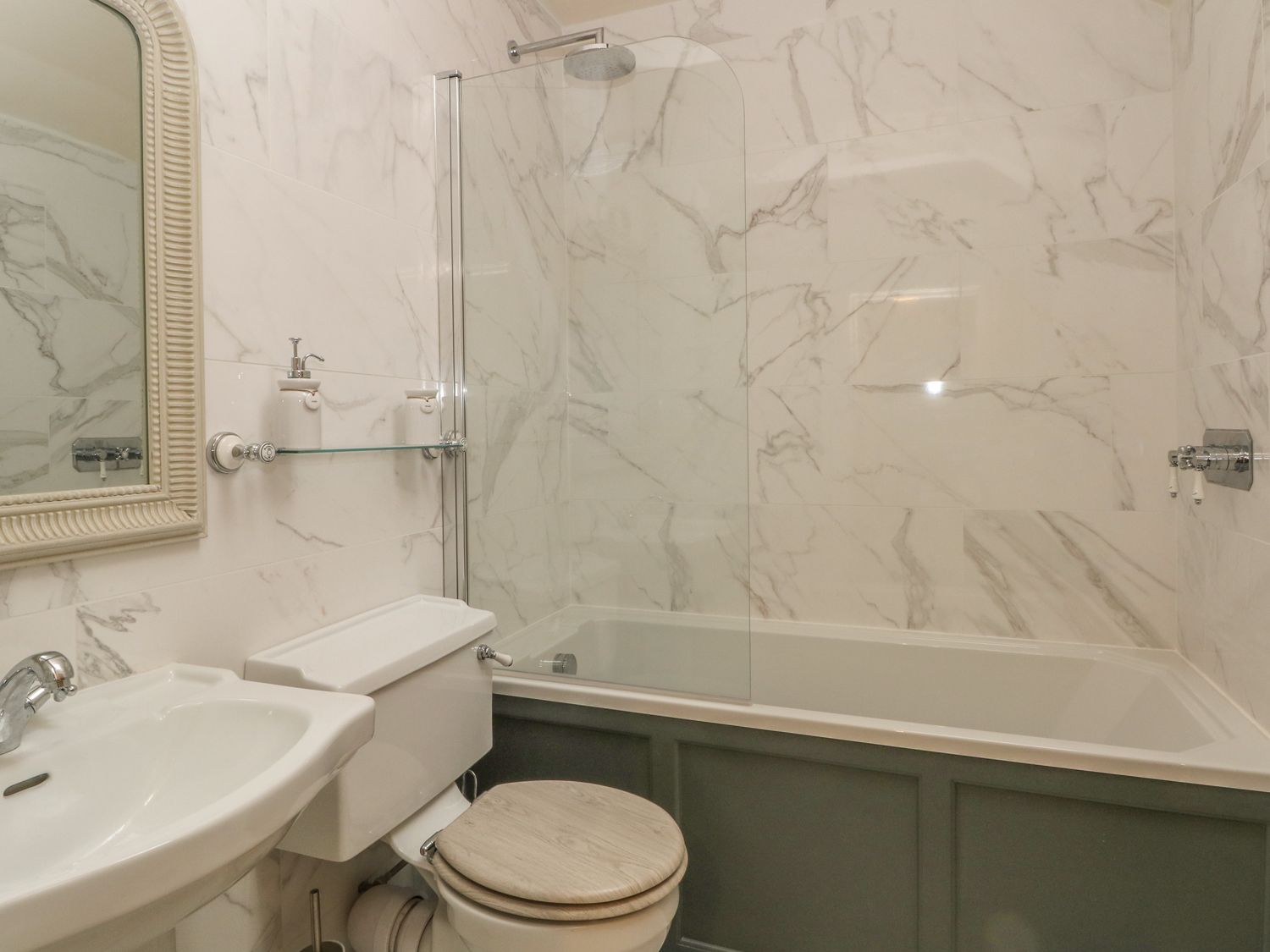 Two bedrooms: 1 x double, 1 x adult bunk beds. Pull out double sofa bed available in the lounge. Bathroom with bath and shower over, basin and WC. Ground floor cloakroom with basin and WC. Open-plan living room with a kitchen, dining area and sitting area