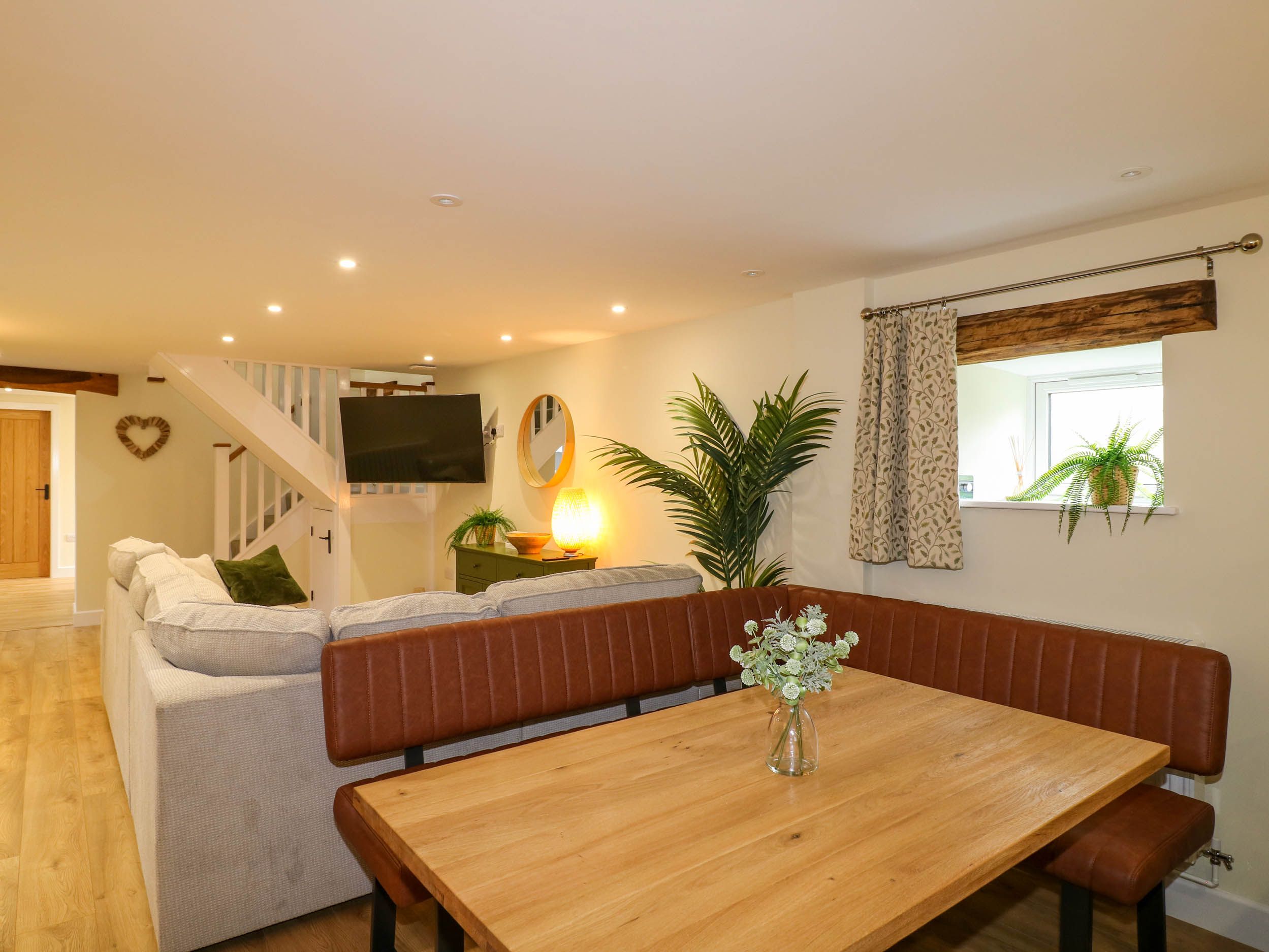 Holiday home The Long Barn consists of a kitchen with an electric oven and grill, induction hob, microwave, fridge, freezer, dishwasher, wine chiller, a dining area seating eight, and a sitting area with Smart TV. The bedrooms consist of a double with en-suite walk-in shower, another double, a ground-floor double, and a twin, all with TVs. There is also a shower room and ground-floor wet room with walk-in shower. WiFi, fuel, power, bed linen, and towels are included in the rent. Outside, there is an enclosed, rear courtyard with patio, artificial lawn, wooden gazebo, woodfire oven, and furniture, plus off-road parking for three cars. Sorry, no pets and no smoking. Shop 3.4 miles, pub 2 miles. Return year after year to The Long Barn. Note: This property is wheelchair-friendly. Note: Handrails in wet room. Note: Step up in one of the double bedrooms on first floor, please take care.