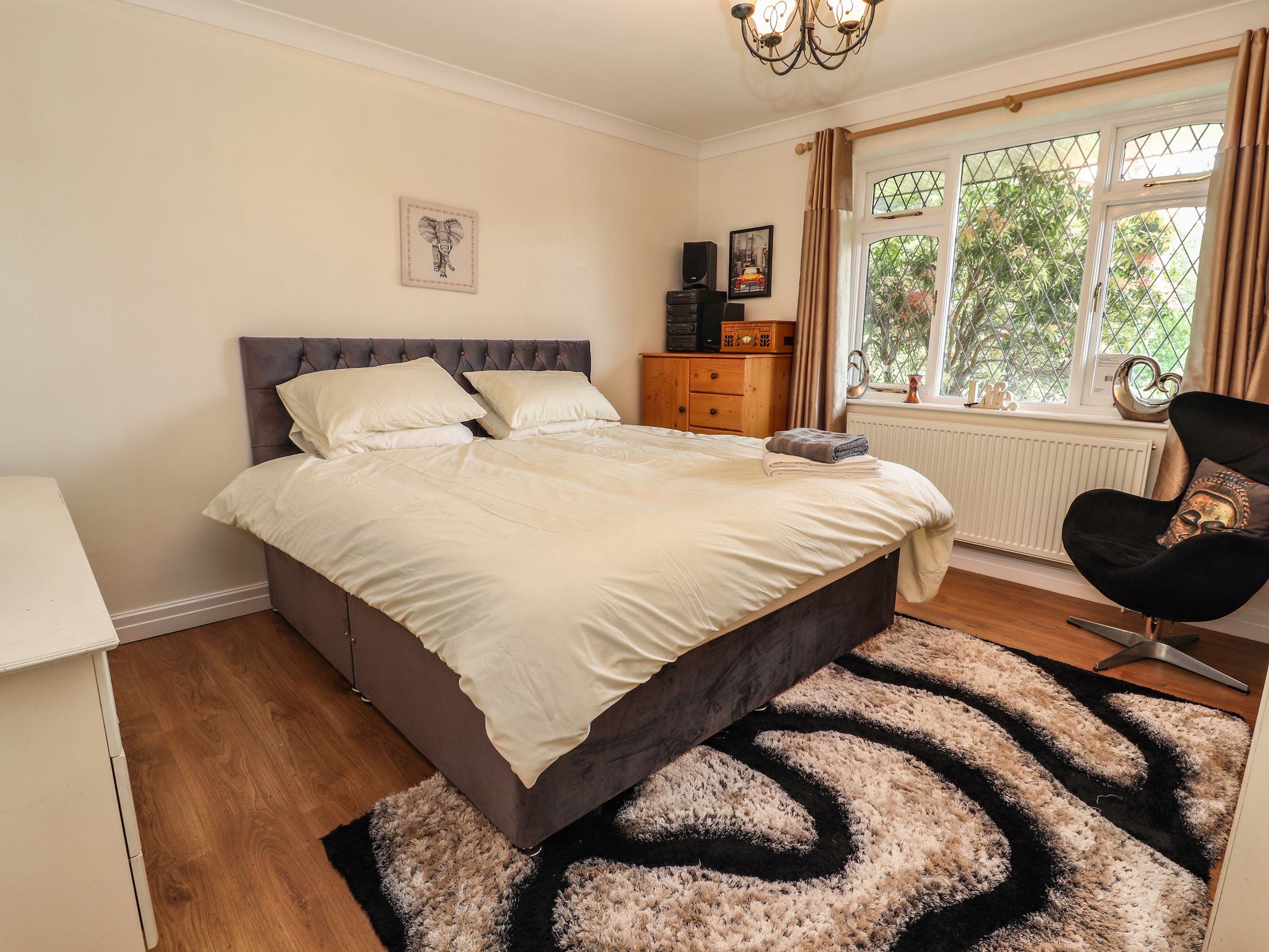 Holiday home Freshwinds is a remarkable detached property, resting in Ashley near Market Drayton. The property has eight bedrooms; Eight bedrooms: 1 x super-king-size double with TV, private balcony and en-suite bathroom with corner bath, Jacuzzi shower, basin, WC and Bluetooth speakers with 1 x single off from this room, 2 x king-size with TV and private balcony, 1 x king-size with TV, 1 x double with TV, 1 x ground-floor super king-size, 1 x ground-floor double, sleeping 15 guests. The property also comprises a ground-floor bathroom, a shower room, utility, kitchen/diner, sitting room with open fire, oil fired boiler games room, conservatory and garage with table tennis. Football table. 7 Foot pool table. Outside there is ample off-road parking on the driveway, a wrap around terrace, front lawn and extensive, multi-level rear garden with seating areas, hot tub, heated pool, pool house with American-style fridge/freezer, summerhouse with seating, chiminea, unfenced pond and trampoline. Freshwinds is a magnificent property for a large family or group gathering in the Shropshire countryside. This property does not accept stag/ hen parties or similar; property is for families only. Please note: Guests are not permitted to use their own devices to play amplified sound for entertainment purposes as requested by the council, and to please be mindful of surrounding neighbours. Property will be fully decorated at Christmas time including real tree.