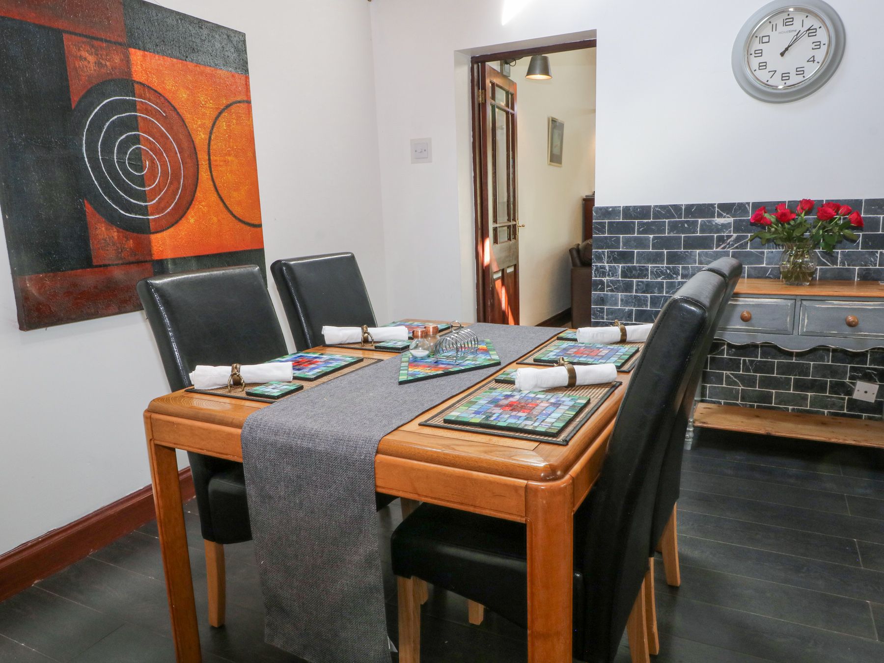 Gas central heating. Electric oven and induction hob, grill, microwave, fridge, freezer, dishwasher, washing machine, TV, Wifi and a selection of books, games and DVDs. Fuel and power inc. in rent. Bed linen and towels inc. in rent. Travel cot available. Off-road parking for two cars. Lawned garden and decking with furniture and barbecue. Sorry, no pets and no smoking. Shop 0.2 miles, pub 0.9 miles. Note: Guests are welcome to bring horses as livery is available during the months of May to August. No children under 14 allowed. Note: Garden maintenance may occur during your stay. Note: The owner does have two friendly dogs and a cat.
