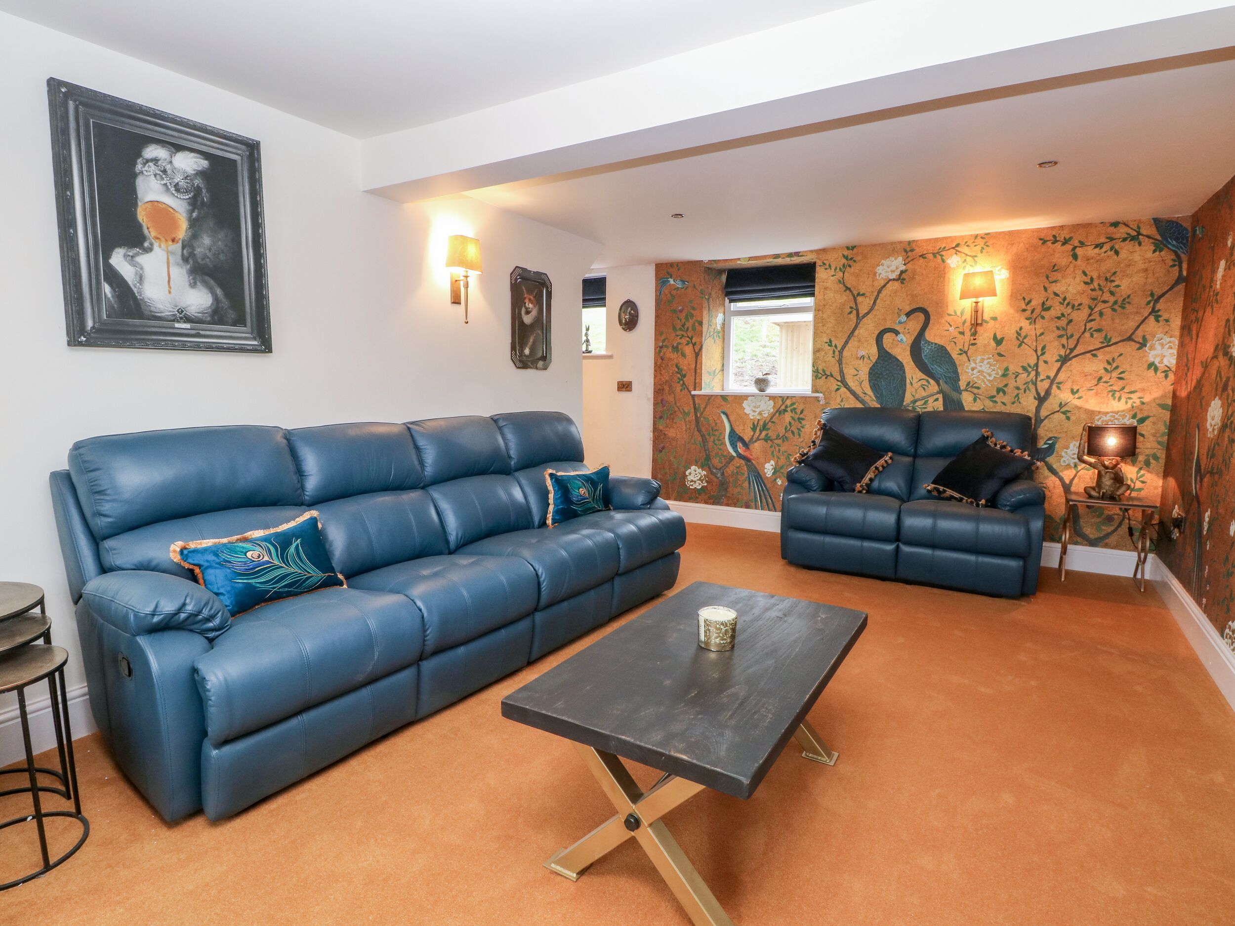 Over three floors. Four bedrooms with Smart TVs: 1 x second-floor king-size with en-suite bath, walk-in shower, basin, and WC, 1 x super-king-size (zip/link, can be made into twin on request) with en-suite bath, walk-in shower, basin, and WC, 1 x double with en-suite walk-in shower, basin, and WC, 1 x king-size with en-suite walk-in shower, basin, and WC. Cloakroom with basin and WC. Kitchen/diner with Smart TV. Utility. Sitting room with woodburning stove. 2 x games room. External sauna