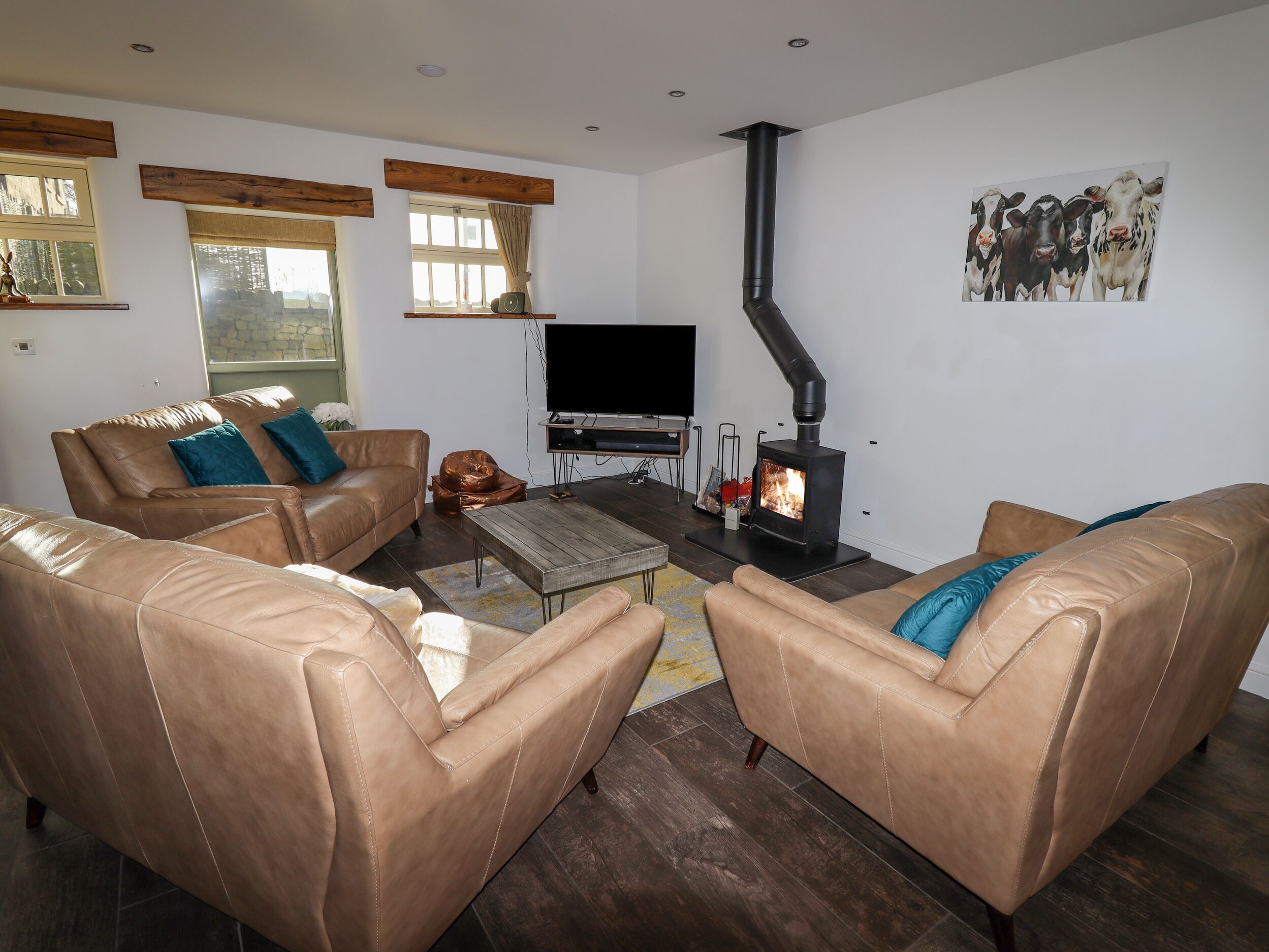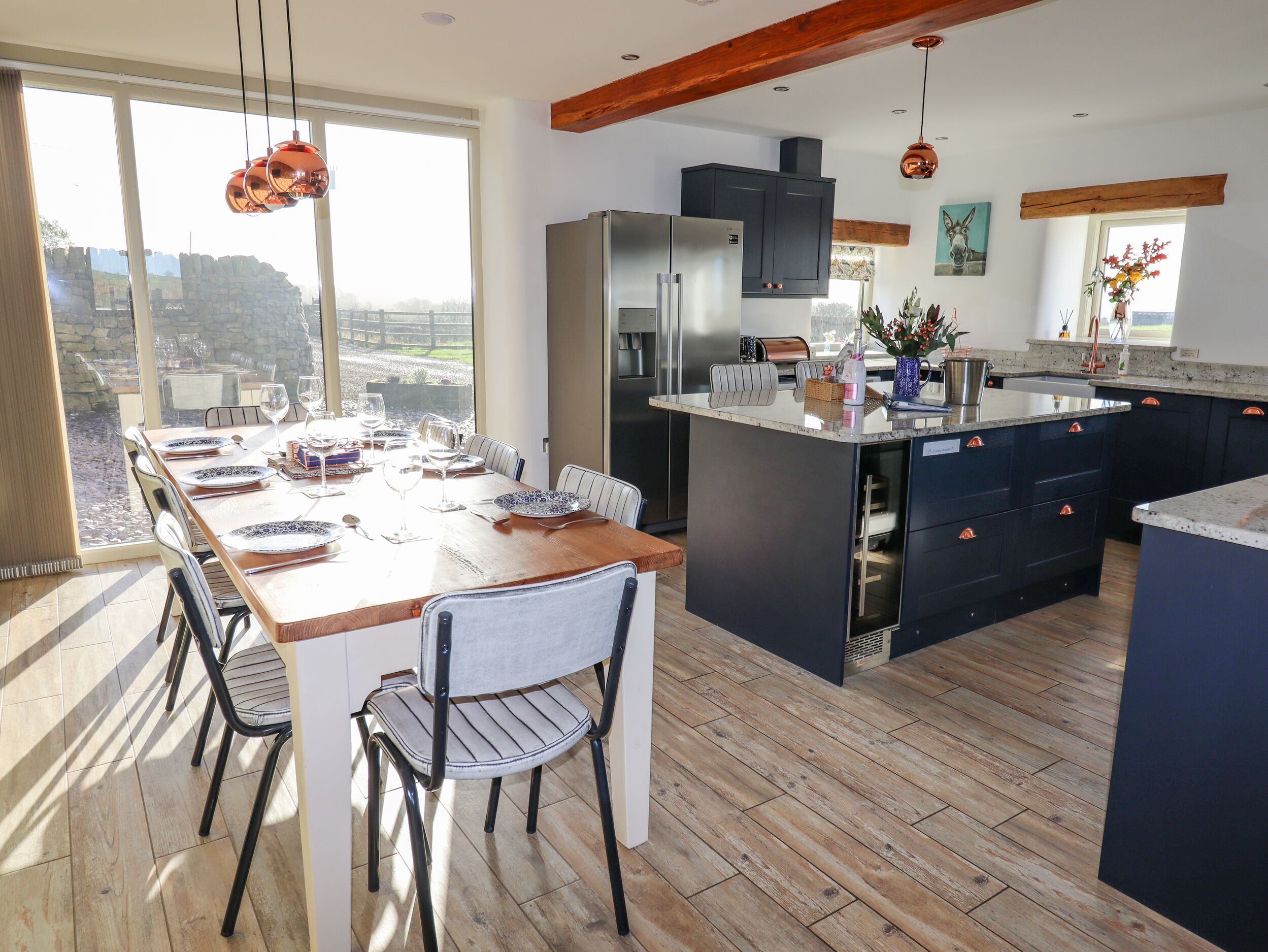 Holiday home Pastures Barn consists of kitchen/diner with a Rangemaster induction cooker, electric oven and hob, microwave, toaster, kettle, iron, ironing board, wine cooler, dishwasher, washing machine, a sitting room with Smart TV and woodburning stove, and a shared games room with bar, guitar, football table, pool table, air hockey, table tennis, darts, arcade games, book exchange, DVD library and tuned piano. The bedrooms consist of a king-size with en-suite walk-in shower, a king-size, and a twin (zip/link), along with a bathroom and cloakroom. Outside, there is an enclosed lawn garden and patio area with furniture, Green Egg style barbecue, hot tub and sauna, plus off-road parking available. Two well-behaved pets welcome. Sorry, no smoking. WiFi, fuel, power, starter pack for woodburning stove, bed linen and towels are all included in the price. Shop 2.4 miles and pub 1.8 miles. Enjoy a stylish break with a stay at Pastures Barn. Note: This property has a Good Housekeeping Bond of 125 GBP.