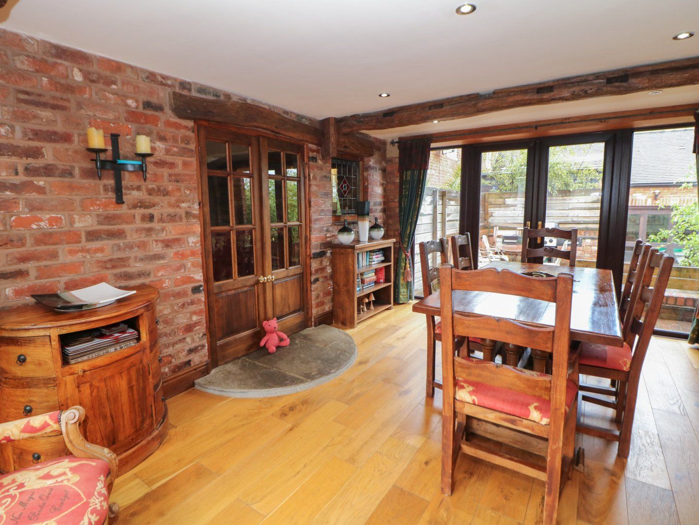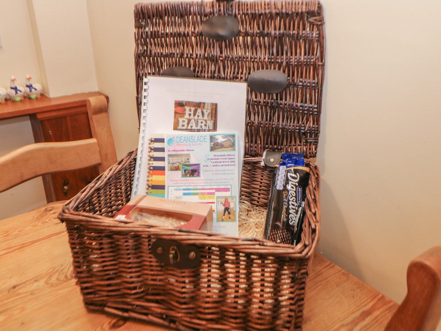 Holiday home This cottage is set over three floors and has four bedrooms, a double with en-suite bathroom, a double, a mezzanine double and a single, along with a bathroom, a cloakroom, a kitchen/diner, a dining room, a sitting room with a woodburning stove, and an external games room. Appliances include an electric oven, gas hob, microwave, fridge/freezer, washing machine, tumble dryer and dishwasher, and for entertainment there is a Smart TV, WiFi, a selection of games, pool table and table tennis table. Outside, there is driveway parking for four cars and a patio, decking, barbecue and furniture. Fuel, power, a starter pack for woodburning stove, bed linen and towels are all included in the rent. Sorry, this is a smoke-free property. A cot, highchair and stairgate are available. One well-behaved dog only, other pets will not be accepted without checking with the owner first. There are steps up into the master bedroom. The external studio can be rented for parties, yoga and other activities via Deanslade Events. In the courtyard there are unlit steps up to the decking area.