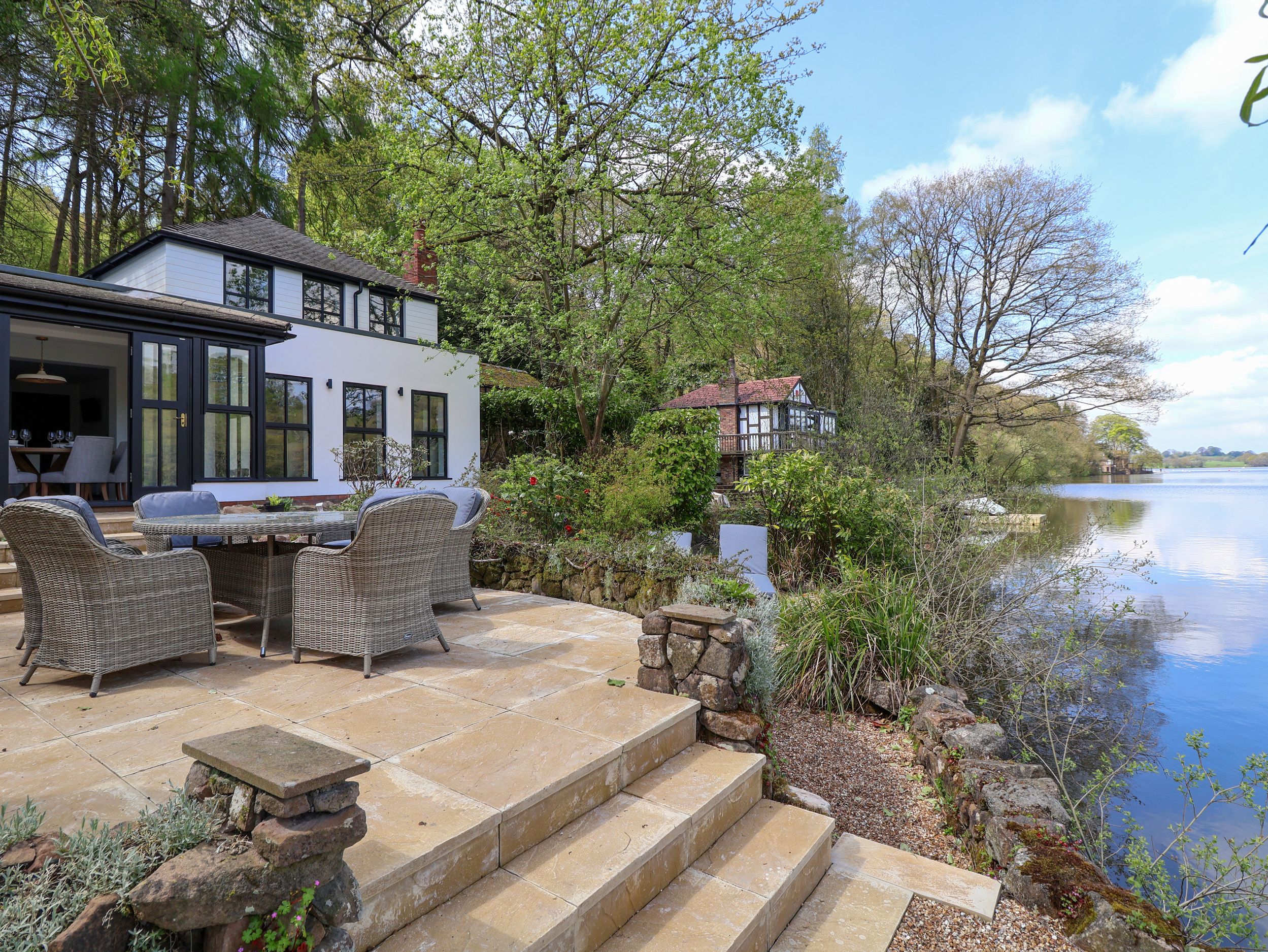 Amenities Gas central heating. Electric oven and hob, microwave, fridge/freezer, washing machine, dishwasher, kettle, toaster. 4 x TV, WiFi. Fuel and power inc. in rent. Bed linen and towels inc. in rent. 2 x highchair and travel cot available. Off-road parking for 3 cars. Non-enclosed, multi-level patio with furniture, hot tub, outdoor shower, barbecue, and shed with storage. Two well-behaved pets welcome ( more considered upon request), £25 charge per pet. Sorry, no smoking. Shop 3.1 miles, pub 3.6 miles, lake 0.1 miles. Note: Two steps up into ground-floor double. Note: Non-enclosed access to lake, please take care. Note: There's a sloping pathway with steps, as well as additional steps leading down to the property.