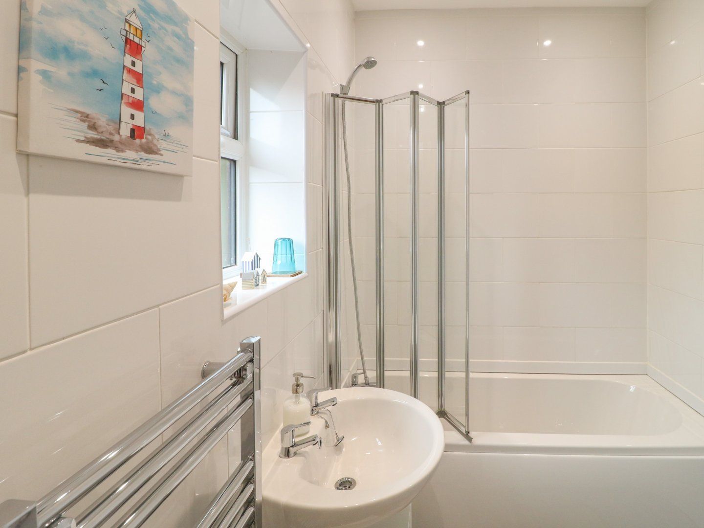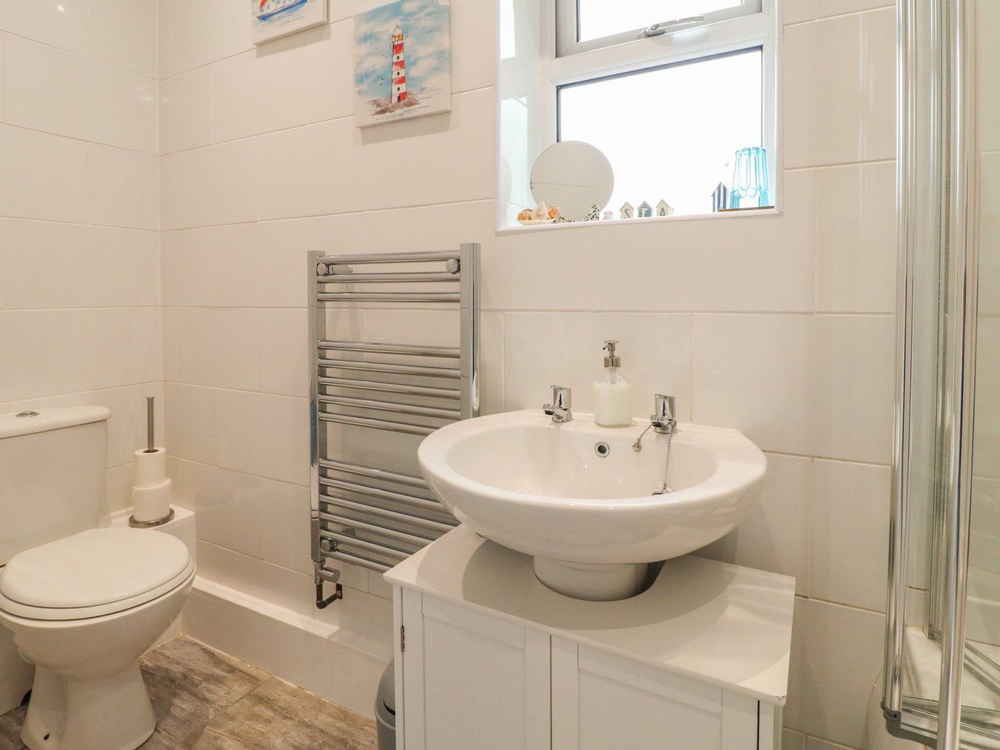 Accomodation Details All-ground-floor. One double bedroom with Freeview TV. Bathroom with shower over bath, basin, heated towel rail and WC. Open-plan living area with kitchen, dining area and seating area
