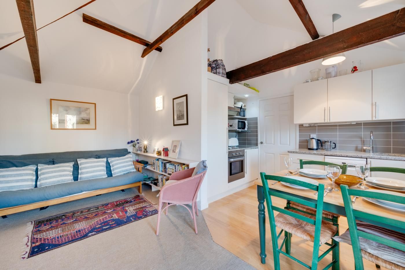 This charming addition offers glimpses across marshland where you can make the most of the Suffolk sunrise or simply relax in the evening after a busy day sightseeing and watch the world go by. Climb the stairs to the first floor to find the open-plan layout of this self-catering apartment that ensures ease and space with a relaxed feel.