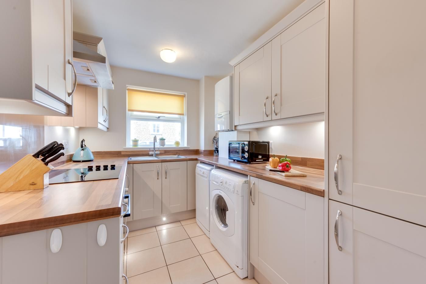 No better remedy for soothing weary walking muscles is the light and bright open-plan lounge/diner, complete with a peaceful neutral colour palette, which beckons you to take the weight off on the comfy sofa, catch your favourite programme on the TV and dine romantically long into the evening seated around the rustic dining table. Grab your wonderful local produce and head into the contemporary shaker-style kitchen to rustle up a delicious feast to refuel after the day’s big adventure.