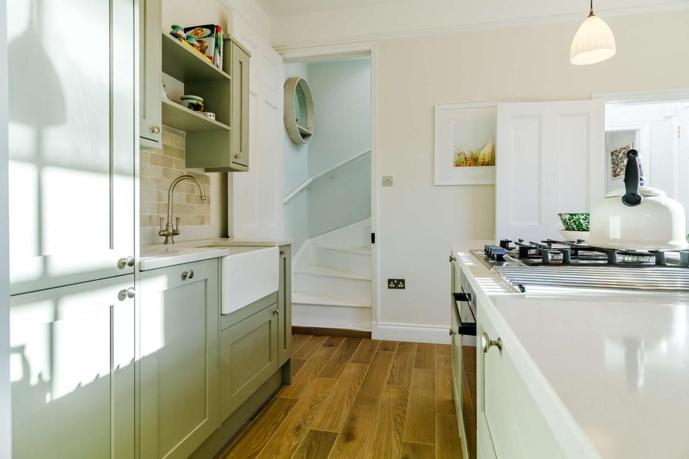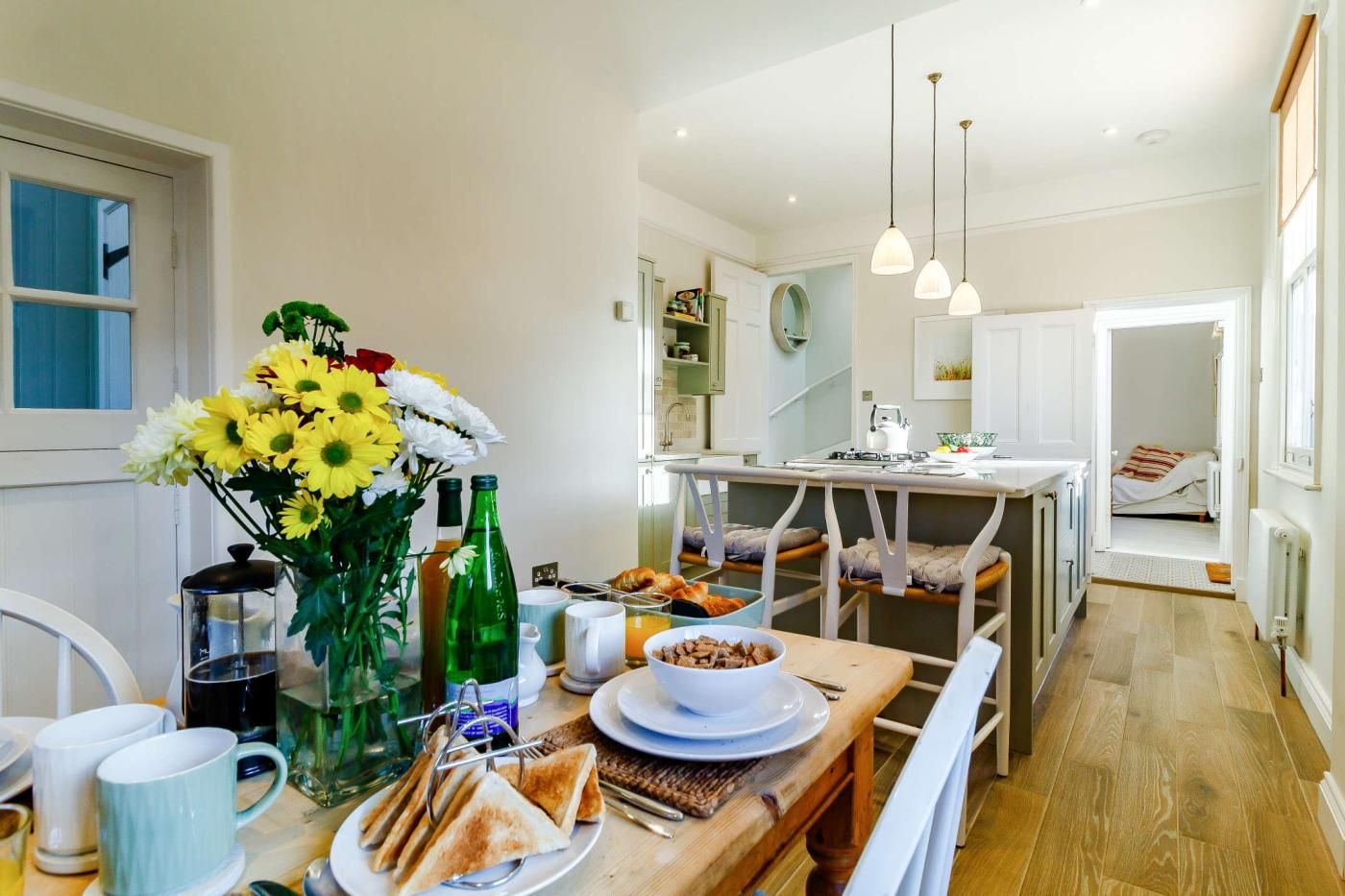 Settle into this cosy suffolk pink Victorian cottage with calming neutral-toned interiors and a laid-back atmosphere in the homely lounge and stylish kitchen with an island.