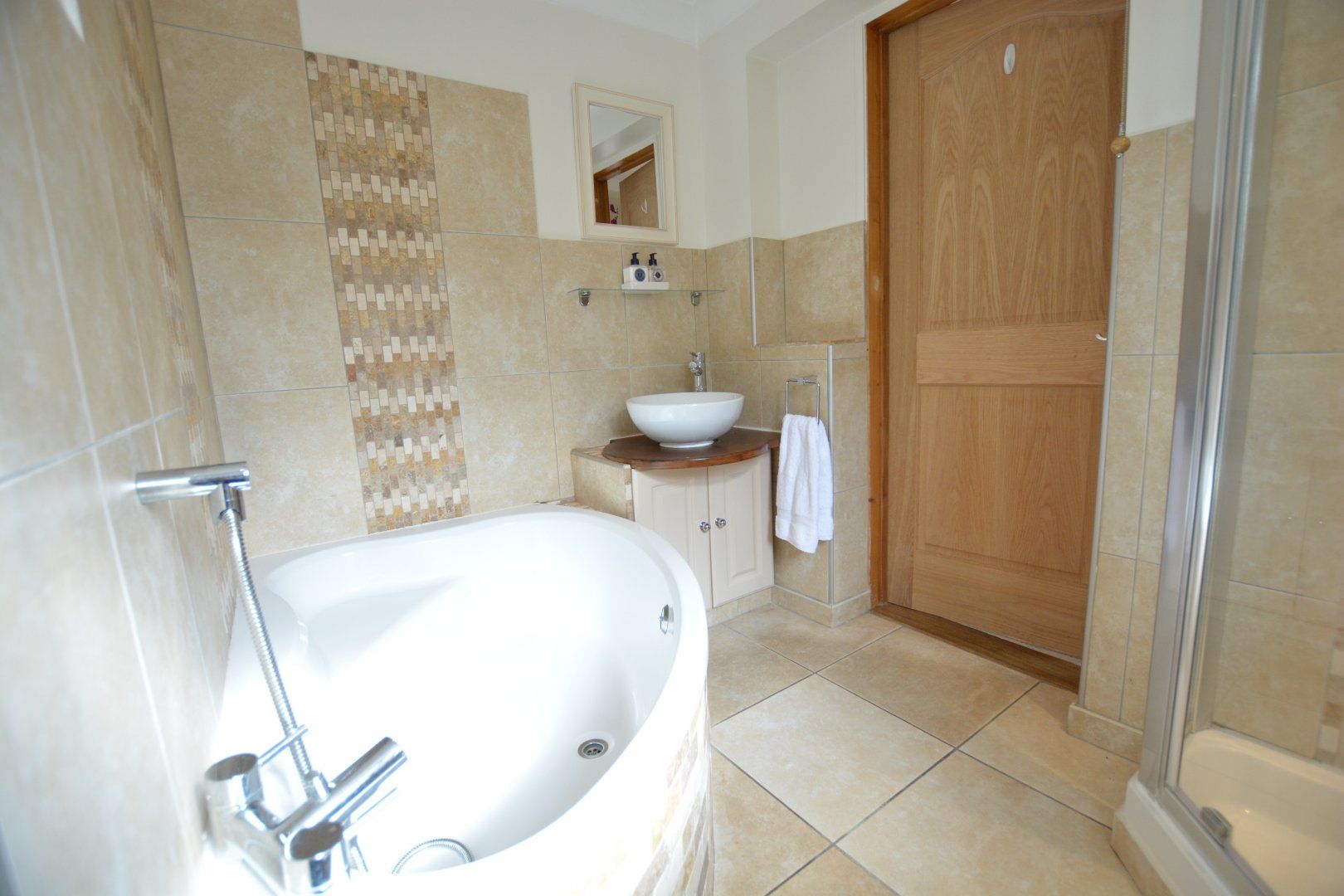 Accomodation Details Single-storey. Four bedrooms: 1 x super-king-size with TV and en-suite with bath, shower over, basin, heated towel rail and WC, 1 x king-size, 2 x twins. Bathroom with bath, shower over, basin, heated towel rail and WC. Kitchen. Utility. Open-plan living space with dining area and sitting area. Sun room