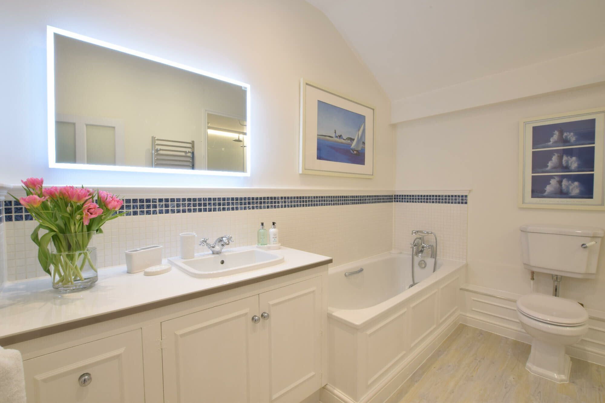 A duplex apartment set over the first and second floor resting above the wonderful Regatta restaurant in Aldeburgh, Regatta Lookout is a fantastic base for your Suffolk adventure. With high ceilings and an airy atmosphere, the deluxe sitting room is the perfect spot for a coffee as you plan the day ahead of you, featuring an electric fire stove, pale lime walls and a selection of seating for you to recline in and there is also the option of a smaller snug with a welcoming woodburning stove to warm your feet in the cooler months. The kitchen/diner is magnificent, open plan and with seas of natural light, any budding chef will be drawn to the stylish and amply fitted kitchen area, and meals can be enjoyed on the dining table or outside in the fantastic courtyard, the perfect spot for breakfast in the sunshine. Regatta Lookout has four second-floor bedrooms sleeping a total of eight guests, including three super-king-size with ensuites and a king-size with an en-suite, each with their own character and quirky décor. Aldeburgh is a fantastic coastal location with a bustling town centre just waiting to be explored. There are many eateries, including the restaurant set beneath the apartment, and you can try out a variety of cuisine and enjoy a coffee and cake in the sunshine, as well as checking out what the local independent shops have to offer. A museum introduces you to the history of the local area, whilst the wildlife and scenery can be enjoyed at the haven Nature Reserve and Snape path. Last but certainly not least, Aldeburgh has a fantastic local beach, perfect for walking, wild swimming, picnics and watersports! Make the perfect seaside getaway to Suffolk with a stay at the marvellous Regatta Lookout.
