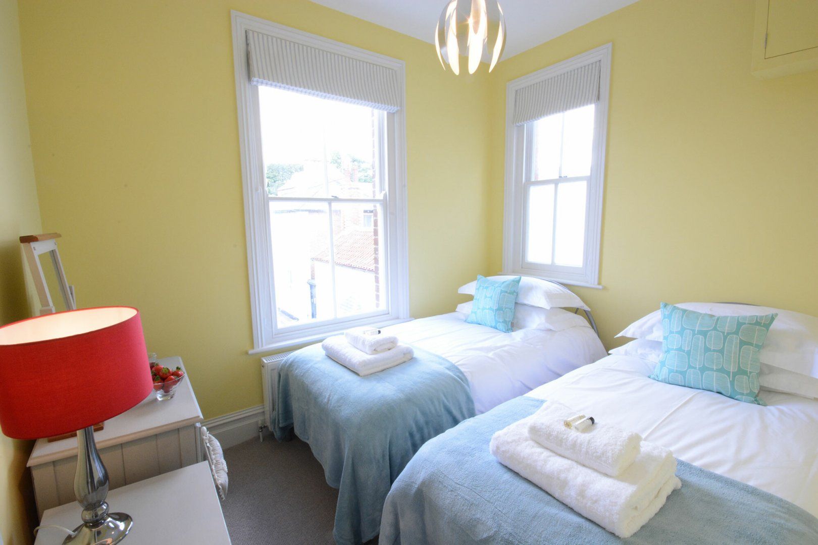 Accomodation Details First-floor apartment. Three bedrooms: 1 x king-size with en-suite with walk-in shower, basin and WC, 1 x king-size, 1 x twin. Bathroom with bath, walk-in shower, basin, heated towel rail and WC. Kitchen/diner. Sitting room with woodburning stove