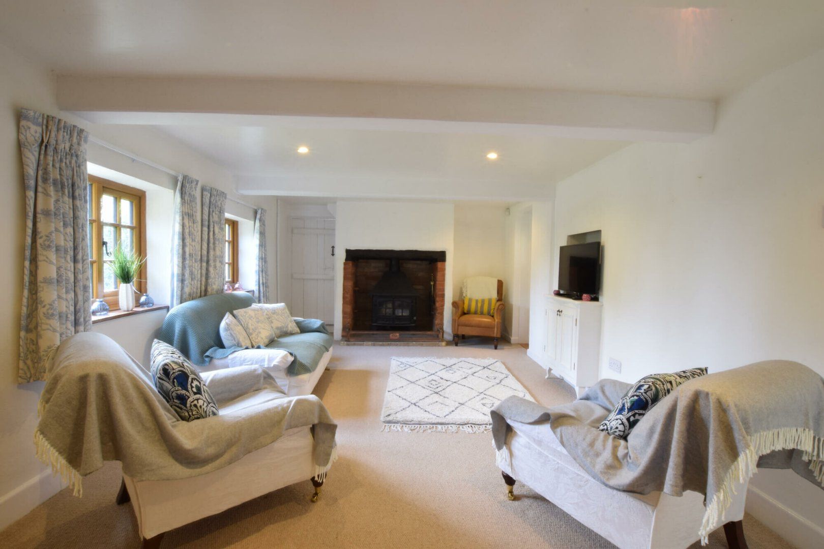 Heating with woodburning stove. Heritage stove oven, fridge/freezer, washing machine, dishwasher, coffee machine, kettle. Smart TV, Sky, WiFi, selection of books. Bed linen and towels inc. in rent. Travel cot available. Off-road parking for 4 cars. Enclosed south facing garden with lawn and furniture. One well-behaved dog welcome. Sorry no smoking. Shop 1.7 miles, pub 3.1 miles. Note: If you wish to bring a dog please inform us at time of booking. Note: For TV bring own Firestick/ChromeCast type device. Note: Additional sleeping in study room with double sofa bed made up on request. Note: Guests receive a welcome gift on arrival