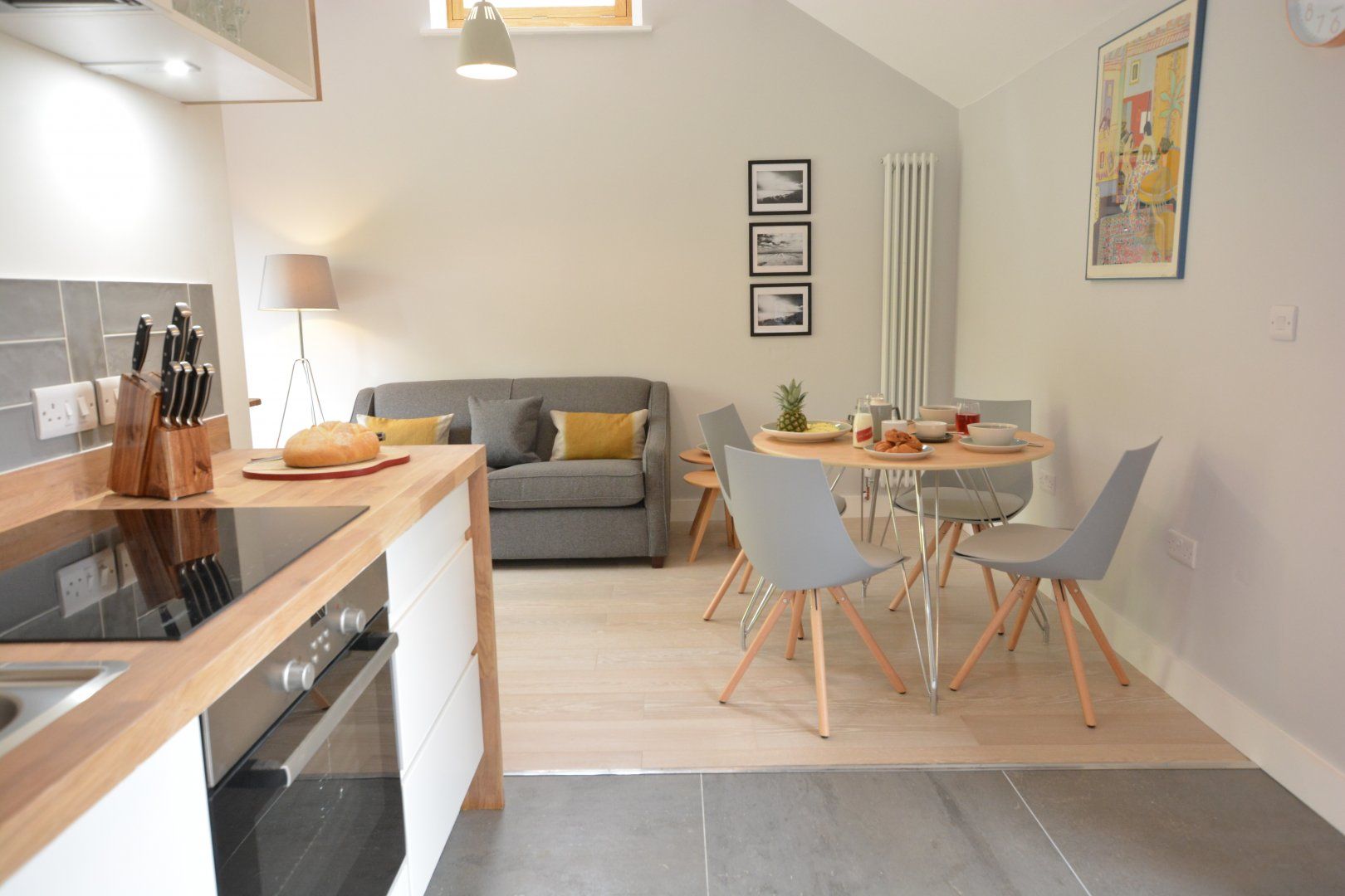 Milk Parlour is a single-storey property with oak flooring in the bedroom and living area, Italian designer tiles in the kitchen and bathroom and designer rads throughout.