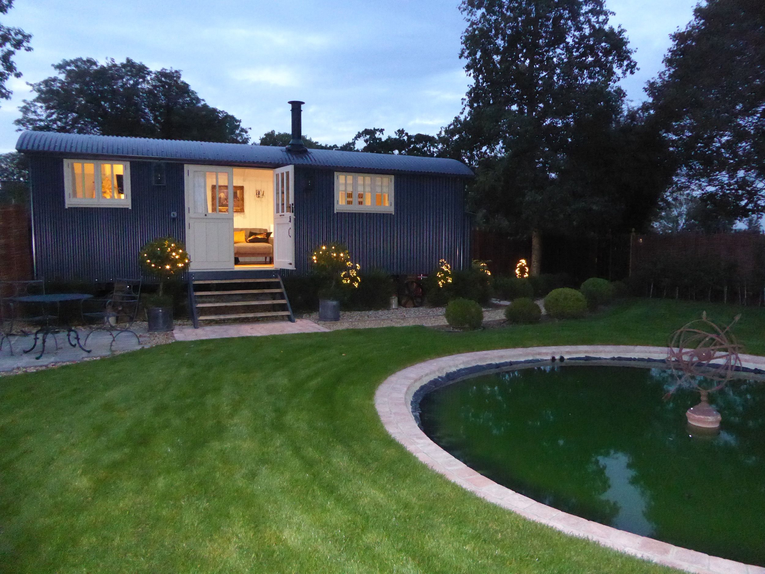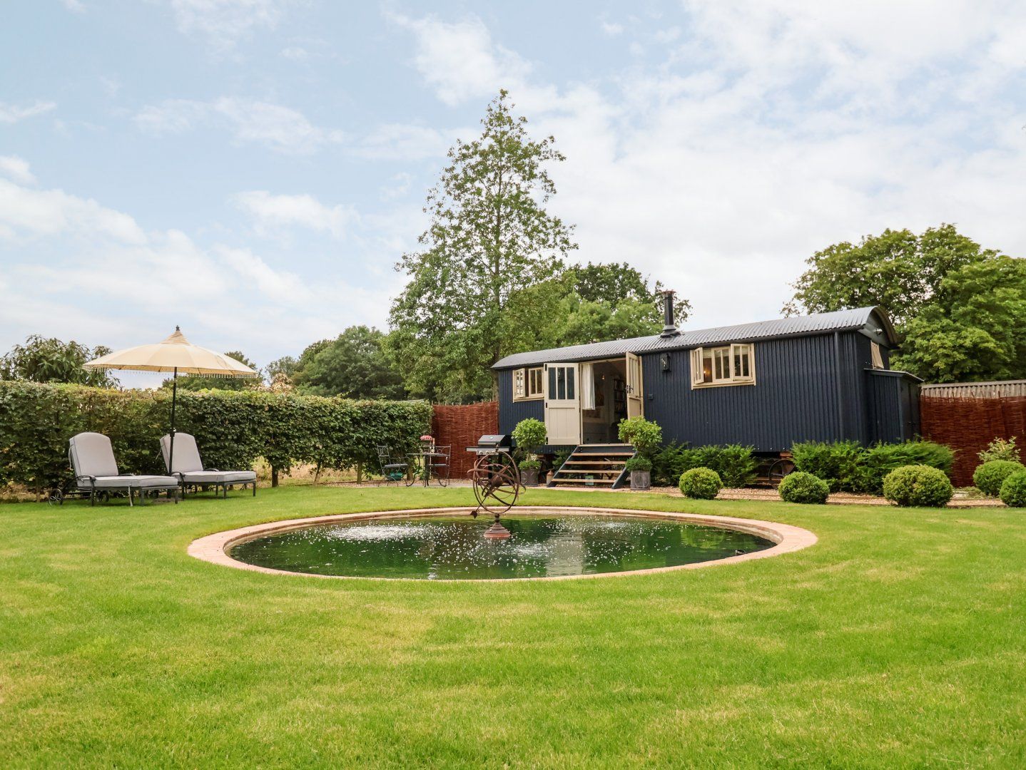 Holiday home This beautifully crafted luxurious Shepherds Hut is positioned in a beautiful woodland copse, with the birds singing around you. You'll be sure to be amazed as you walk into the grounds with a large grassed area with topiary balls, water feature and areas to sit and enjoy the Suffolk sunshine.