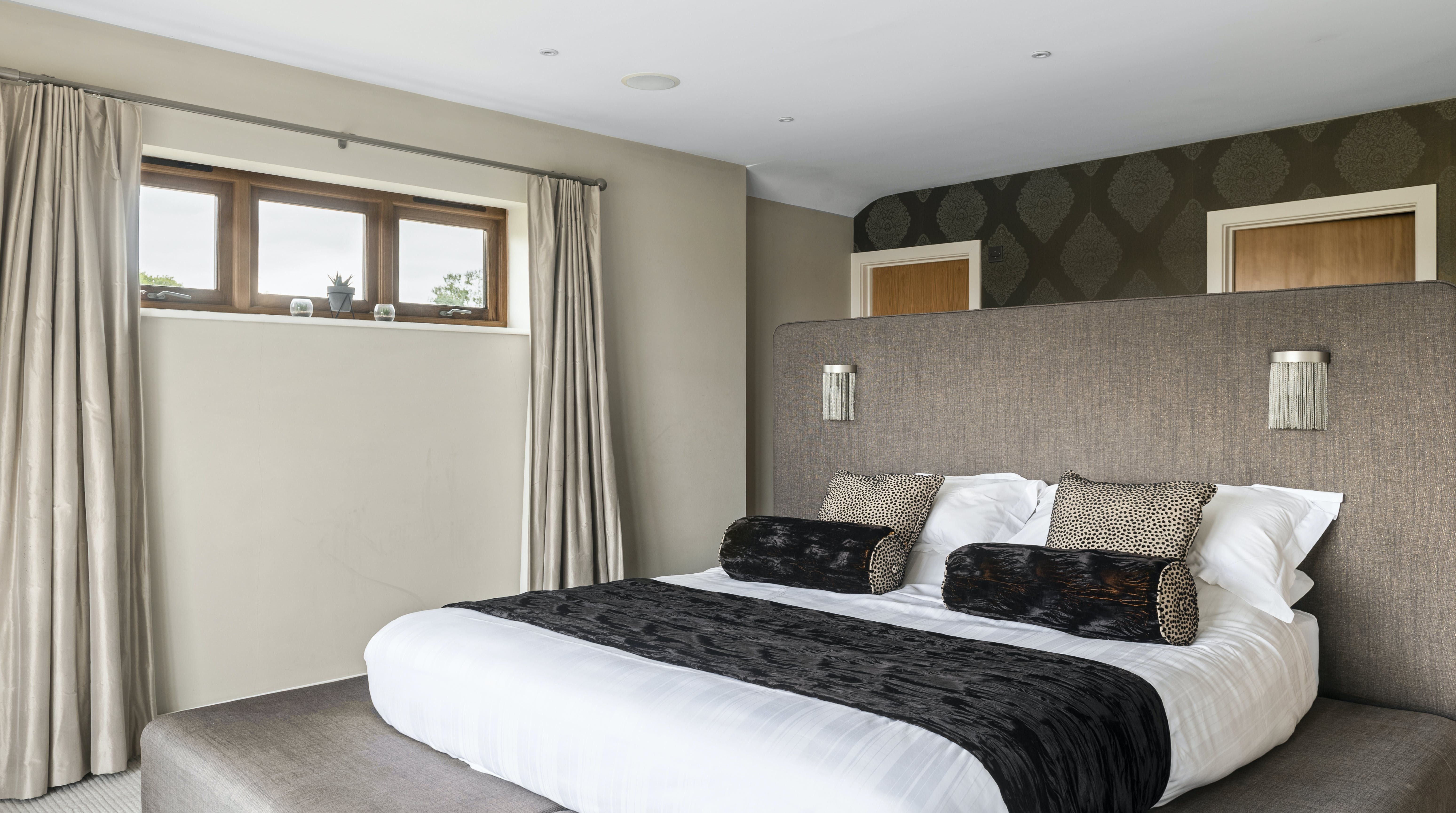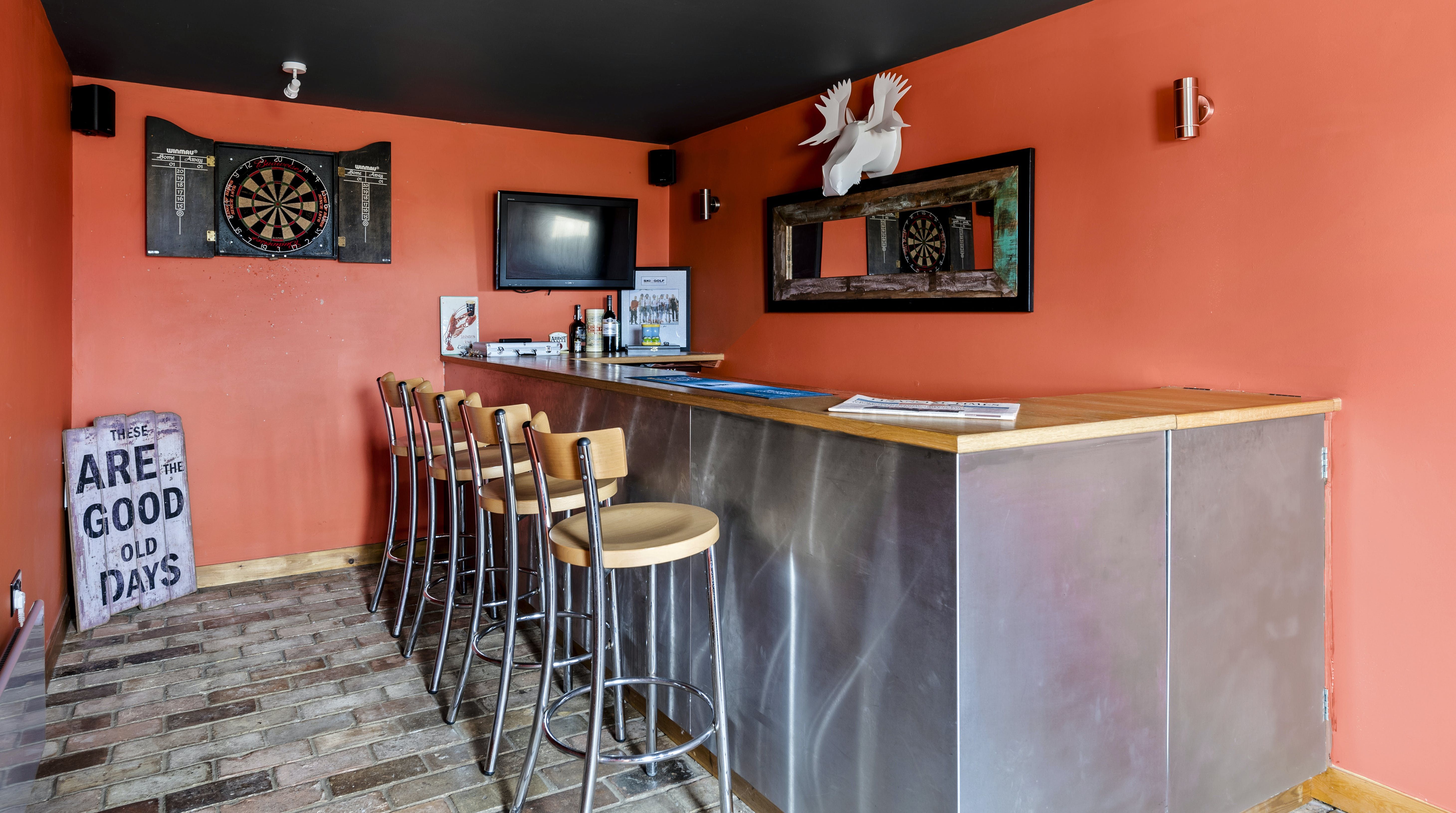 However, it's not just what lies within the home's walls that wows. Out on the peaceful grounds, there's a swimming pool and hot tub for when the weather's on your side, while you'll also find a sunken trampoline, a snug bar area and plenty of equipment for lawn games.