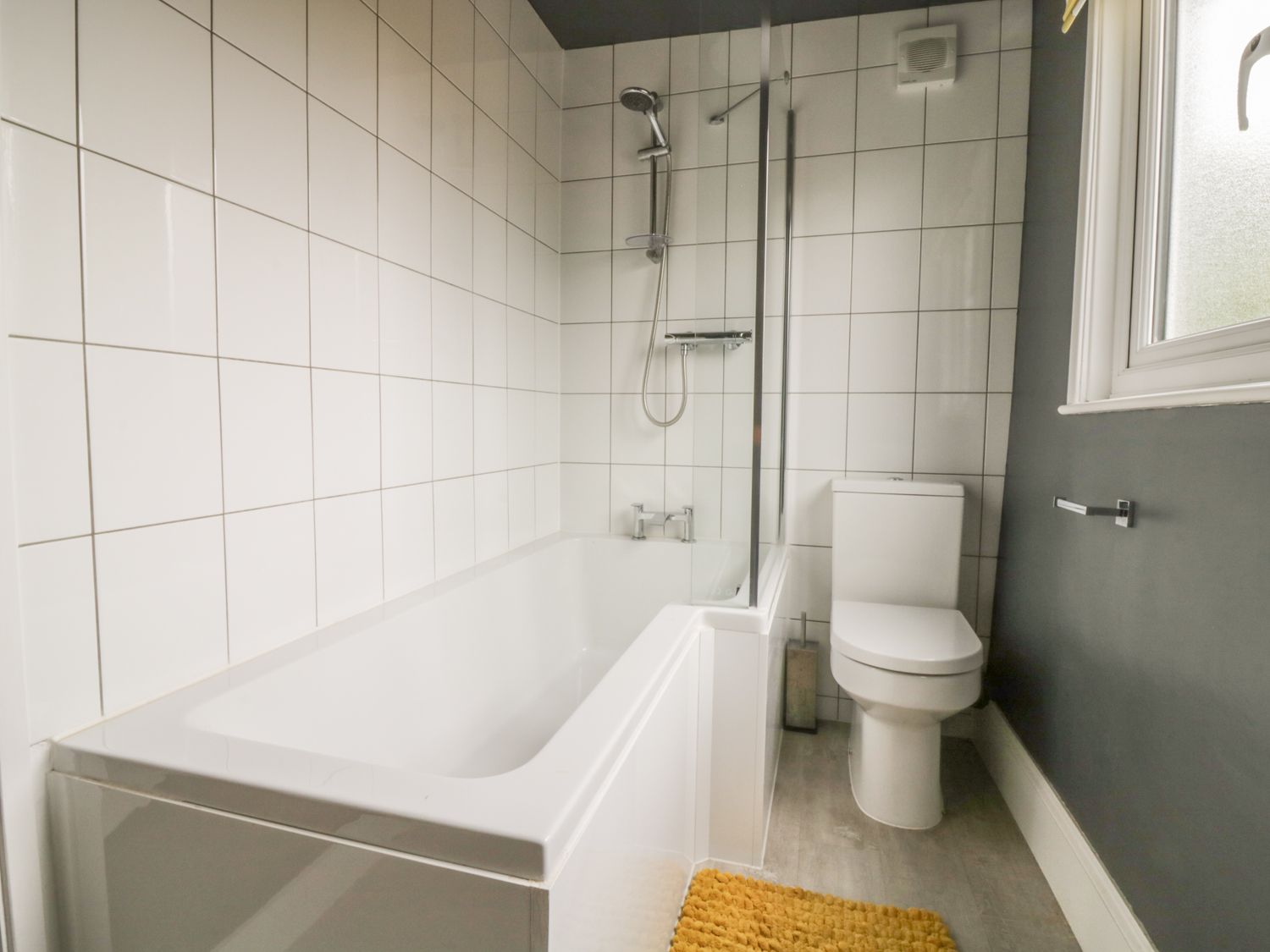 Two bedrooms: 1 x king-size double, 1 x twin. Bathroom with bath, shower over, basin and WC. Kitchen. Living/dining room with woodburning stove
