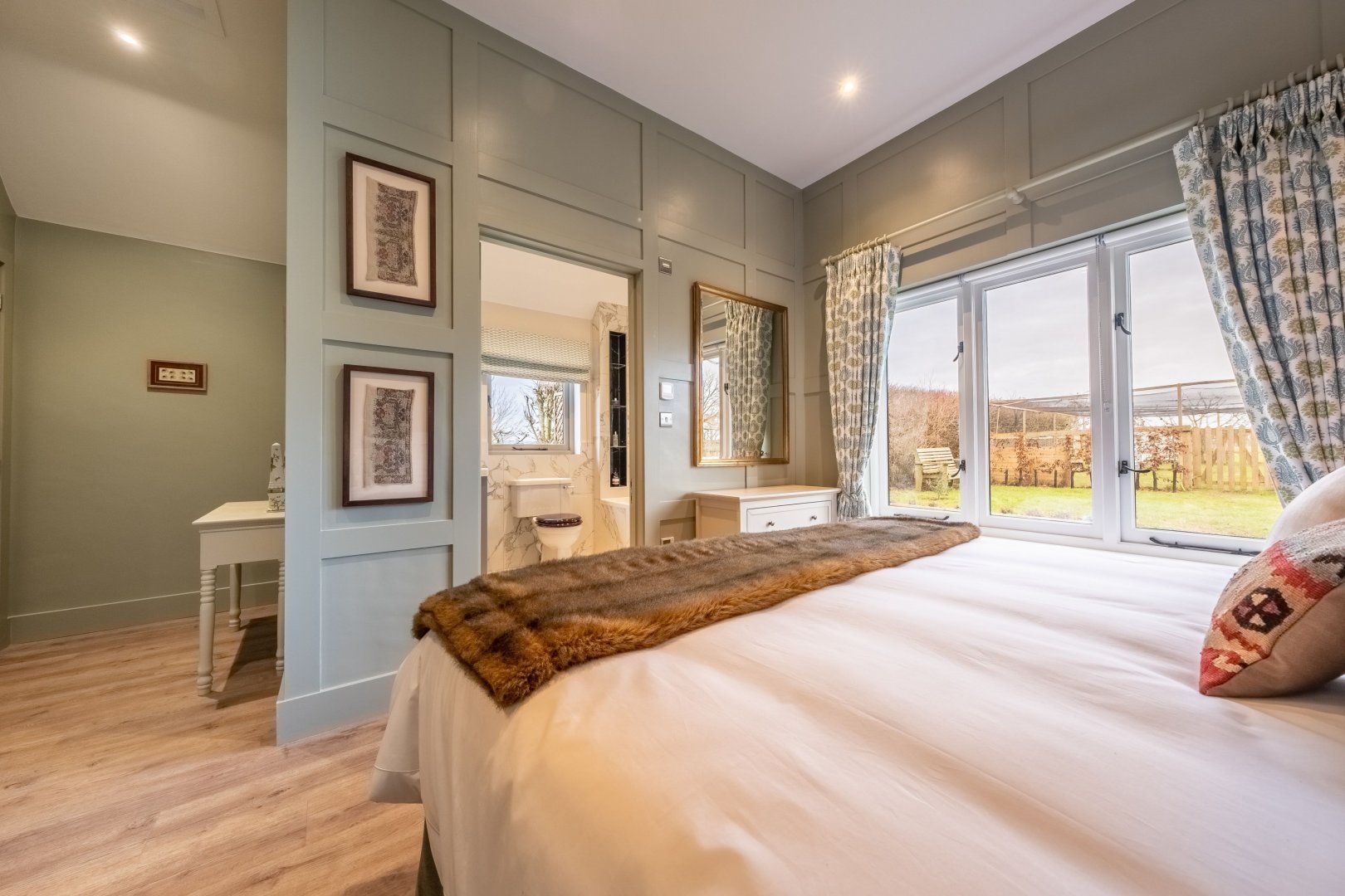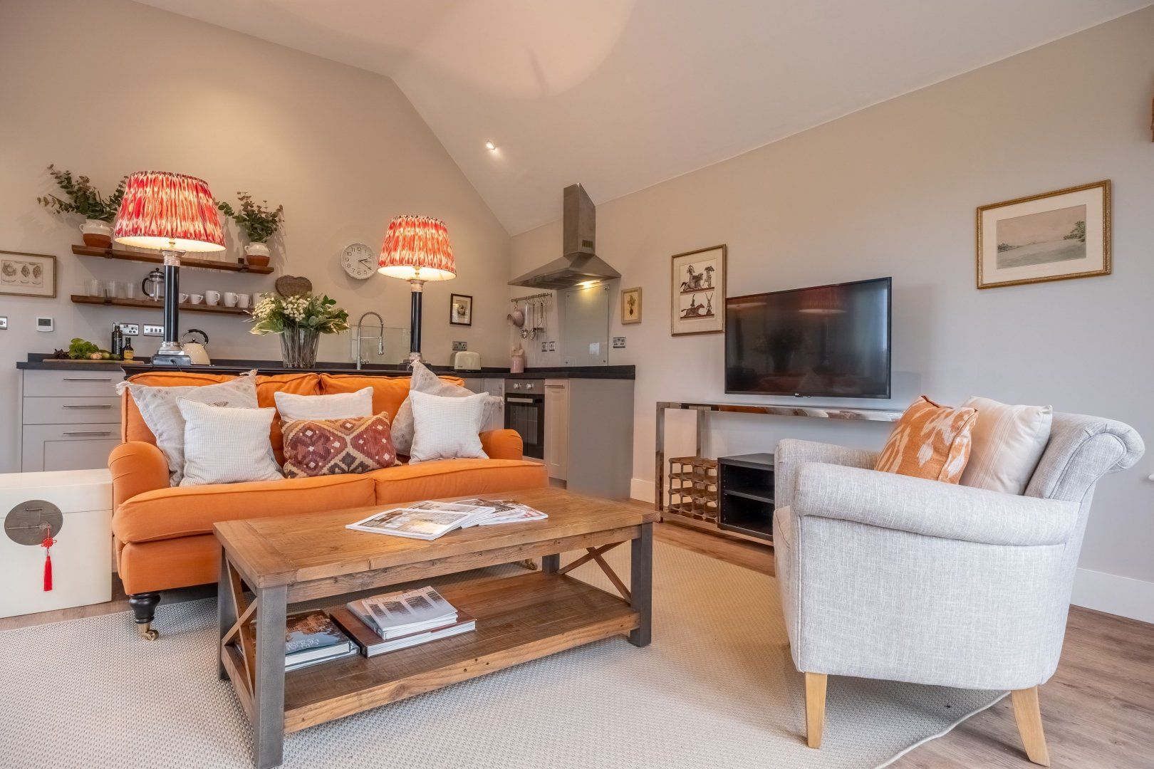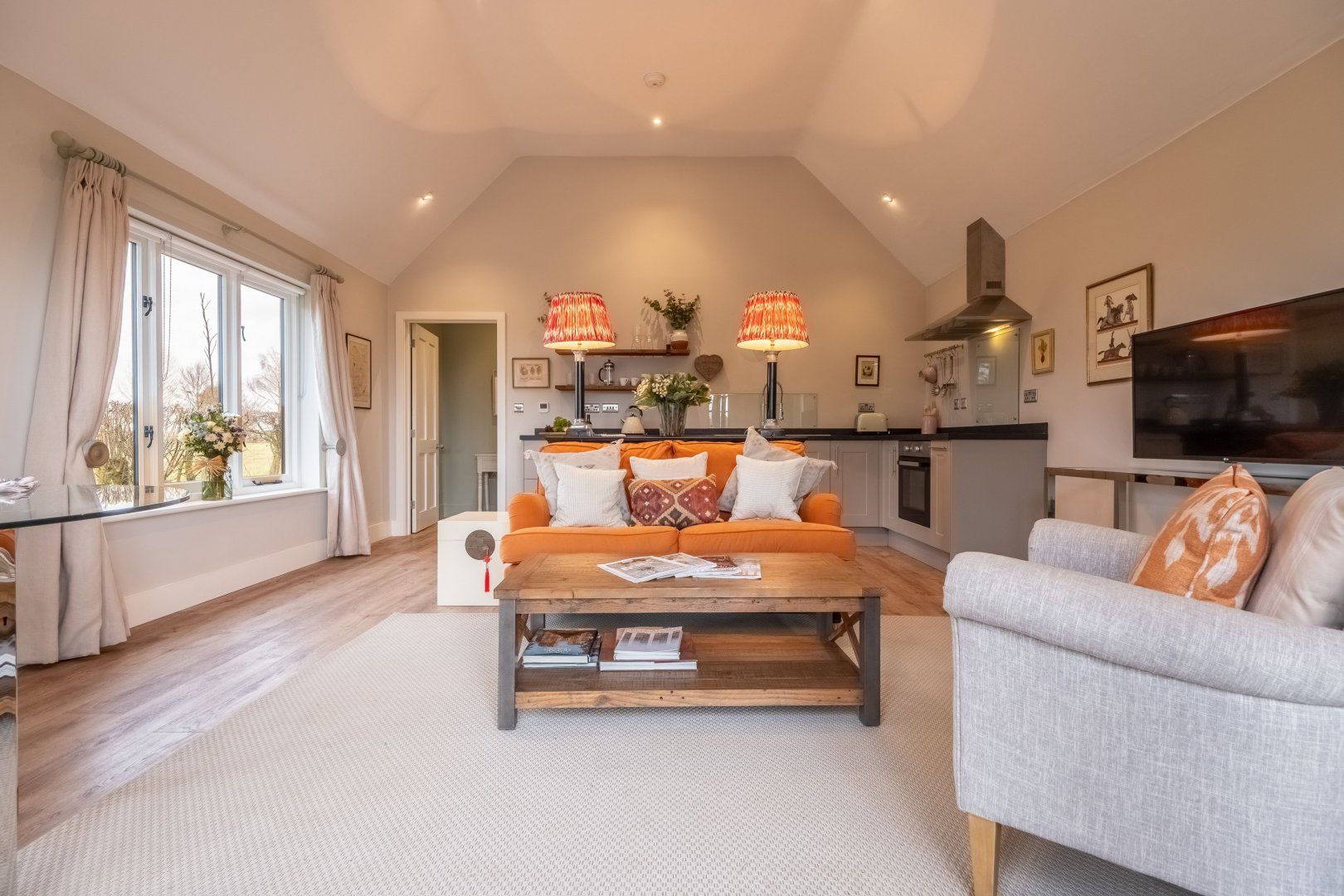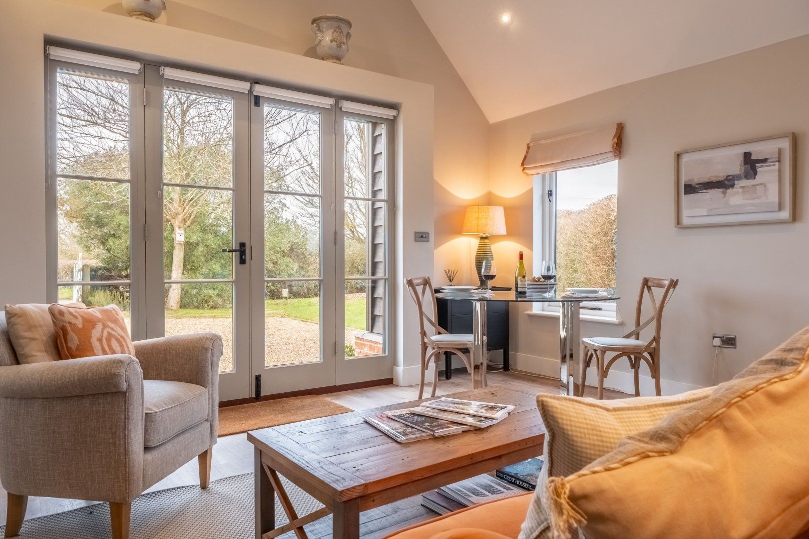 This cosy cottage has been designed with pure relaxation in mind. Nestled in the grounds of a Grade II Listed Manor Farm, you’ll be welcomed by views across the Suffolk countryside as well as a private terrace – perfect for summer evening drinks and barbecue meals. The grounds are shared with the owners, but you’ll have plenty of privacy plus it's spread across one floor – making this a lovely option for those with reduced mobility. From here, there’s easy access to walking trails through Dedham Vale (just a twenty-minute drive away), as well as local amenities in Boxford and Kersey – both a short drive away.