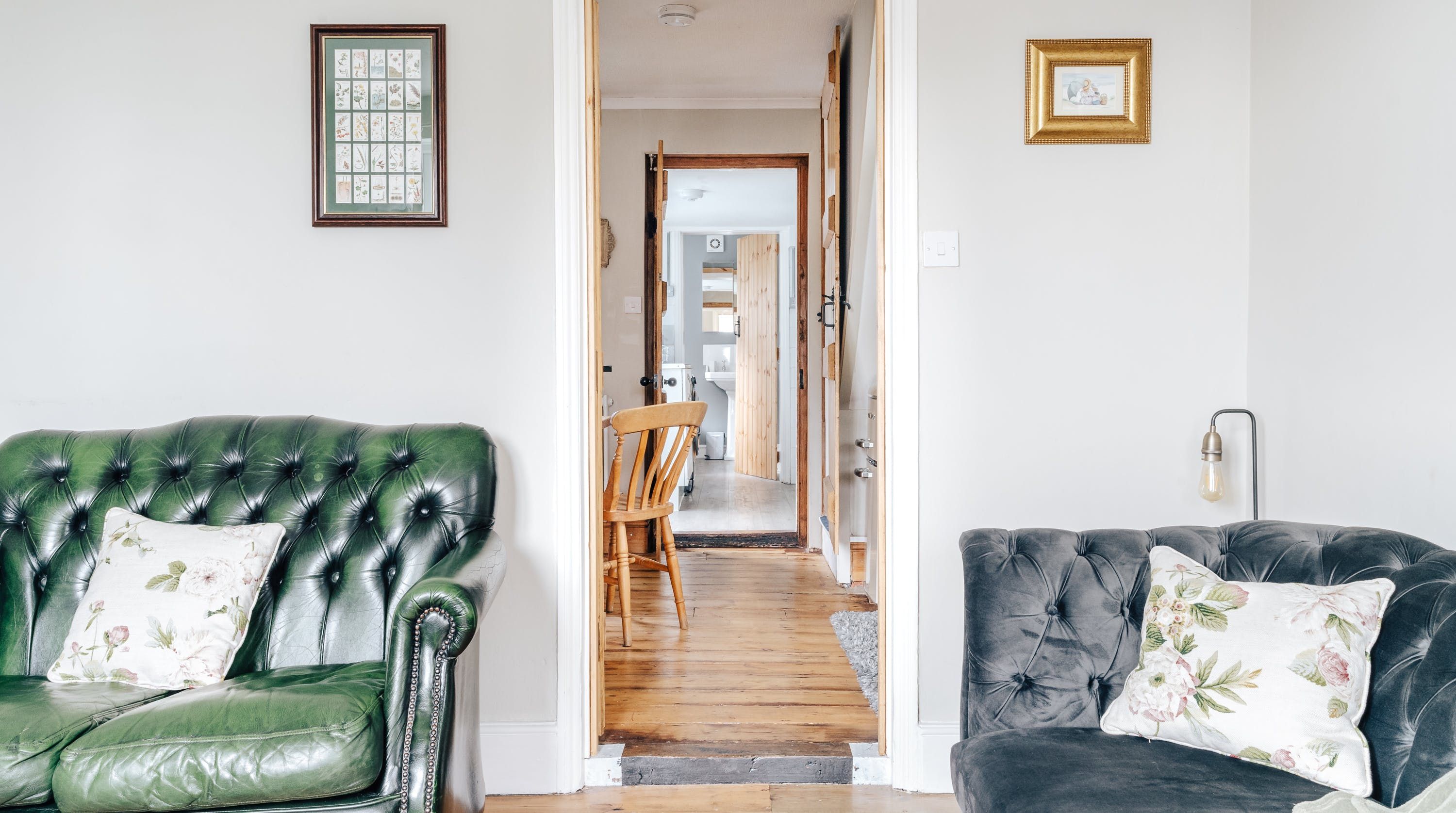 Inside, the living room is decorated in soothing green tones, with plenty of comfortable Chesterfield seating and a wood burner that makes for idyllic nights telling tall tales around the fire. Elsewhere, the dining room has seating for four and a convenient workspace for anyone who can't quite leave the office behind. Finally, there's a compact kitchen equipped with everything you might need to whip up family feasts, plus an inviting bathroom with a Victorian rolltop bath for some evening 'you' time.