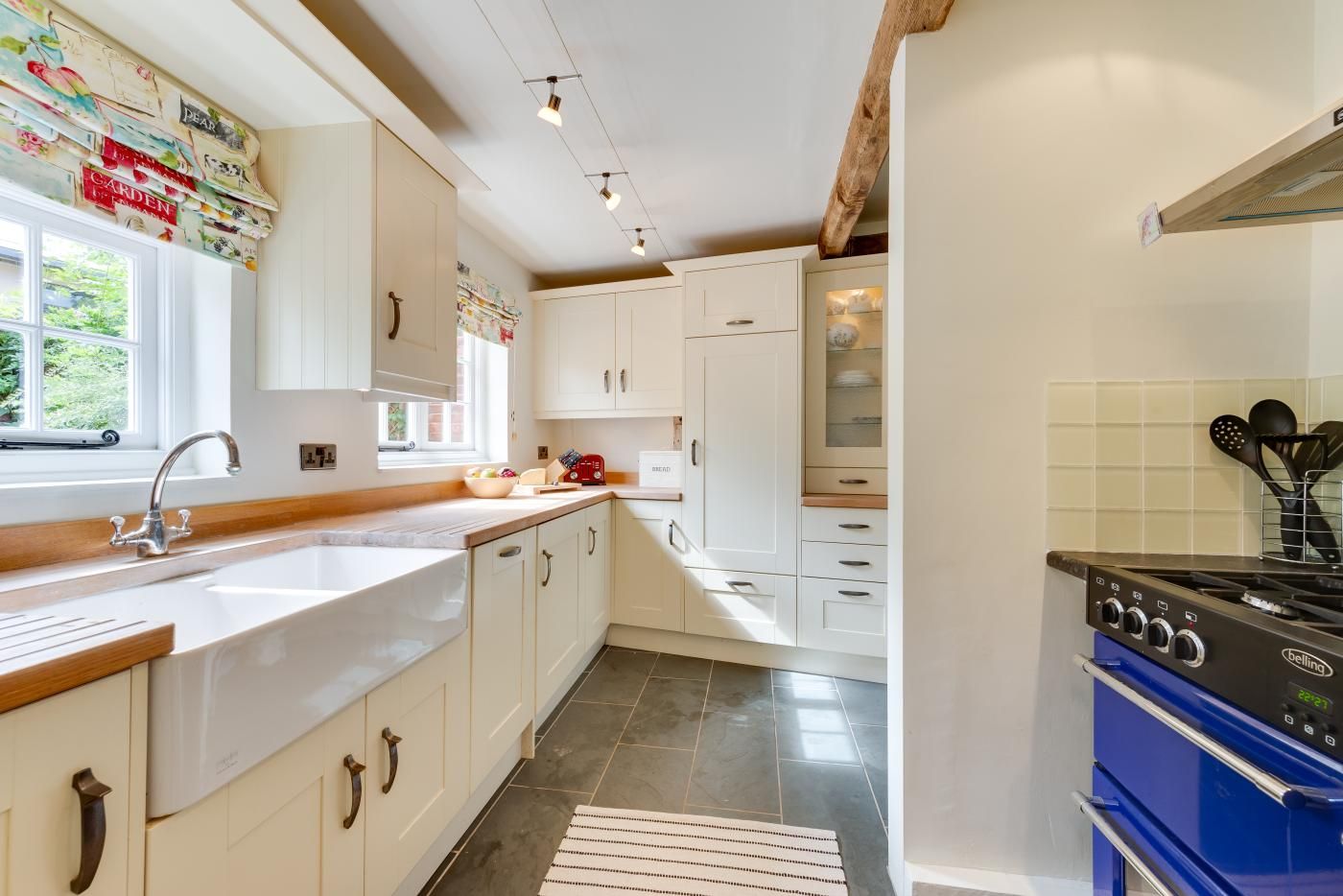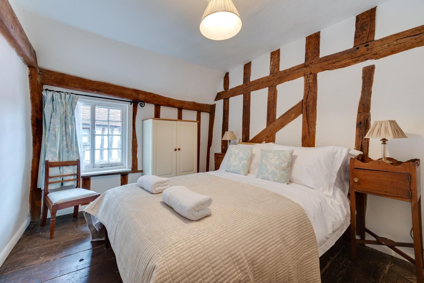Boasting medieval timber beams, pretty wooden windows and original floorboards, the homely atmosphere of this cottage beckons you to fire up the roaring wood burner in the cosy lounge/diner, unwind on the comfy leather sofas, enjoy the ultimate family games night gathered around the rustic dining table and cook up a storm with the delicious local produce you’ve collected in the contemporary farmhouse-style kitchen. When you can’t resist the call of bedtime any longer, climb the cottage staircase to find two charming bedrooms that both feature the same characterful exposed timber beams, rustic antique-style furniture and soothing neutral colour palette as downstairs that’ll send you into a peaceful sleep before tomorrow’s adventure.