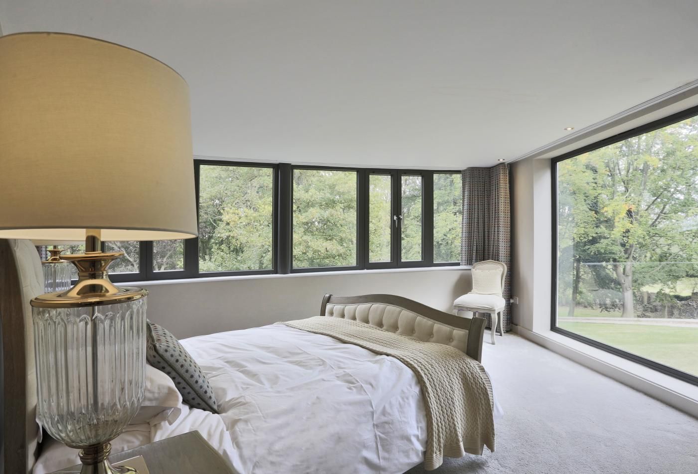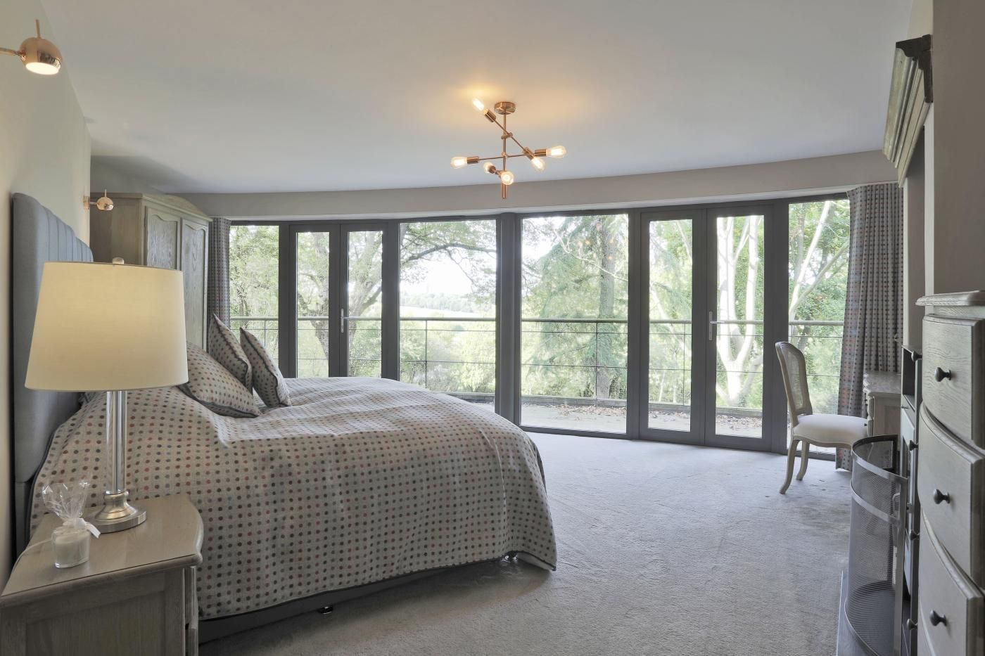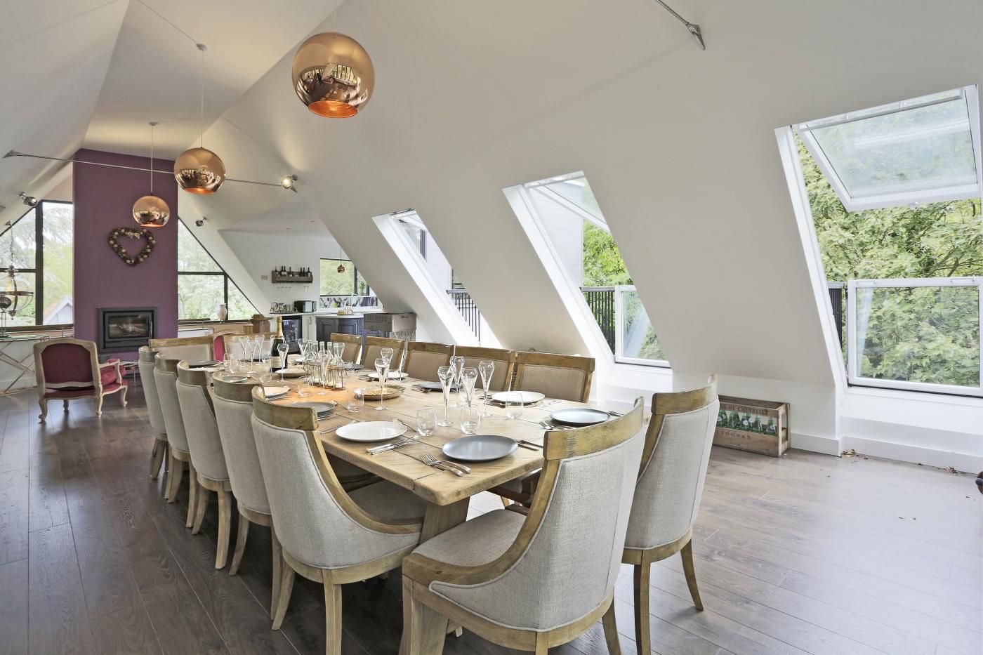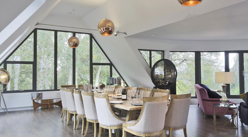 A gorgeously reimagined former farmhouse with a stunning curved-glass facade, this stylishly updated holiday home makes a fabulous retreat for larger families and groups of friends looking for an unforgettable destination surrounded by idyllic countryside.