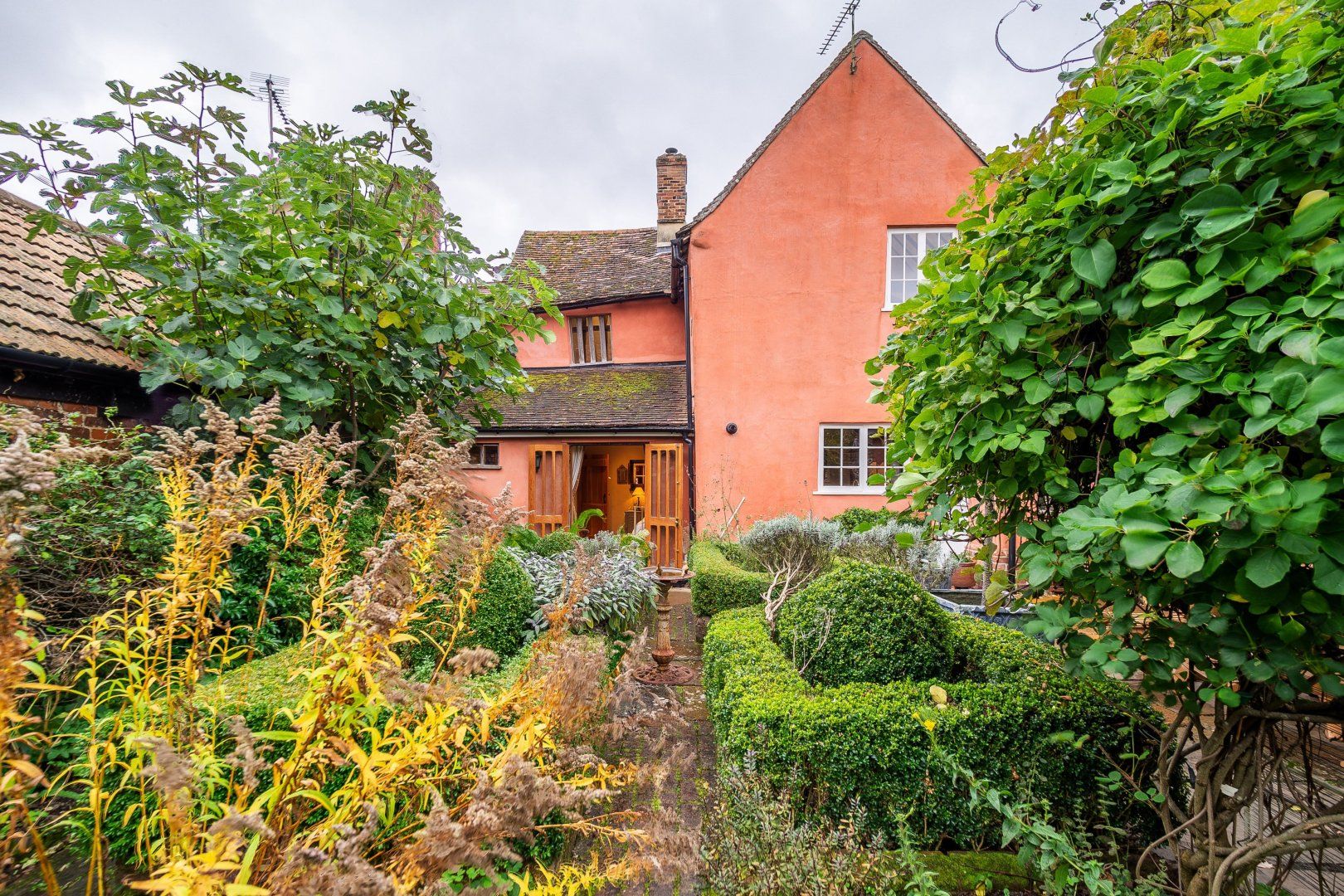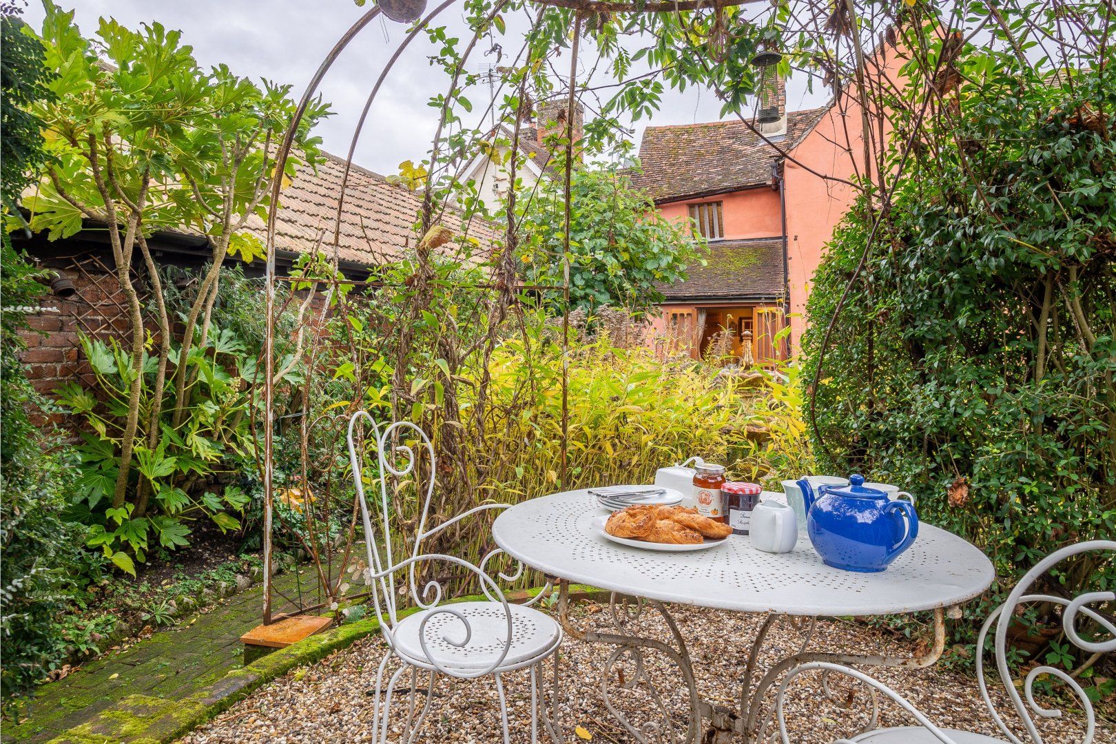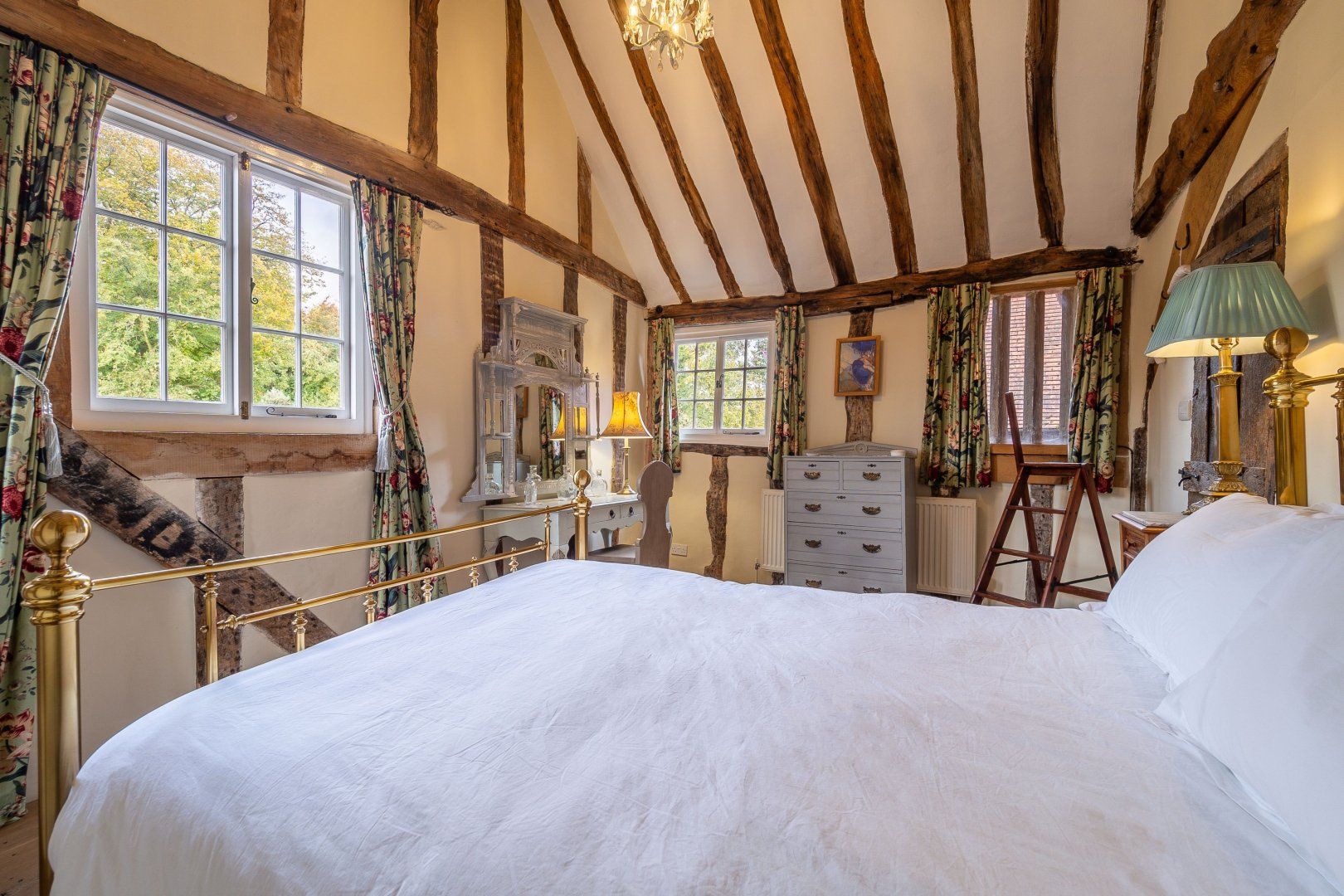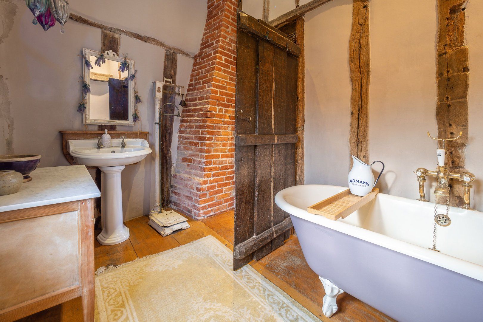 Once among the wealthiest of conurbations in England, Lavenham is a great place to see well-preserved medieval architecture. This Grade-I listed timber-framed home gives you the rare opportunity to stay in a property from the Elizabethan age. Inside, there are plenty of period features, from the wooden beams and inglenook fireplace to the wattle and daub walls and the various nooks. This sense of history continues when you step out the back door into the Tudor knot garden, which teems with well-tended foliage and also features an alfresco table and a vine-covered metal bower. Despite the home's advanced age, you'll find plenty of modern amenities inside, including an Aga oven and a rather elegant freestanding bathtub. Elsewhere in Lavenham, there's a wide range of similarly characterful buildings to visit, including The Crooked House Gallery three minutes' walk up the road. Alternatively, the Railway Walks nature reserve can be reached in just over a quarter of an hour on foot.