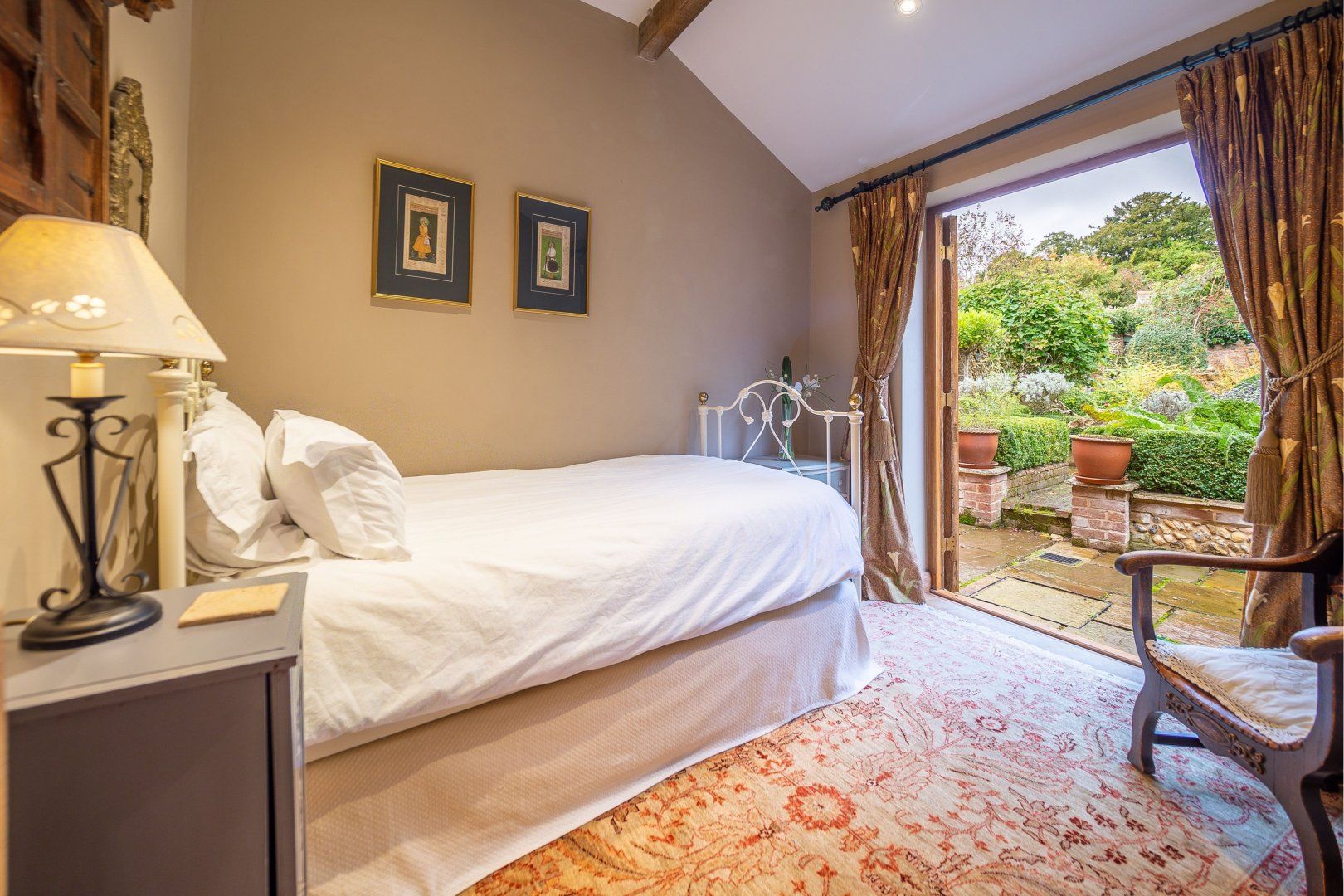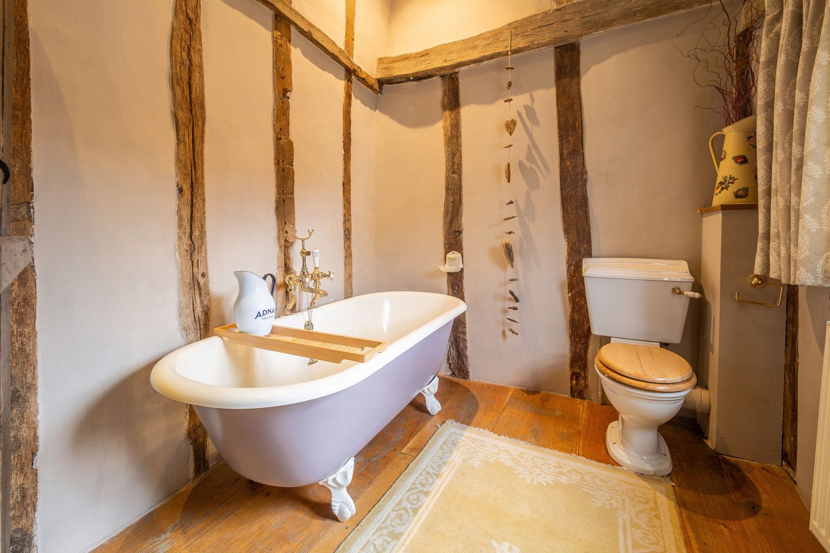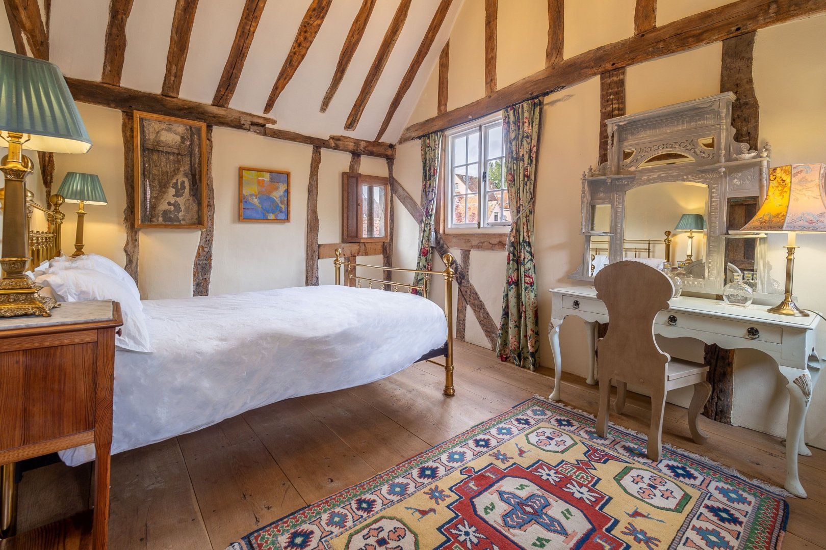 Once among the wealthiest of conurbations in England, Lavenham is a great place to see well-preserved medieval architecture. This Grade-I listed timber-framed home gives you the rare opportunity to stay in a property from the Elizabethan age. Inside, there are plenty of period features, from the wooden beams and inglenook fireplace to the wattle and daub walls and the various nooks. This sense of history continues when you step out the back door into the Tudor knot garden, which teems with well-tended foliage and also features an alfresco table and a vine-covered metal bower. Despite the home's advanced age, you'll find plenty of modern amenities inside, including an Aga oven and a rather elegant freestanding bathtub. Elsewhere in Lavenham, there's a wide range of similarly characterful buildings to visit, including The Crooked House Gallery three minutes' walk up the road. Alternatively, the Railway Walks nature reserve can be reached in just over a quarter of an hour on foot.