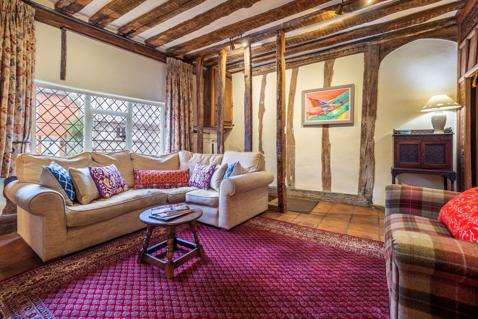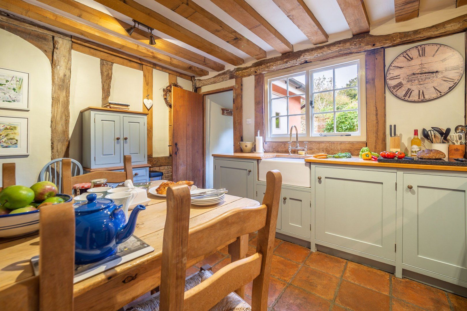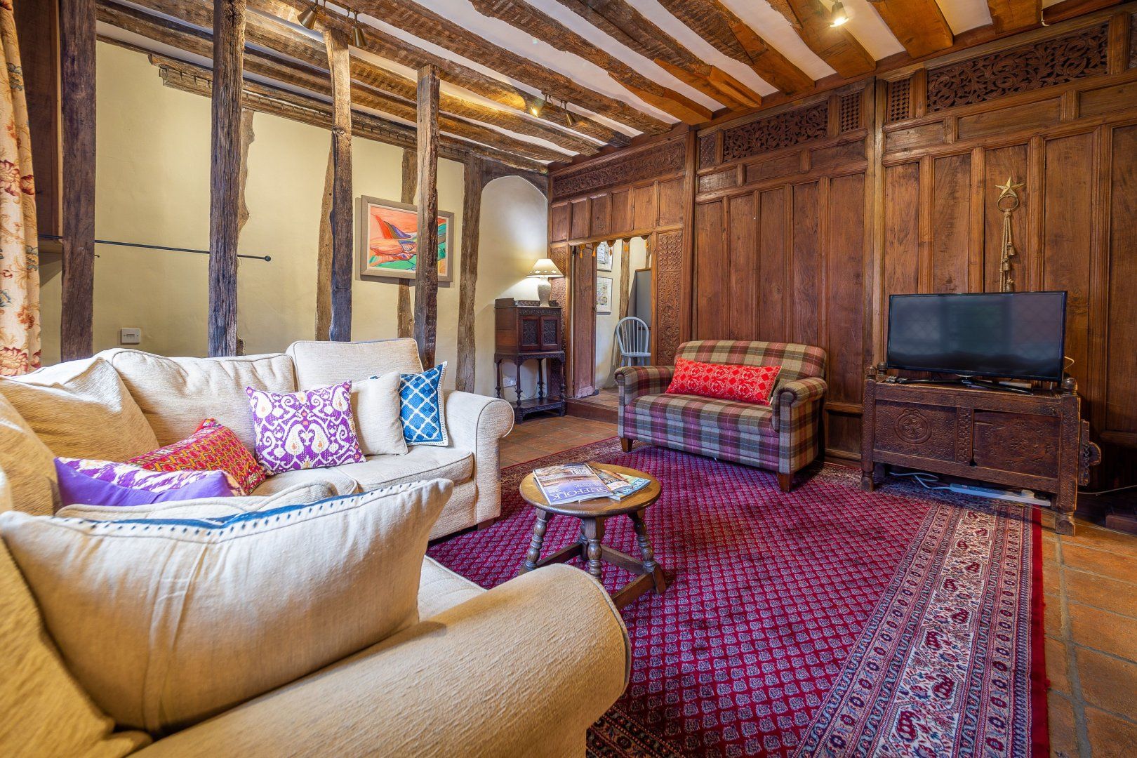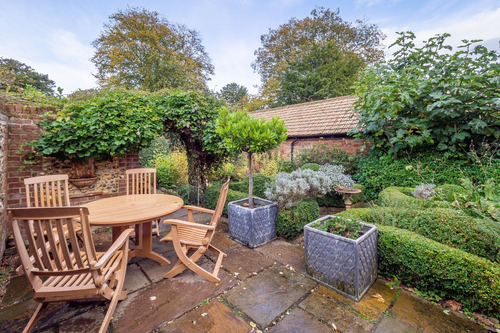 Once among the wealthiest of conurbations in England, Lavenham is a great place to see well-preserved medieval architecture. This Grade-I listed timber-framed home gives you the rare opportunity to stay in a property from the Elizabethan age. Inside, there are plenty of period features, from the wooden beams and inglenook fireplace to the wattle and daub walls and the various nooks. This sense of history continues when you step out the back door into the Tudor knot garden, which teems with well-tended foliage and also features an alfresco table and a vine-covered metal bower. Despite the home's advanced age, you'll find plenty of modern amenities inside, including an Aga oven and a rather elegant freestanding bathtub. Elsewhere in Lavenham, there's a wide range of similarly characterful buildings to visit, including The Crooked House Gallery three minutes' walk up the road. Alternatively, the Railway Walks nature reserve can be reached in just over a quarter of an hour on foot.