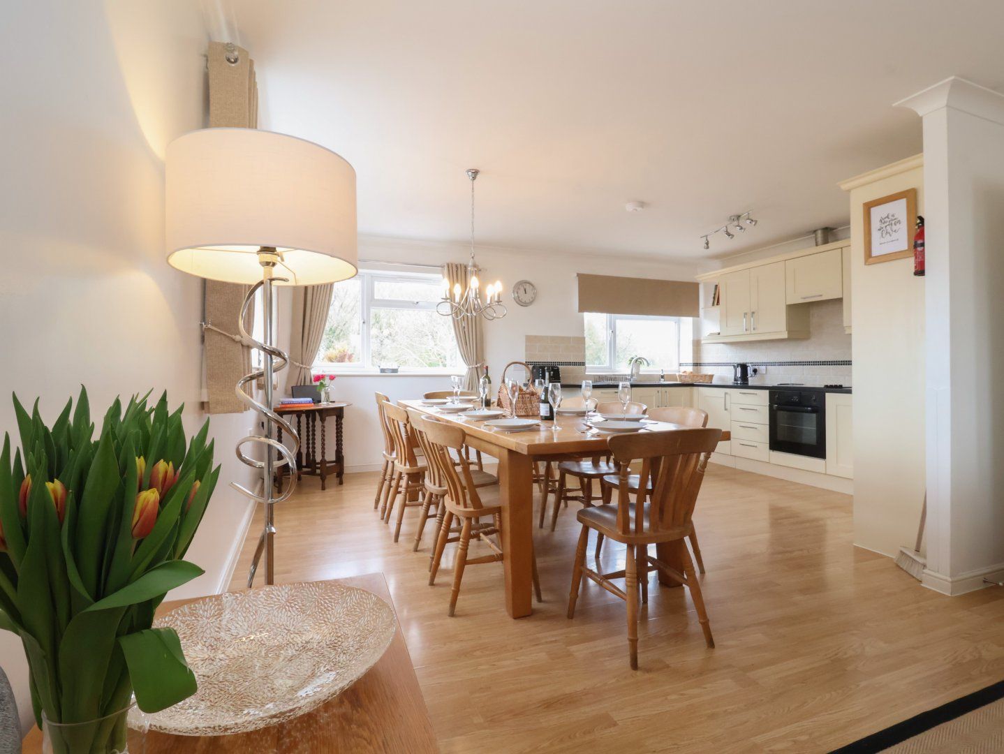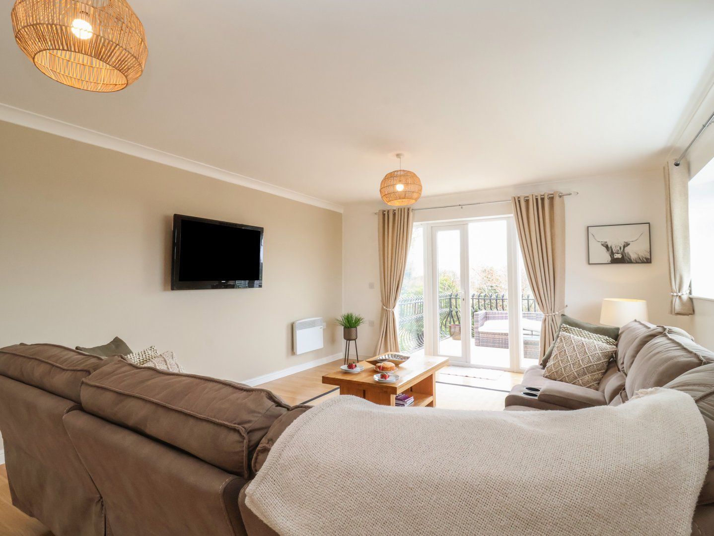 Amenities Heating. Two electric ovens, ceramic hob, microwave, fridge/ freezer, washer/dryer, Two TV's, WiFi, Bed linen and towels inc. in rent. Travel cot and high chair available on request. Ample off-road parking. One well behaved dog welcome free of charge, second dog at £25. Sorry, no smoking. Shop 0.6 miles, pub 0.6 miles. Note: Supervise children near swimming pool at all times. Note: Sorry, no unaccompanied teenagers. Note: The bedding is feather