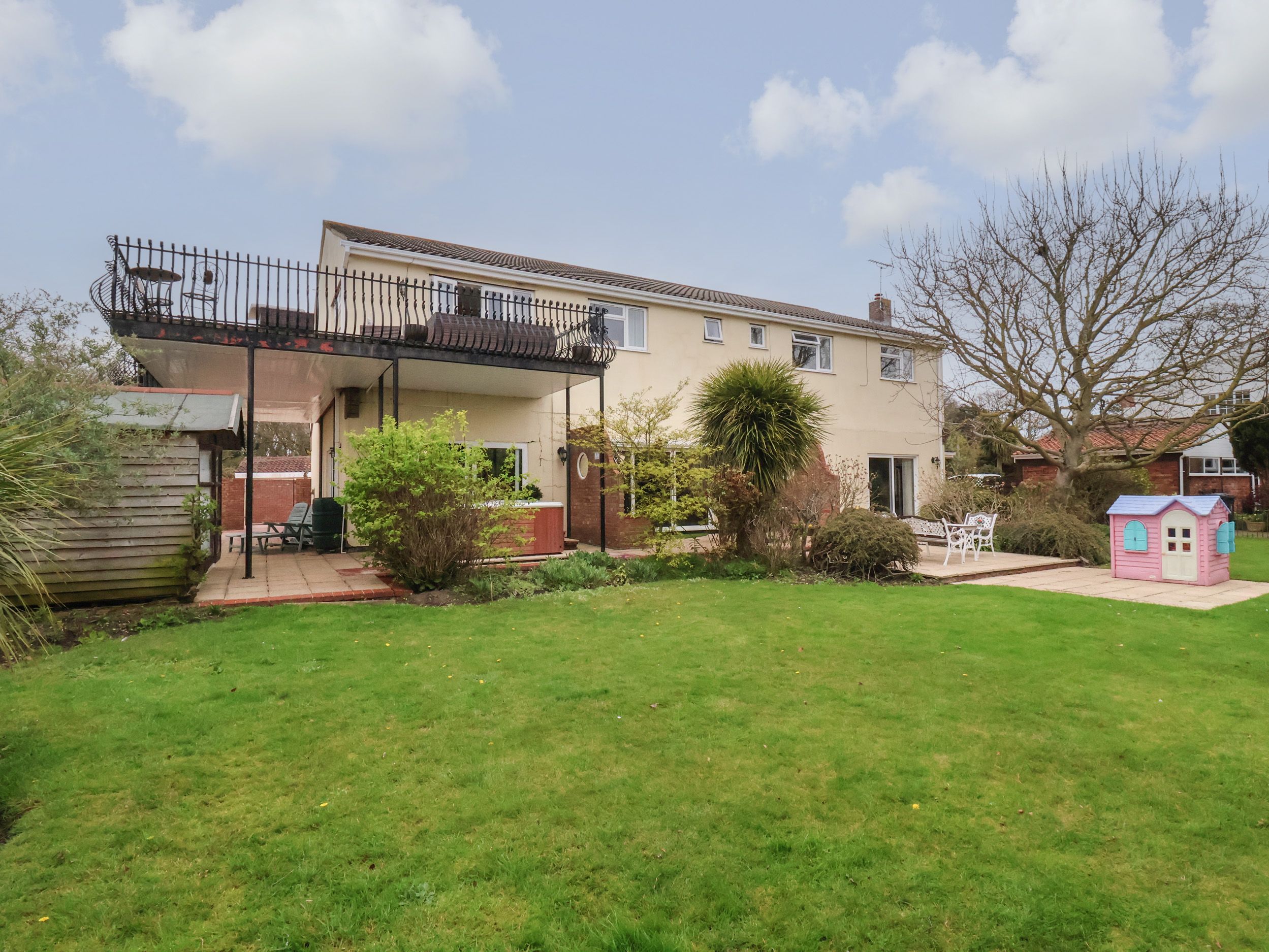 Accomodation Details Indoor heated swimming pool. Hot Tub. Five bedrooms: 3 x double bedrooms with en-suites with corner shower cubical, basin and WC, 1 x twin bedroom with en-suite with shower, basin and WC, 1 x twin bed, 1 bathroom with roll-top bath, basin and WC, Kitchen, Kitchen/Dining/Sitting Room. Games Room.