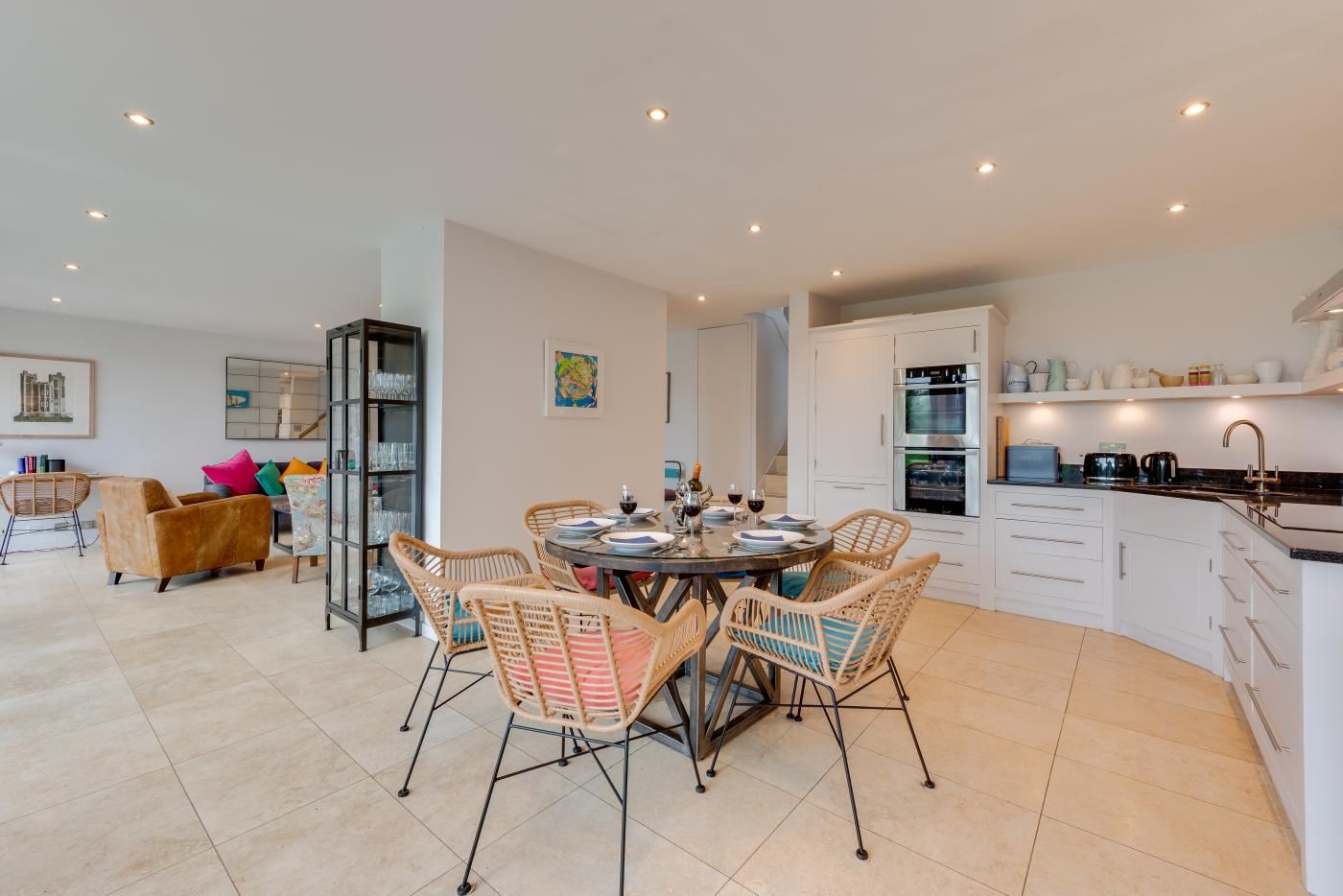 Aspen House is a stunning holiday home for six guests and showcases the wow factor from the moment you arrive and is carried throughout the property. Its impressive architecture, combined with a natural and calming colour palette, interspersed with pops of bright blues, pinks, and oranges in the soft furnishings and artwork, creates the ideal setting for friends and family to come together.