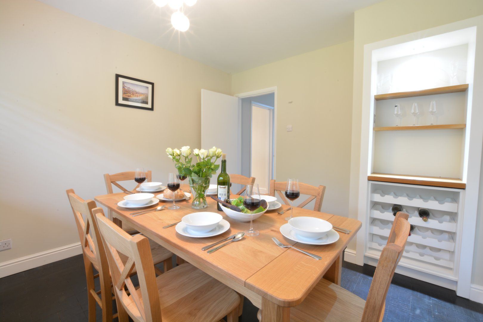 Amenities Oil heating with open fire. Electric oven, induction hob, microwave, fridge/freezer, washing machine, tumble dryer. TV, WiFi, piano. Bed linen and towels inc. in rent. Highchair and travel cot available on request. Off-road parking for 2 cars with additional on-road parking subject to availability. Enclosed garden with furniture. Three well behaved dogs welcome. Shop 0.1 mile, pub 0.1 miles, beach 4.9 miles. Note: There is additional parking on the road, subject to availability. Note: The property is situated near a main road and primary school, so please bear in mind that there may be traffic. Note: If you wish to bring a dog, it must be mentioned at the time of booking.