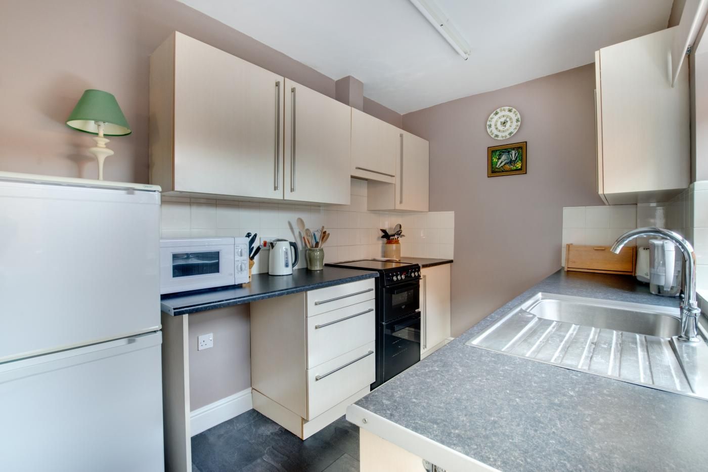 As you enter the property you’ll find a cosy sitting room with an electric effect fire for snug evenings after busy days.
