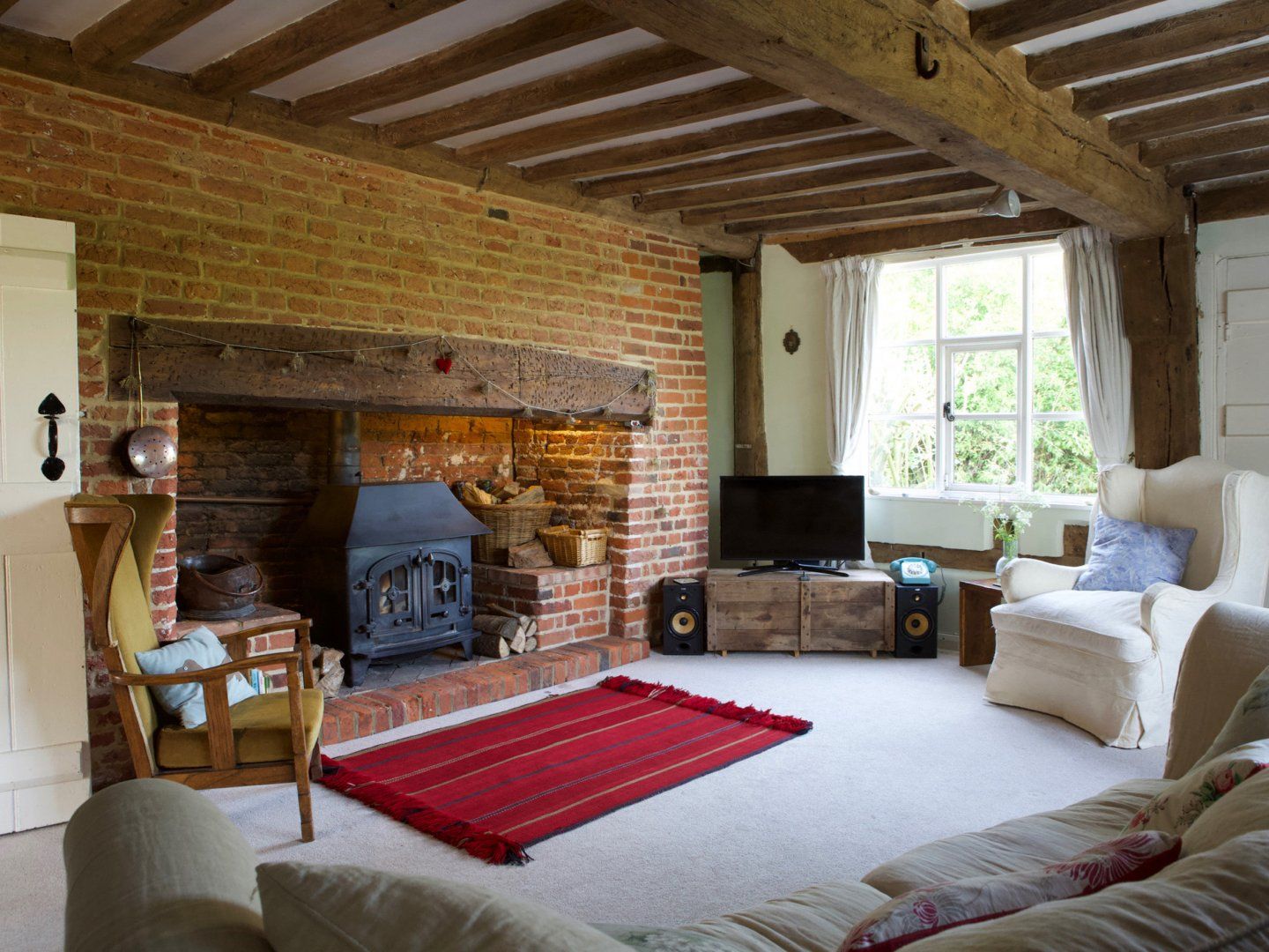 Amenities Wood-burning fire. Electric oven with gas hob, fridge, freezer, dishwasher and washing machine. Smart TV with Freeview, WiFi. Bed linen and towels inc. in rent. Travel cot, high chair and stairgate available. Ample off-road parking. Gardens with lawns, established fruit trees and wildflowers, outdoor seating and fairy lights. Sorry, no smoking. Shop 1.8 miles, pub 2.1 miles. Note: The heating and hot water are heated by the wood-burning stove, there is an immersion for hot water in summer, and an electric shower. Note: The property has feather bedding. Note: The stairs are steep, and there are some low doorframes. Note; There is an external plug for EV charging. Note: The garden is not full enclosed for dogs, in additional please be aware that there are farm animals grazing in the surrounding fields.
