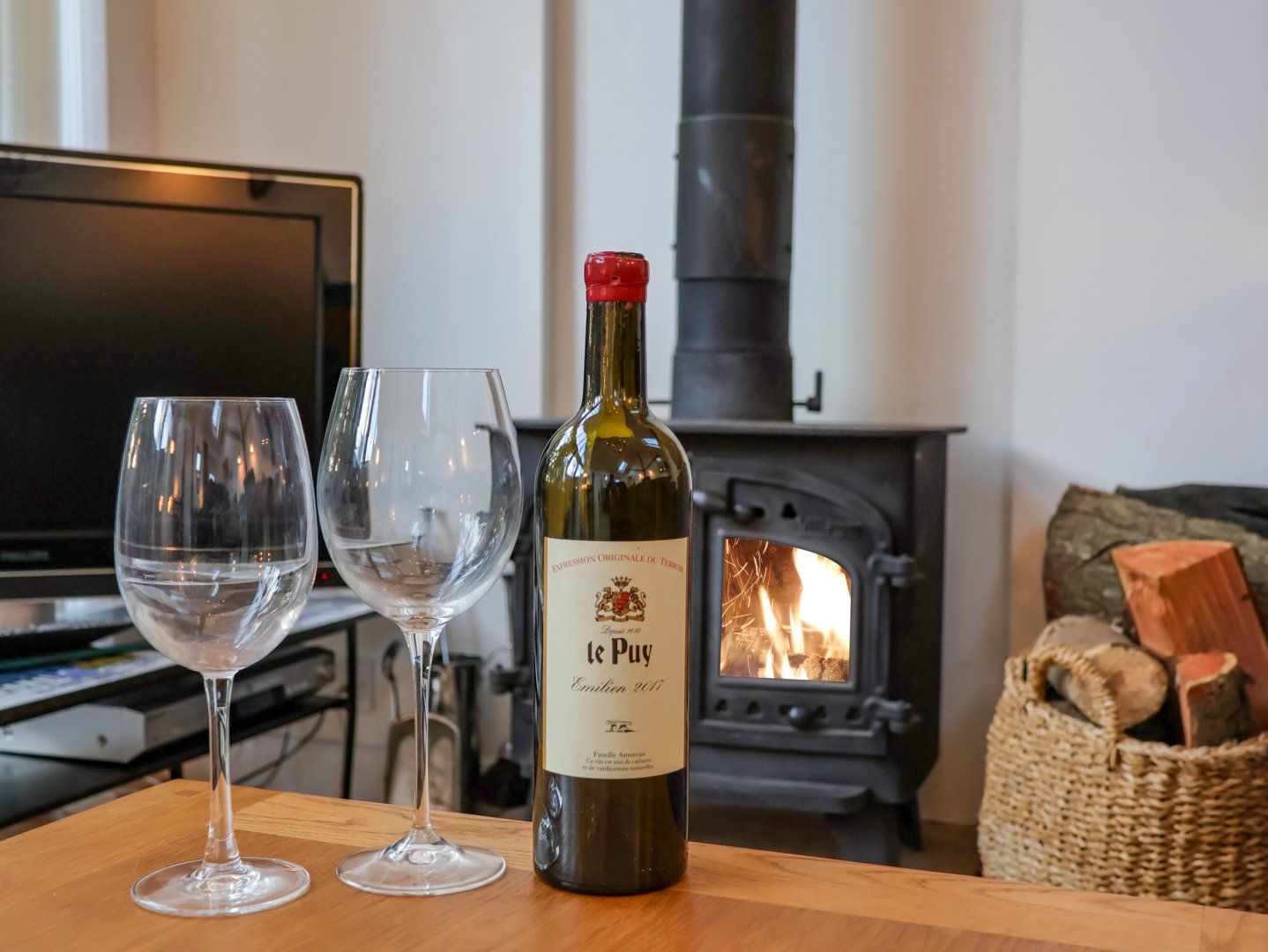 Amenities Oil heating with woodburning stove. Electric oven, ceramic hob, microwave, fridge, countertop freezer, slimline dishwasher. TV, Freeview, WiFi, selection of books. Bed linen and towels inc. in rent. Highchair and travel cot available. Off-road parking for 1 car. Garden with furniture & patio. One well behaved dog welcome, two upon request. Sorry, no smoking. Shop 0.1 miles, pub 0.8 miles. Note: If you wish to bring a dog it must be mentioned at the time of booking. Note: There are a few steps down from the garden path to the door, so please bear this in mind when booking