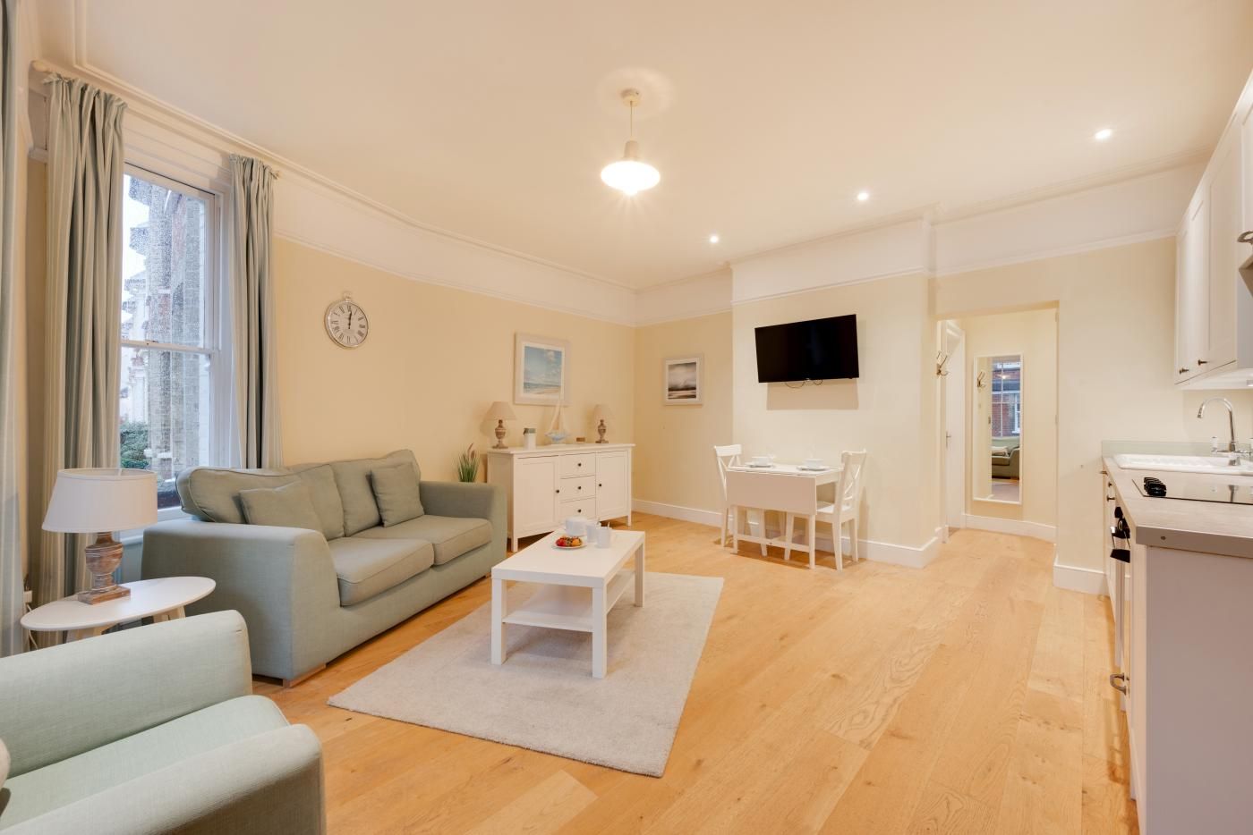 Just 100 metres from the beach and promenade, the spacious ground-floor apartment is set in a beautifully restored Victorian house, close to shops, cafes and restaurants. Southwold has a wealth of attractions and lovely coastal and country villages are within easy reach.