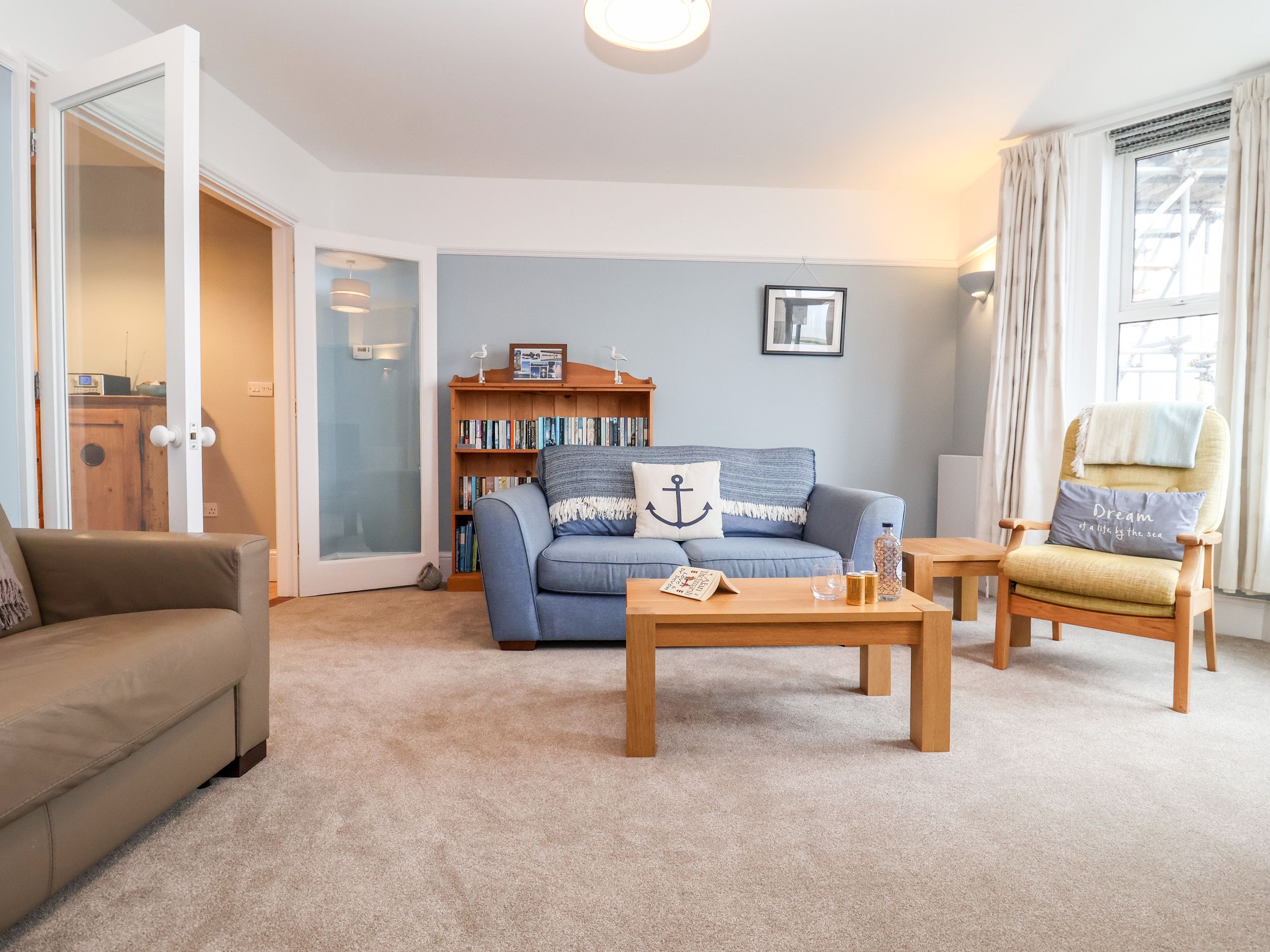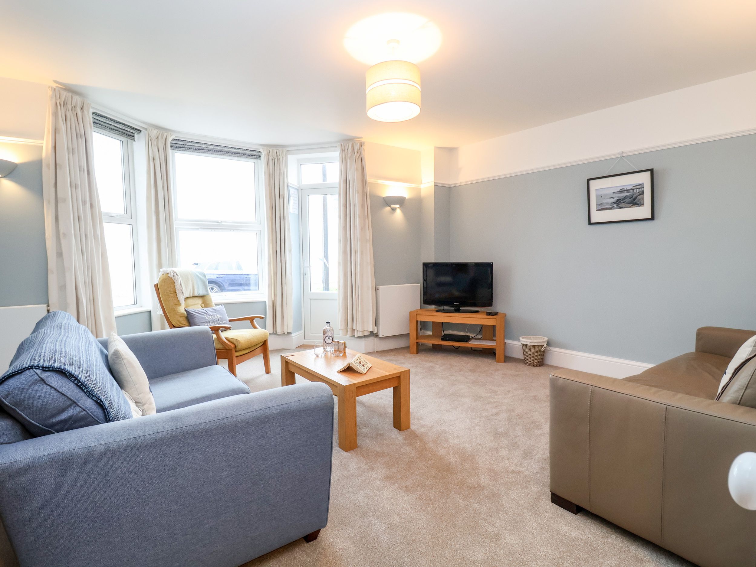 Accomodation Details Ground floor apartment. Two bedrooms. 1 x king-size bed with en-suite shower room with shower, wash basin, heated towel rail and WC. 1 x twin bedroom. Family bathroom with bath with overhead shower, wash basin, heated towel rail and WC