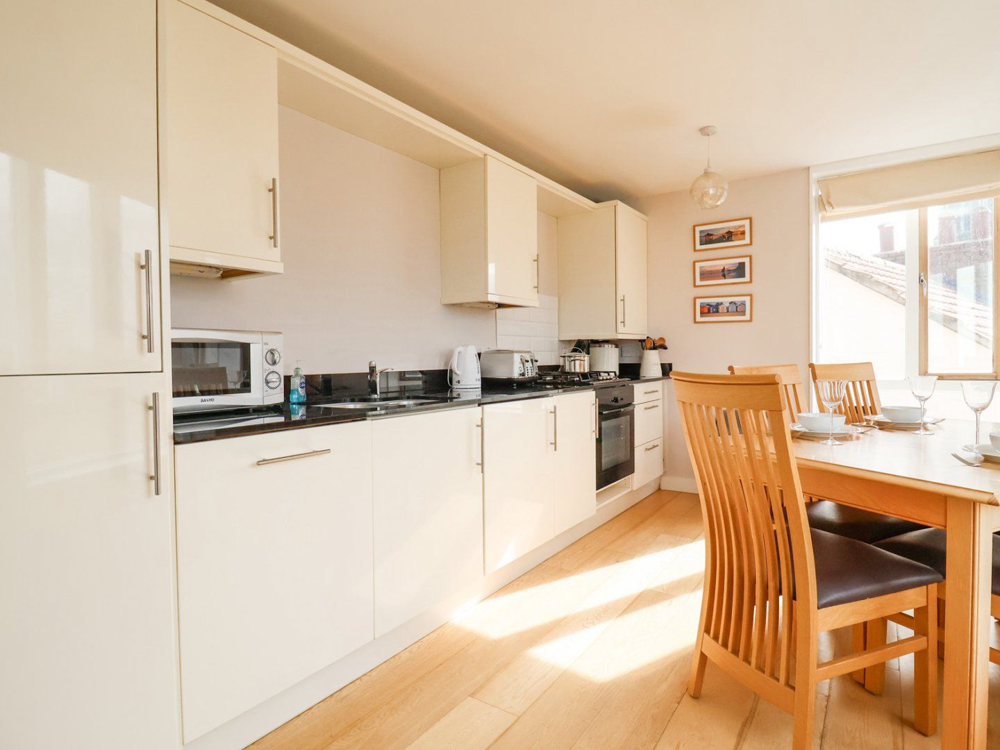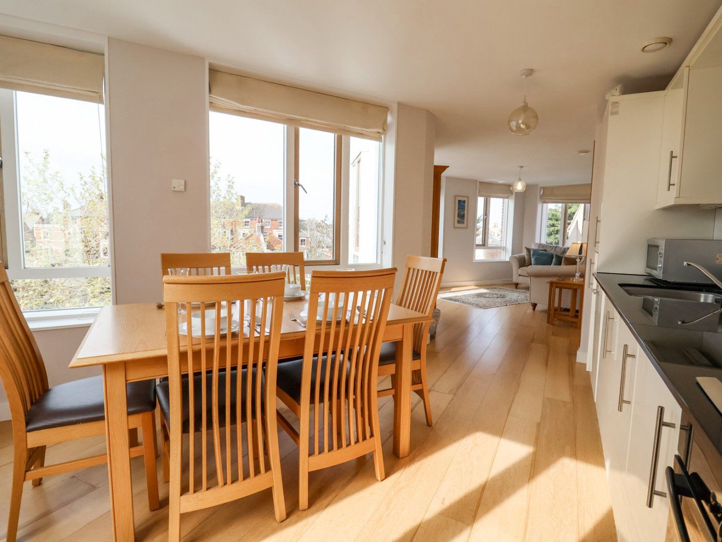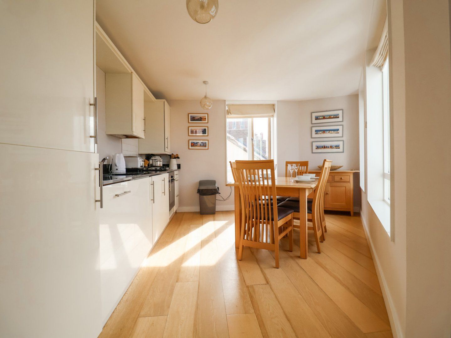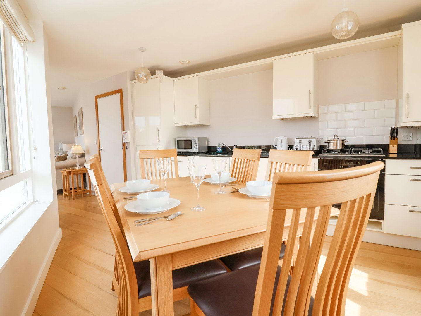 Accomodation Details First-floor apartment. Two bedrooms: 1 x king-size with en-suite with bath with hand-held shower, basin and WC, 1 x twin. Bathroom with shower, basin and WC. Open-plan living space with kitchen, dining area and sitting area