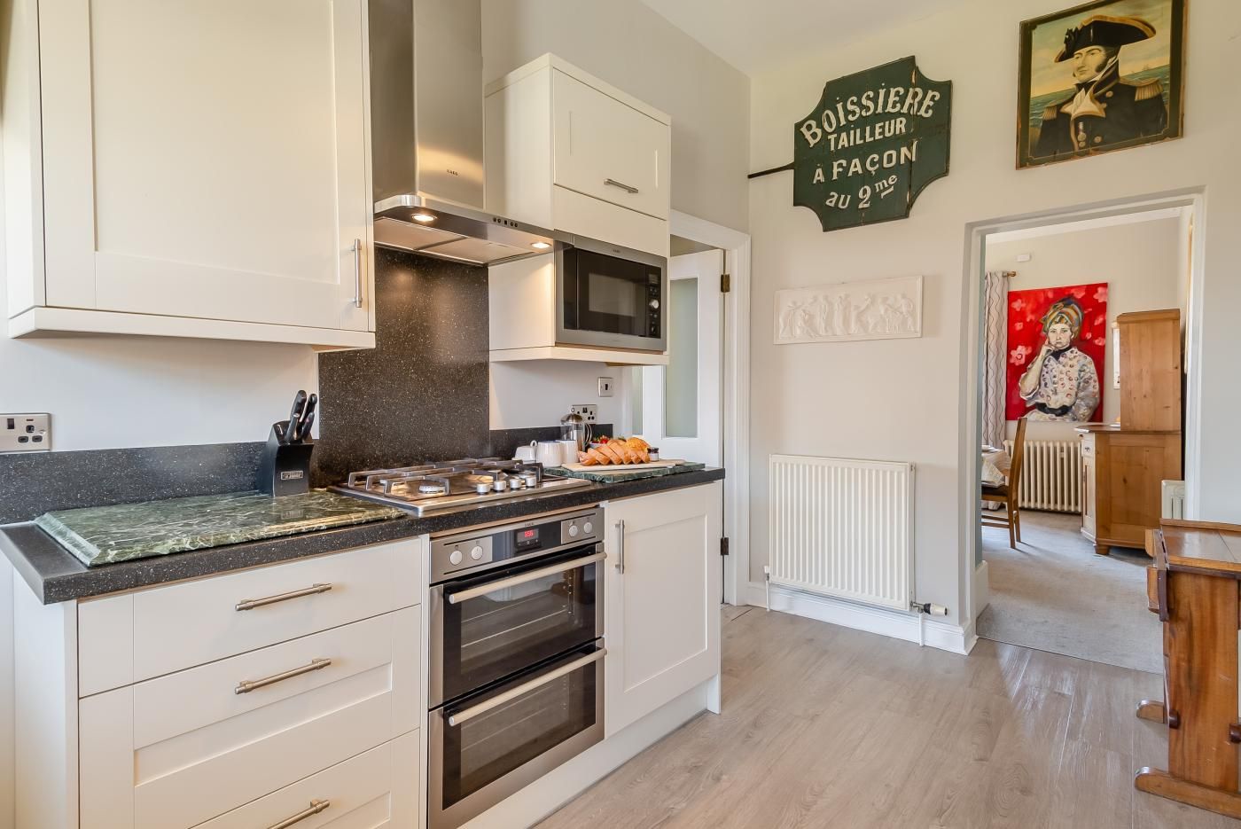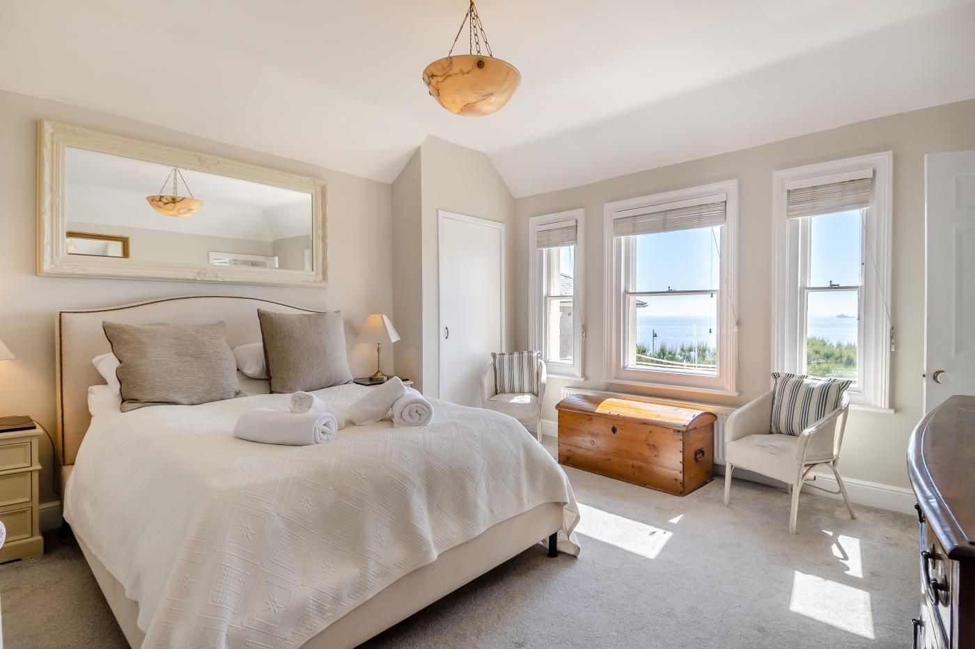 Sleeping up to eight guests, the spacious three-bedroom home is spread across two storeys and looks out across the historic South Green and the viewpoint of Gun Hill. The property, which is perfect for an extended family break or a celebration for friends, is less than 50 metres from the sandy beach and only a few minutes from the local shops, pubs, and eateries.
