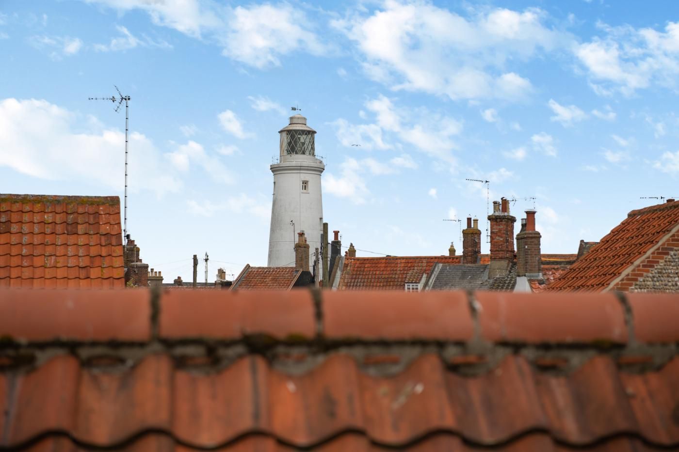 It’s got a sociable open-plan living space, private parking, and a cute roof terrace with views of the lighthouse and town, plus there are pubs, shops, and the beach just metres away.