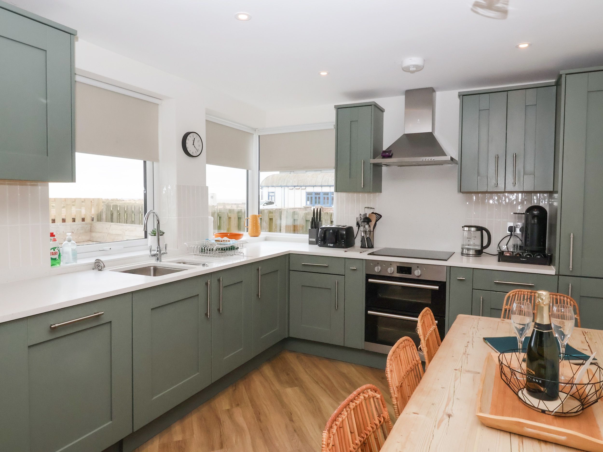 Amenities Heating with woodburning stove. Electric oven, induction hob, microwave, fridge, freezer, washing machine, tumble dryer, dishwasher, Nespresso coffee machine. Smart TV, FreeView, WiFi. Bed linen and towels inc. in rent. Travel cot and highchair available on request. Off-road parking for 5 cars with EV charging port. Rear garden with patio, lawn, furniture and access to beach. Two well behaved dogs welcome. Sorry, no smoking or unaccompanied teenagers. Shop 0.8 miles, pub 0.7 miles. Note: If you wish to bring a dog it must be mentioned at the time of booking. Note: Bedroom 4 is best suited to be set up as a twin. Note: If you wish the super-king-sizes to be set up as twins or the twins as super-king-sizes please let us know. Note: This property cannot accept Sunday arrivals