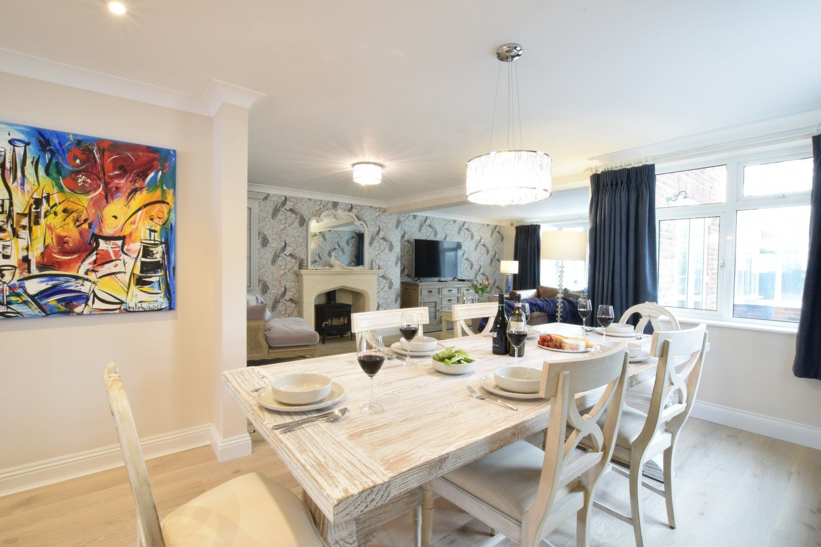 Amenities Heating with woodburning stove. Electric oven, induction hob, microwave, fridge/freezer, washing machine, tumble dryer, dishwasher. Smart TV, DVD player, Bluetooth speaker, WiFi. Bed linen and towels inc. in rent. Travel cot available on request. Off-road parking for 2 cars. Enclosed rear garden with shrubs, patio and furniture. One well behaved dog welcome. Sorry, no smoking. Shop 0.7 miles, pub 0.4 miles. Note: If you wish to bring a dog it must be mentioned at the time of booking on the booking. Note: This property cannot accept Sunday arrivals