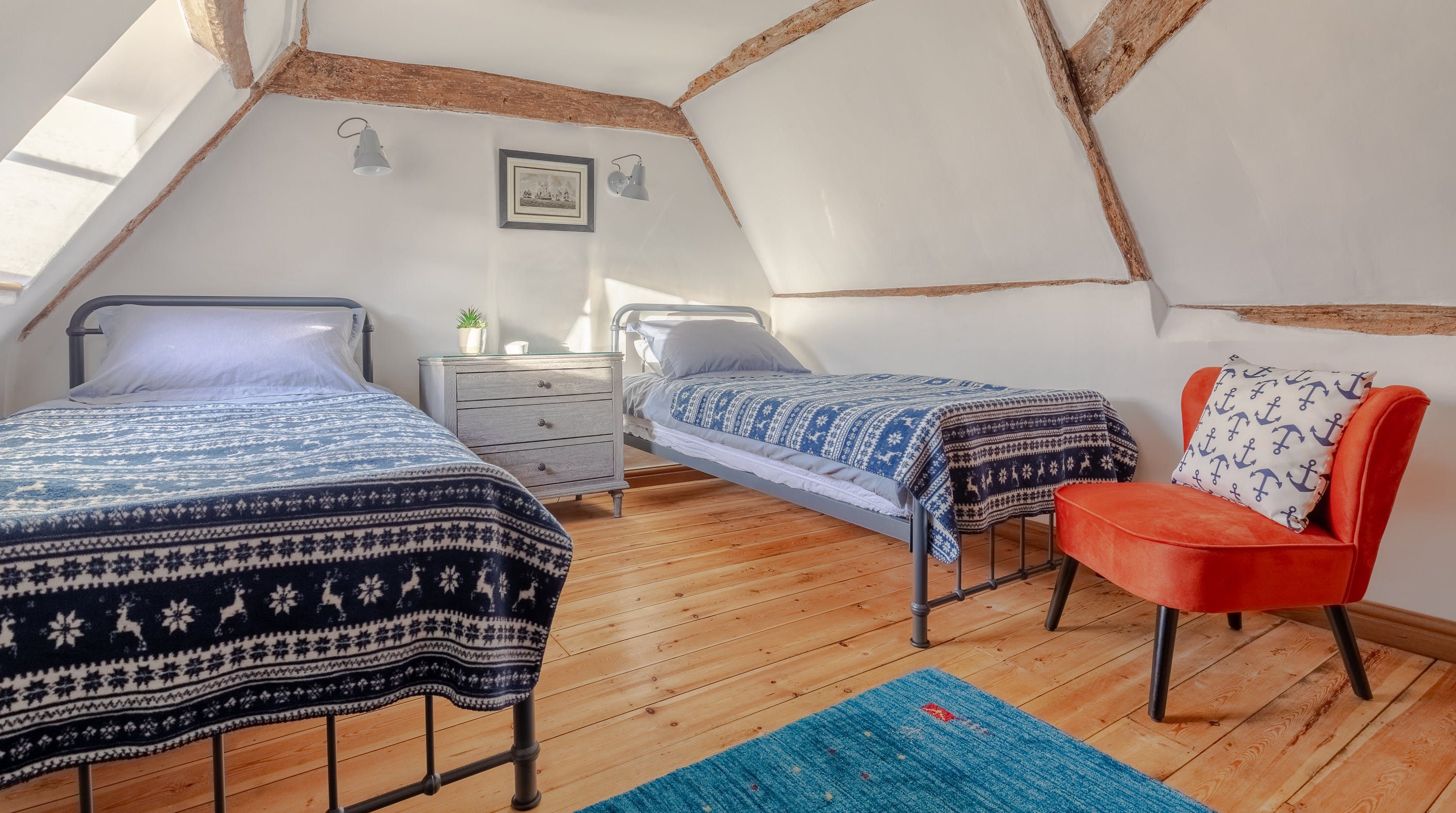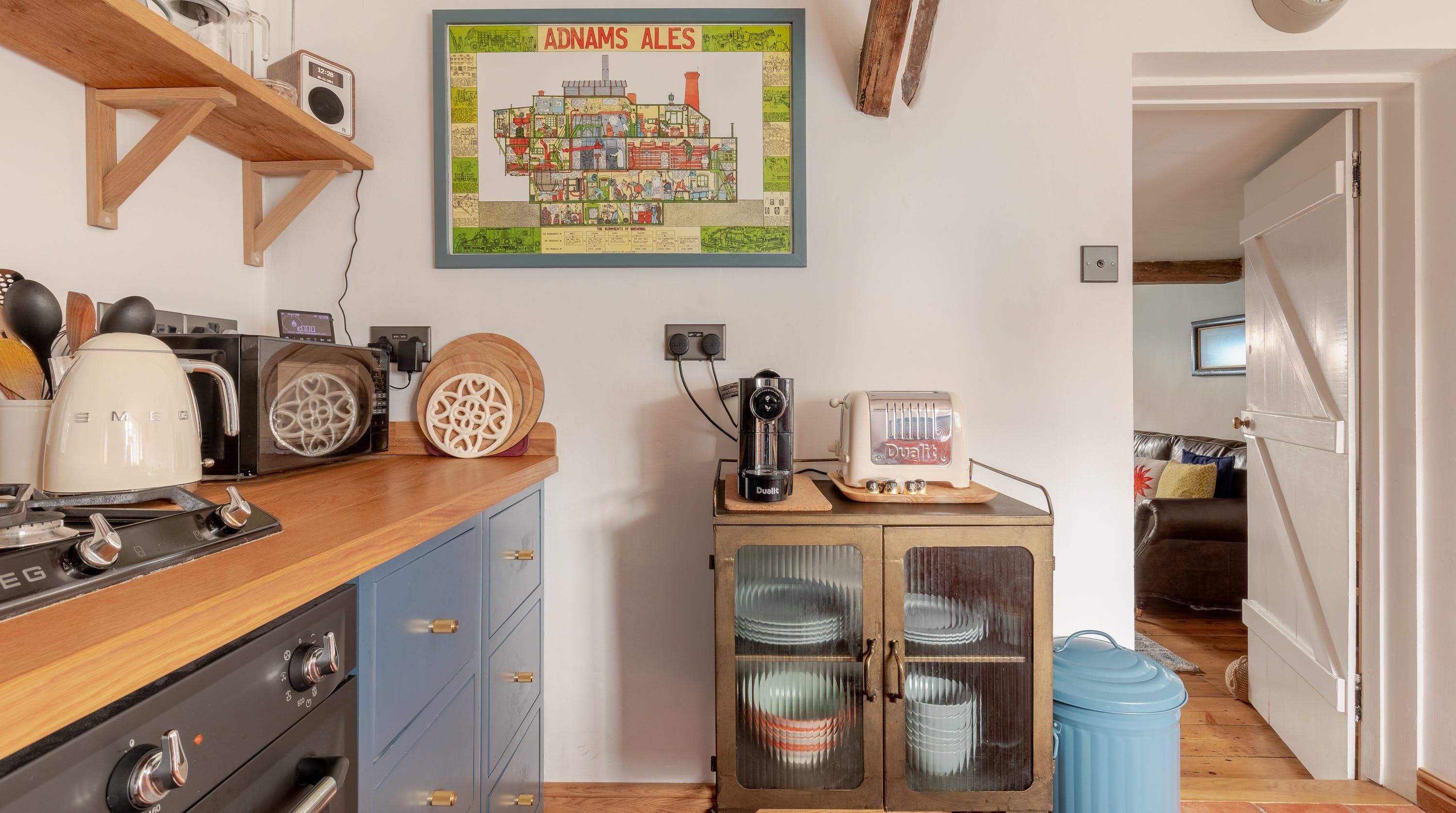 The picturesque village of Southwold sits on The Suffolk Coast and Heaths, one of only forty-six regions in the country officially labelled an ‘Area of Outstanding Natural Beauty’. We think the best way to discover this exceptionally beautiful landscape, is to stay in an exceptionally beautiful home. On a street of candy-colored cottages, an eight-minute walk from Southwold Pier, your home is painted in a dreamy pale blue, with terracotta roof tiles, and a cute white door beckoning you inside. Built in 1850, you’ll love the original features like exposed wooden beams, a winding staircase, and wood-burning fireplace in the lounge. We think this is the perfect spot to settle down on the sofa, crack open a bottle of fizz, and say cheers to the start of your holiday. Another option would be sipping champagne in the luxurious freestanding tub, or taking celebrations out to your private patio on a sunny afternoon. When you get peckish, take a wander to your nearest chippie, three minutes away. Protect your portion of fish and chips from the seagulls as you stroll one minute down to the promenade and take in the fresh air from the North Sea.
