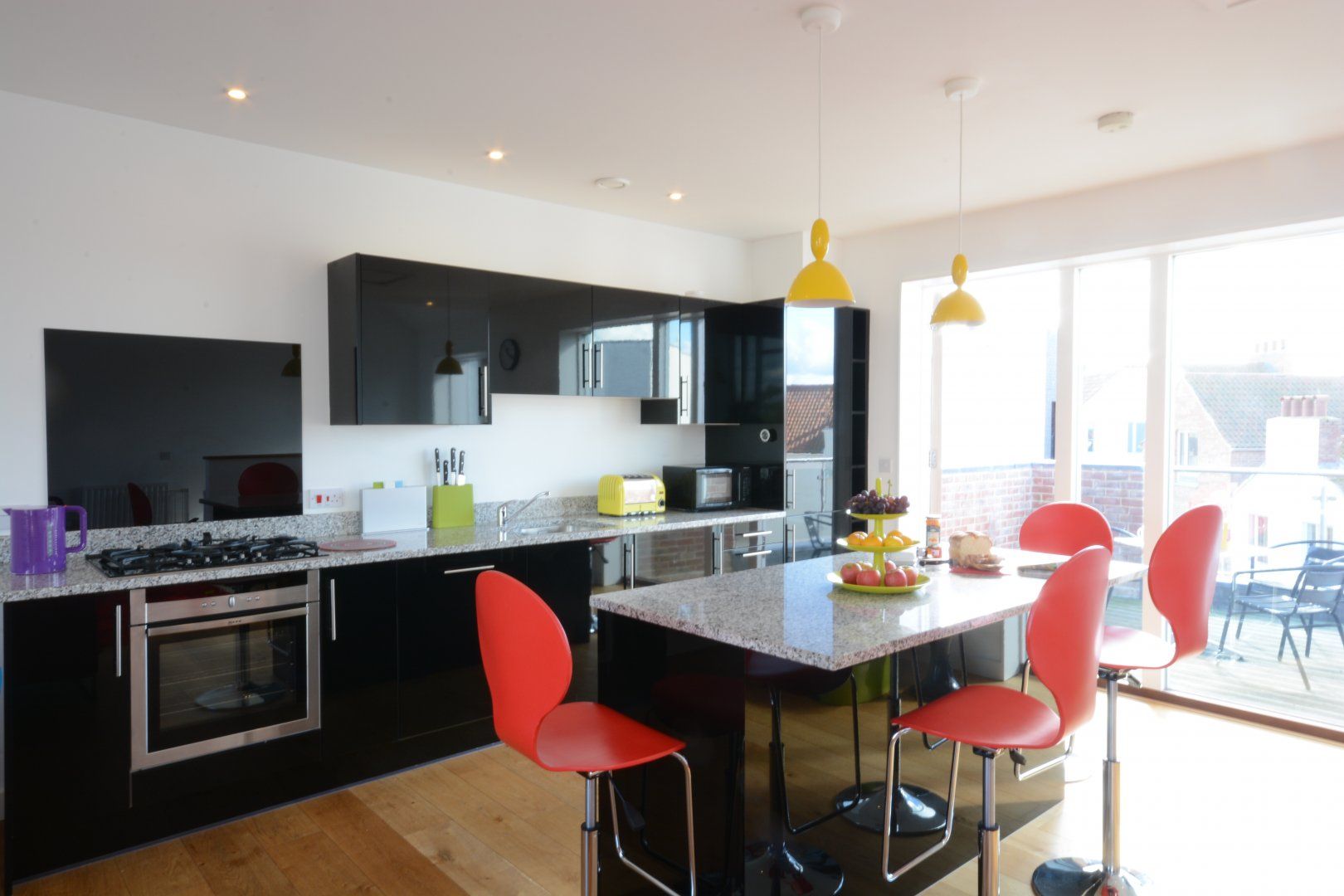 Accomodation Details Split-level apartment. Two bedrooms: 1 x king-size with en-suite with walk-in shower, basin and WC, 1 x twin. Bathroom with bath, shower over, basin and WC. Second-floor open-plan kitchen, dining area and sitting area