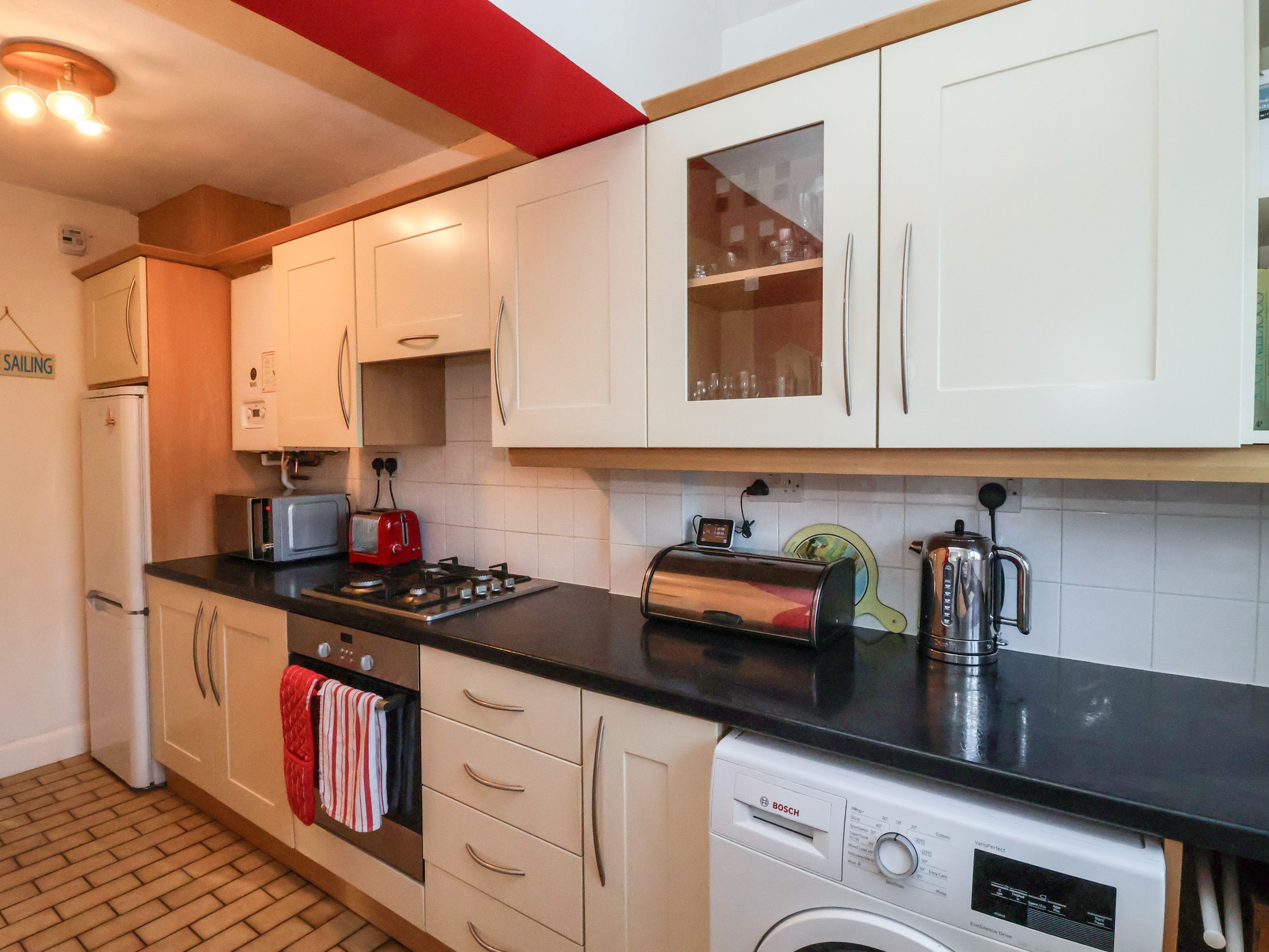 Amenities Gas central heating and open fire. Electric oven and grill, gas hob, microwave, fridge/freezer, washer/dryer, dishwasher. TV with FreeView, DVD/CD player, iPod docking station, WiFi. Bed linen and towels inc. in rent. Travel cot available. Off-road parking for 2 cars outside. Gardens with lawns, patio area, patio furniture. Shop 0.5 miles, pub 0.5 miles.