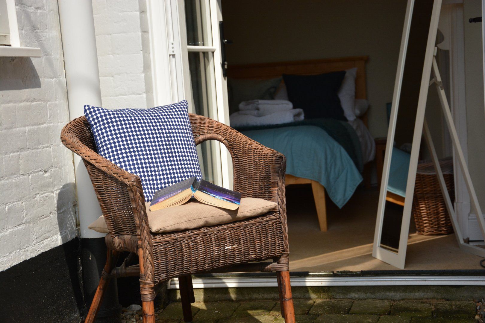 Amenities Gas central heating and ornamental fireplace (not in use). Electric oven, grill and hob, microwave, fridge/freezer, washing machine, dishwasher. TV with FreeView, DVD player, Bluetooth speaker, WiFi, selection of books. Bed linen and towels inc. in rent. Highchair available. Unallocated roadside parking. Communal courtyard, patio furniture. One well-behaved dog welcome. Sorry, no smoking. Shop 0.4 miles, pub 0.1 miles. Note: This property accepts minimum of 3 night stays